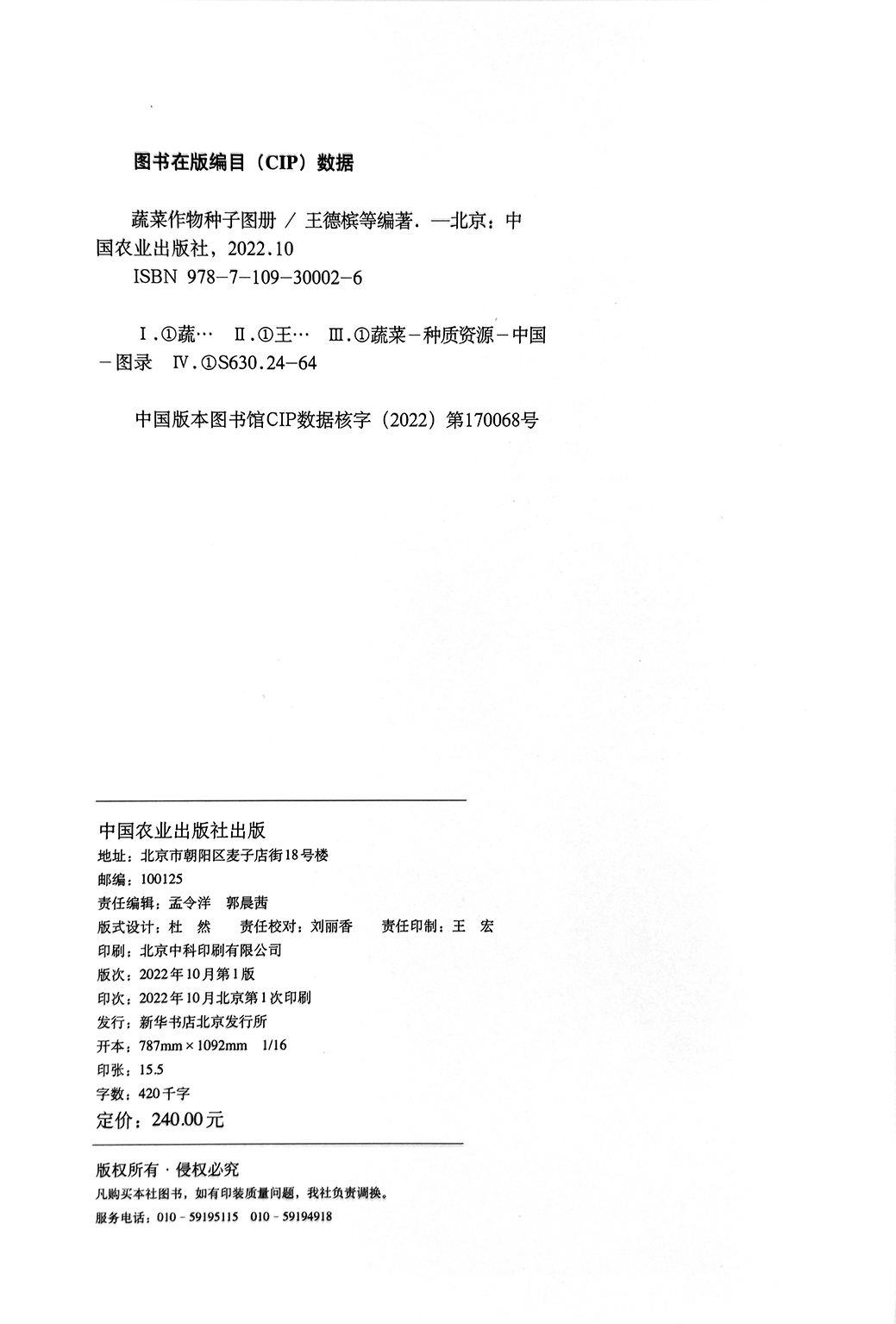 蔬菜作物种子图册 王德槟,魏民,马宾生,李蕾 30002