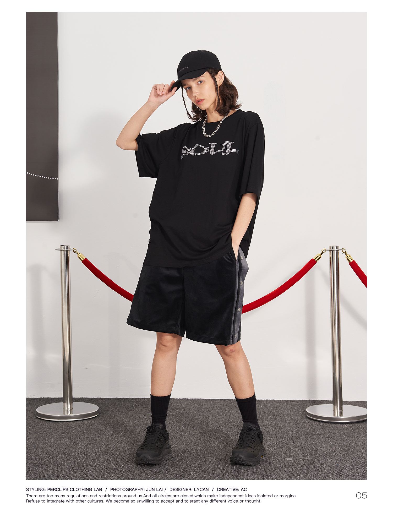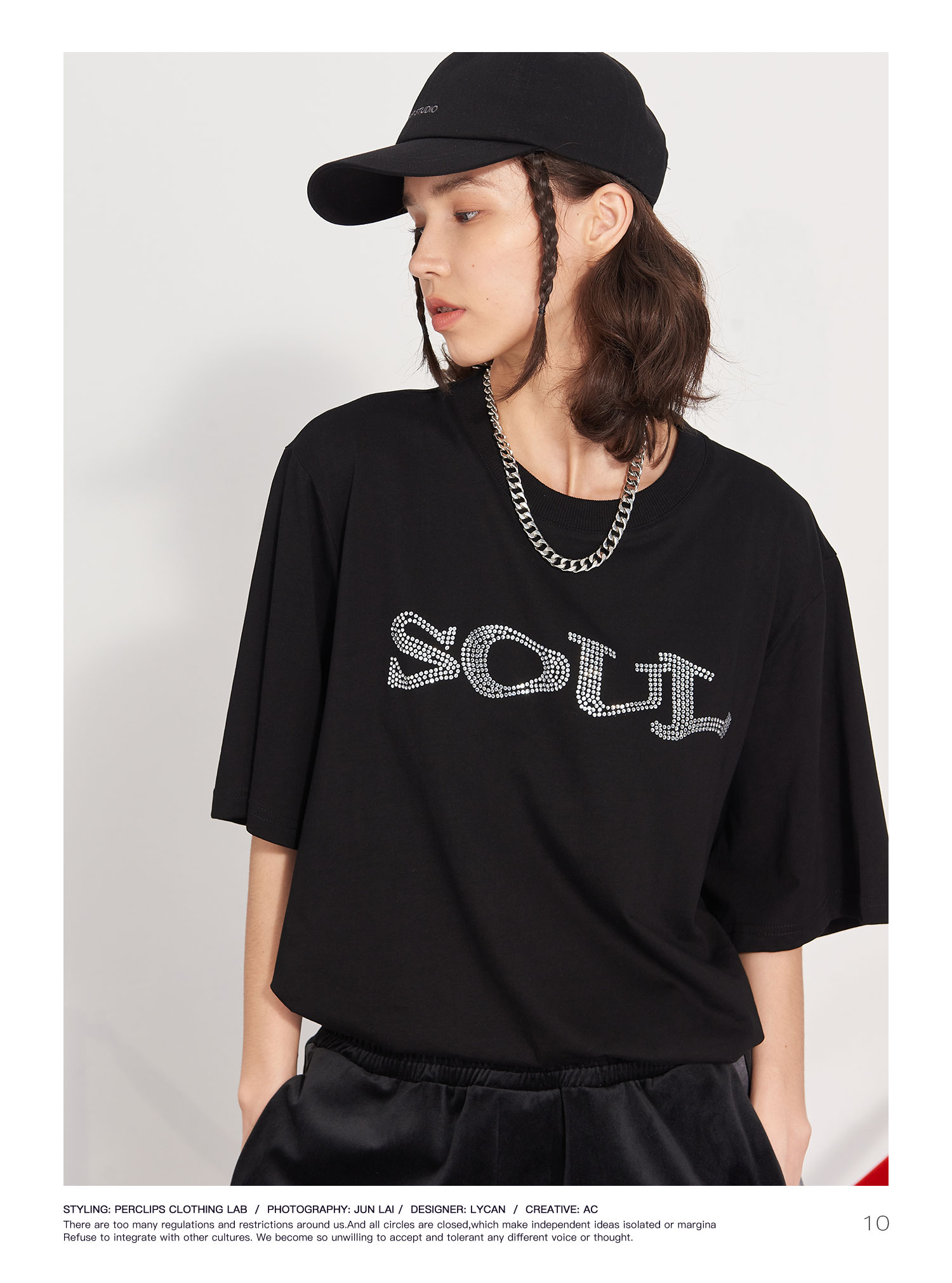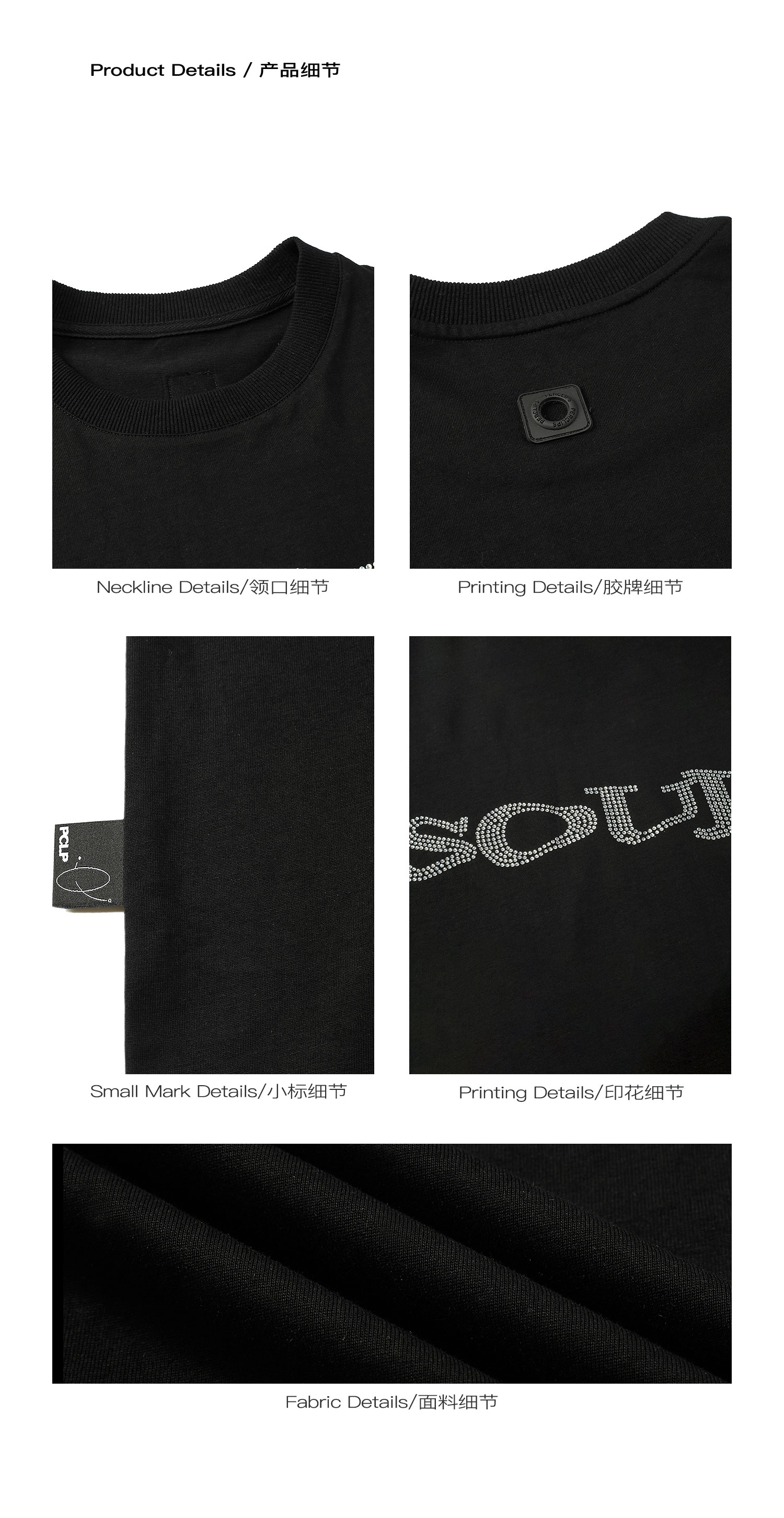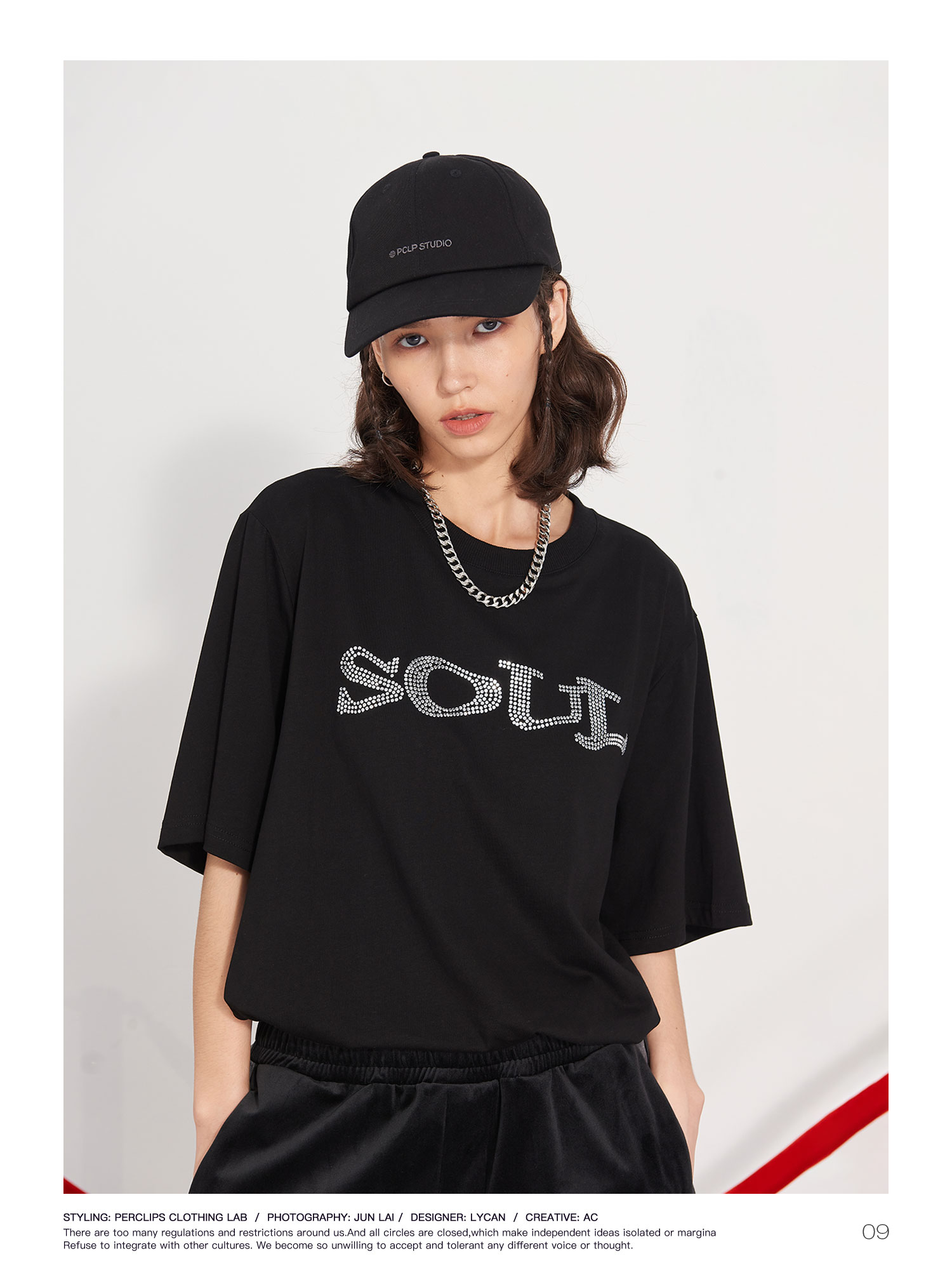 PCLP(PERCLIPS) 烫钻SOUL潮流印花短袖男国潮牌纯棉宽松半袖t恤男