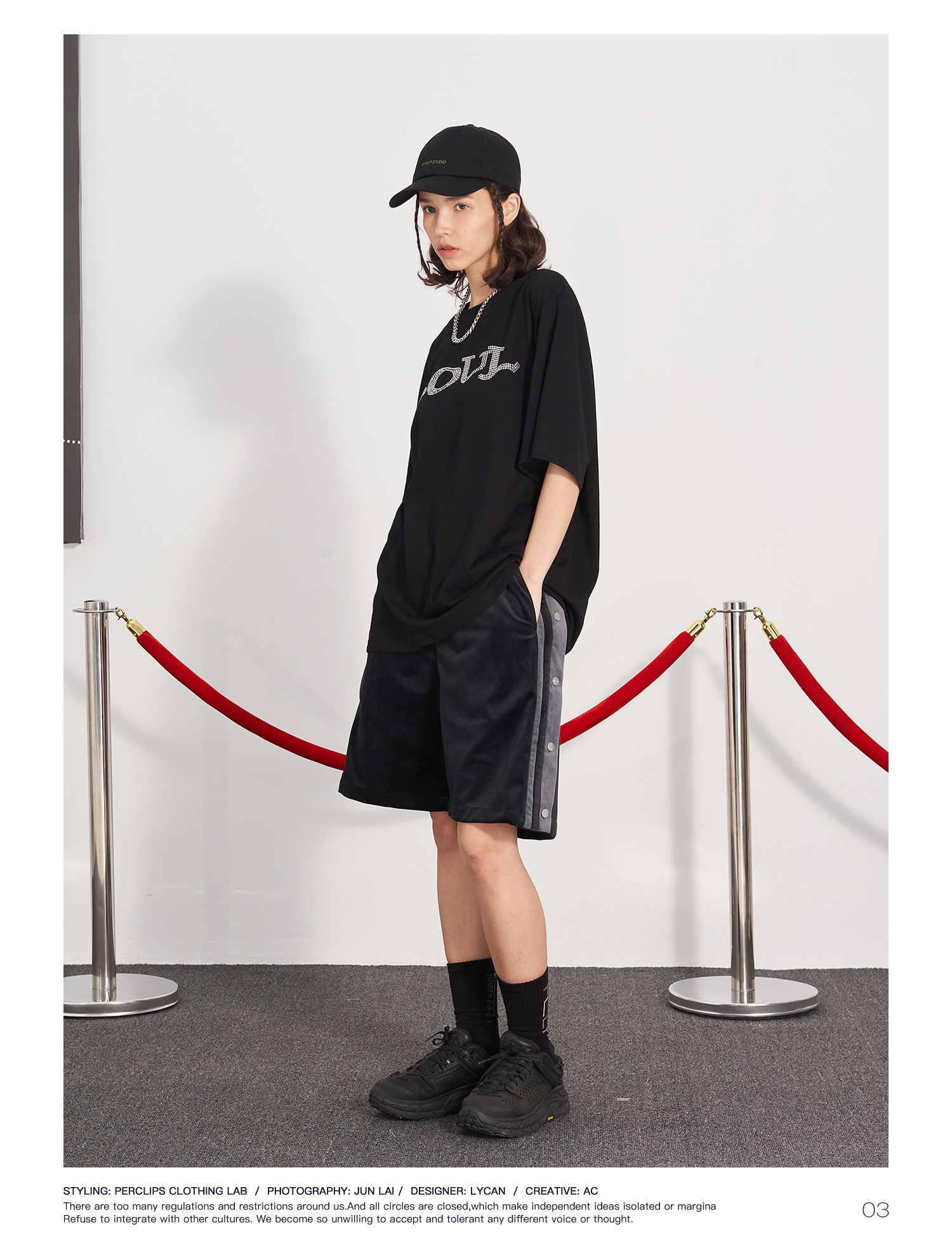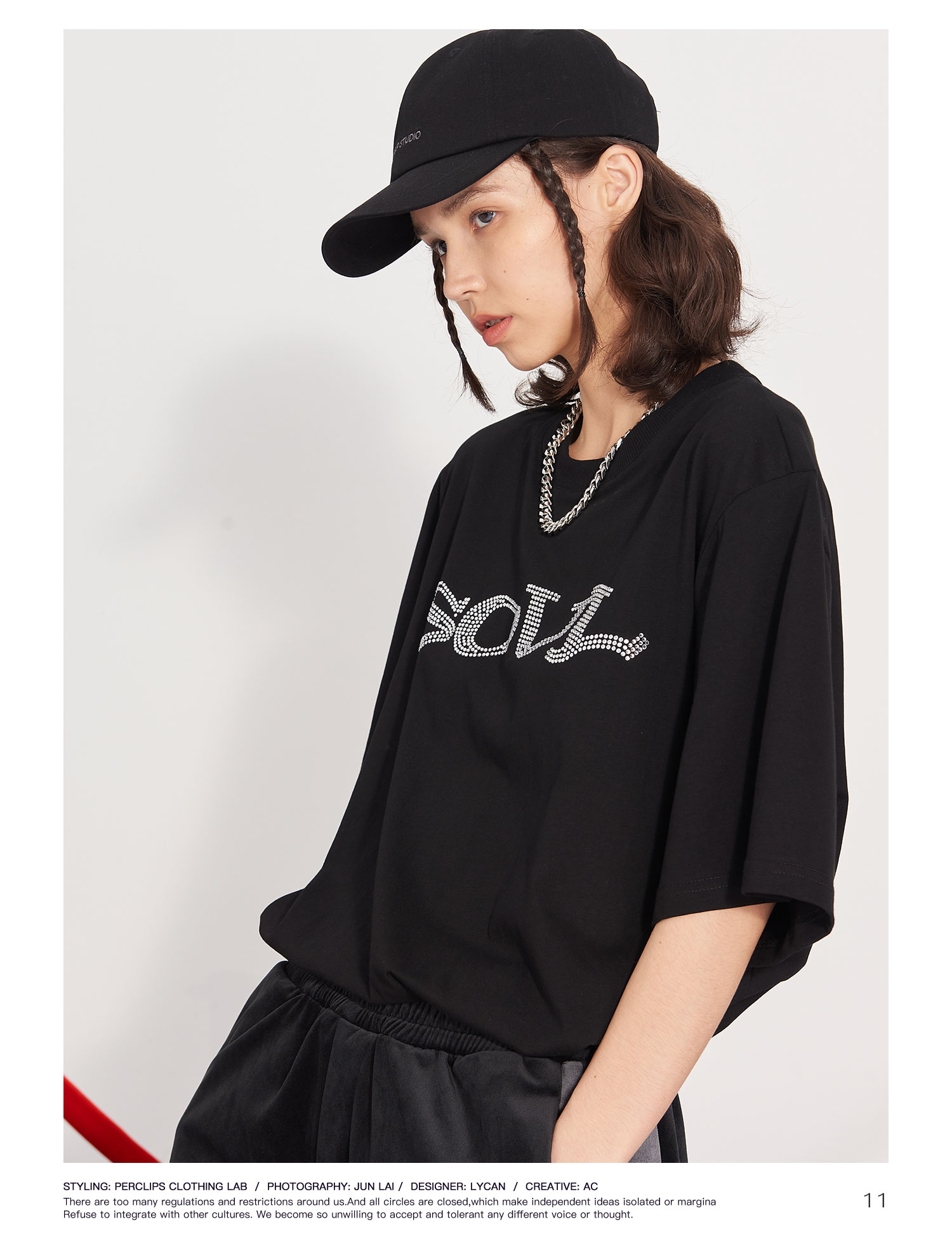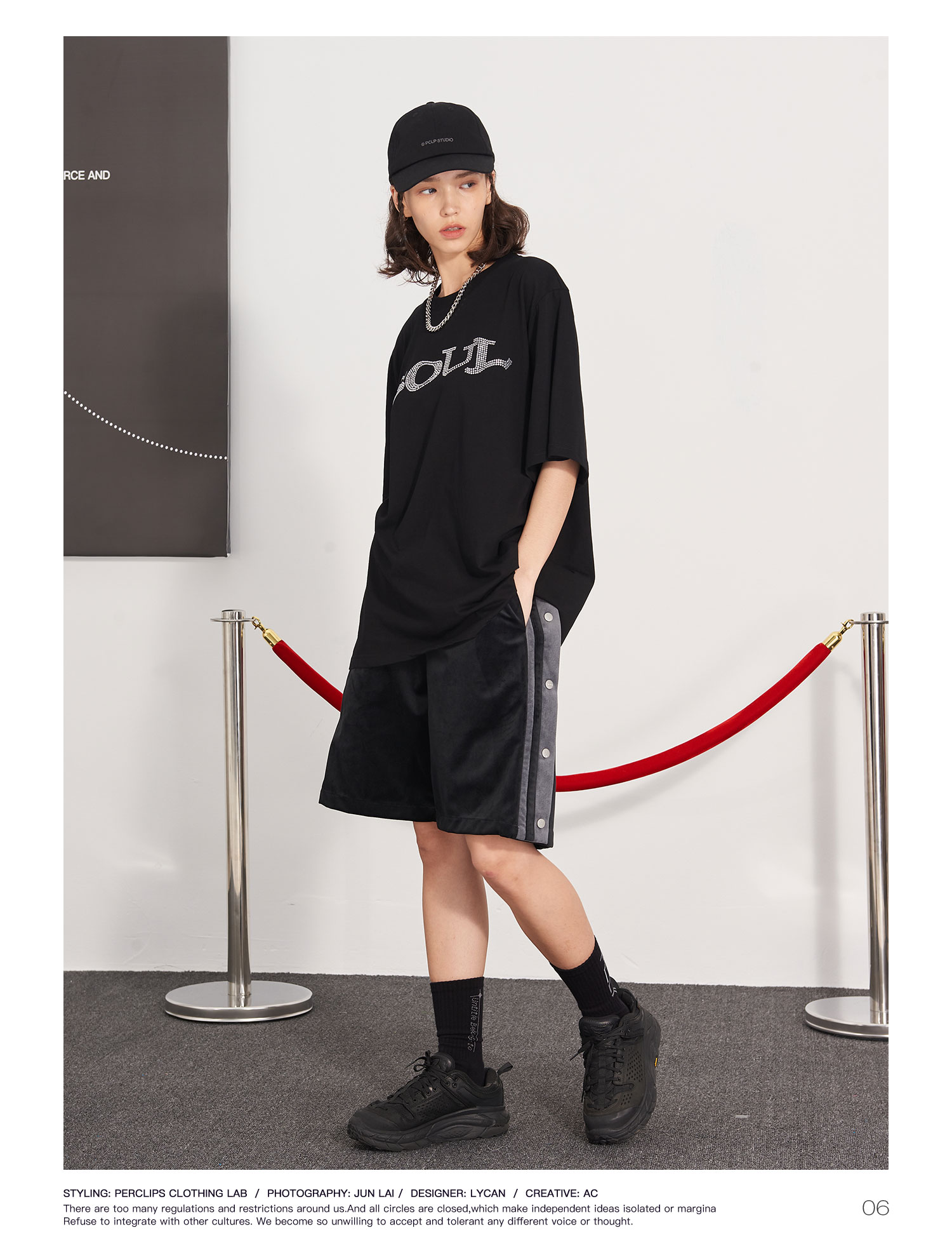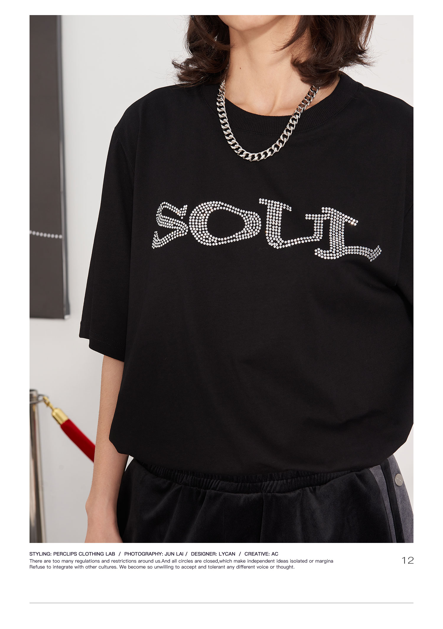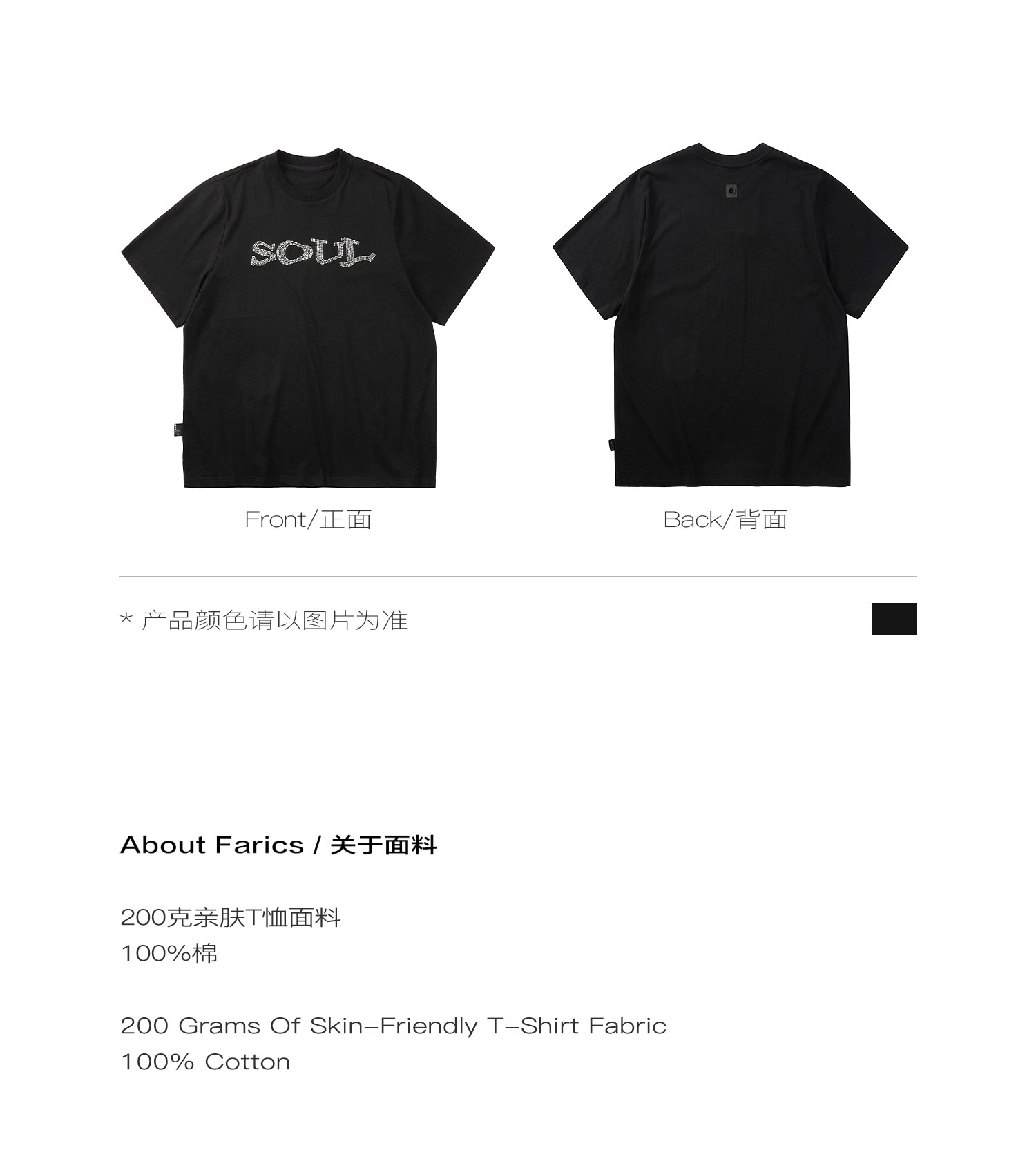 PCLP(PERCLIPS) 烫钻SOUL潮流印花短袖男国潮牌纯棉宽松半袖t恤男