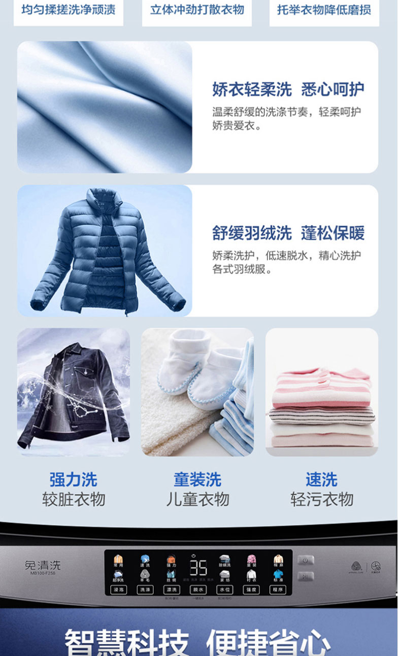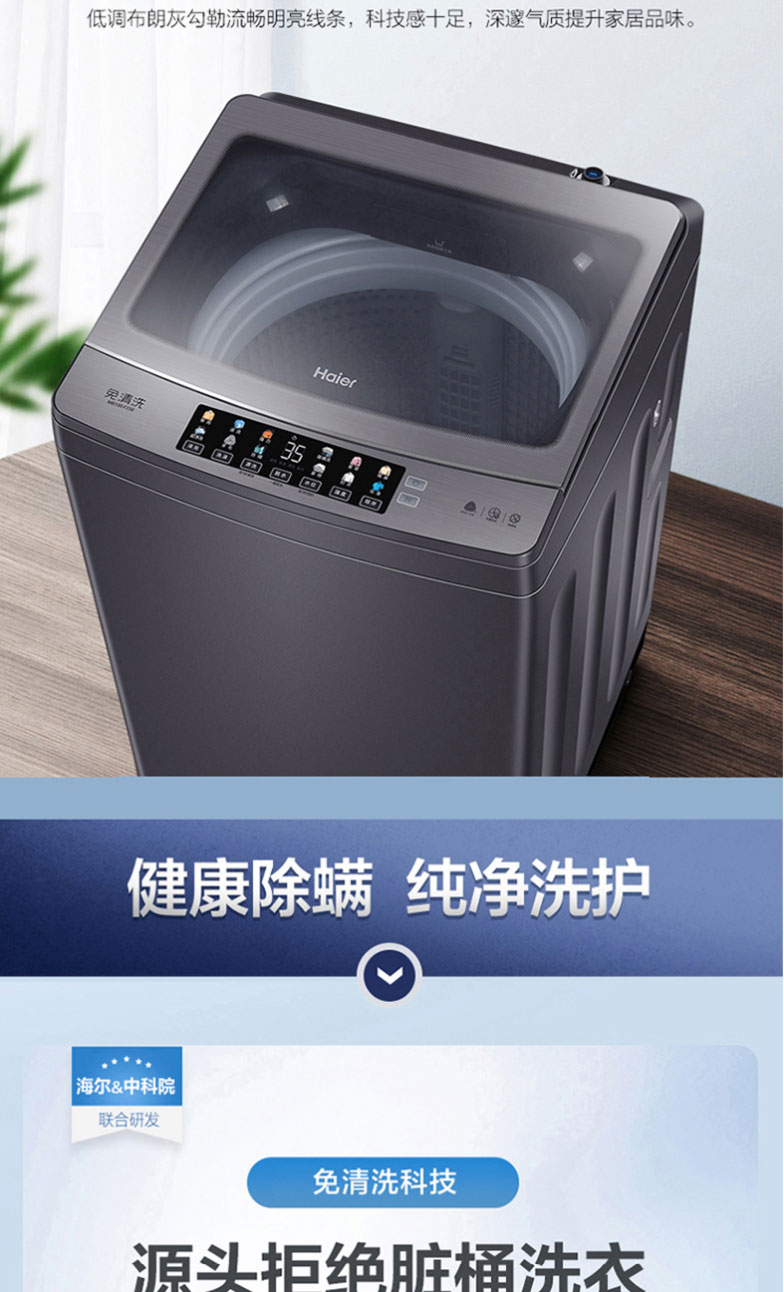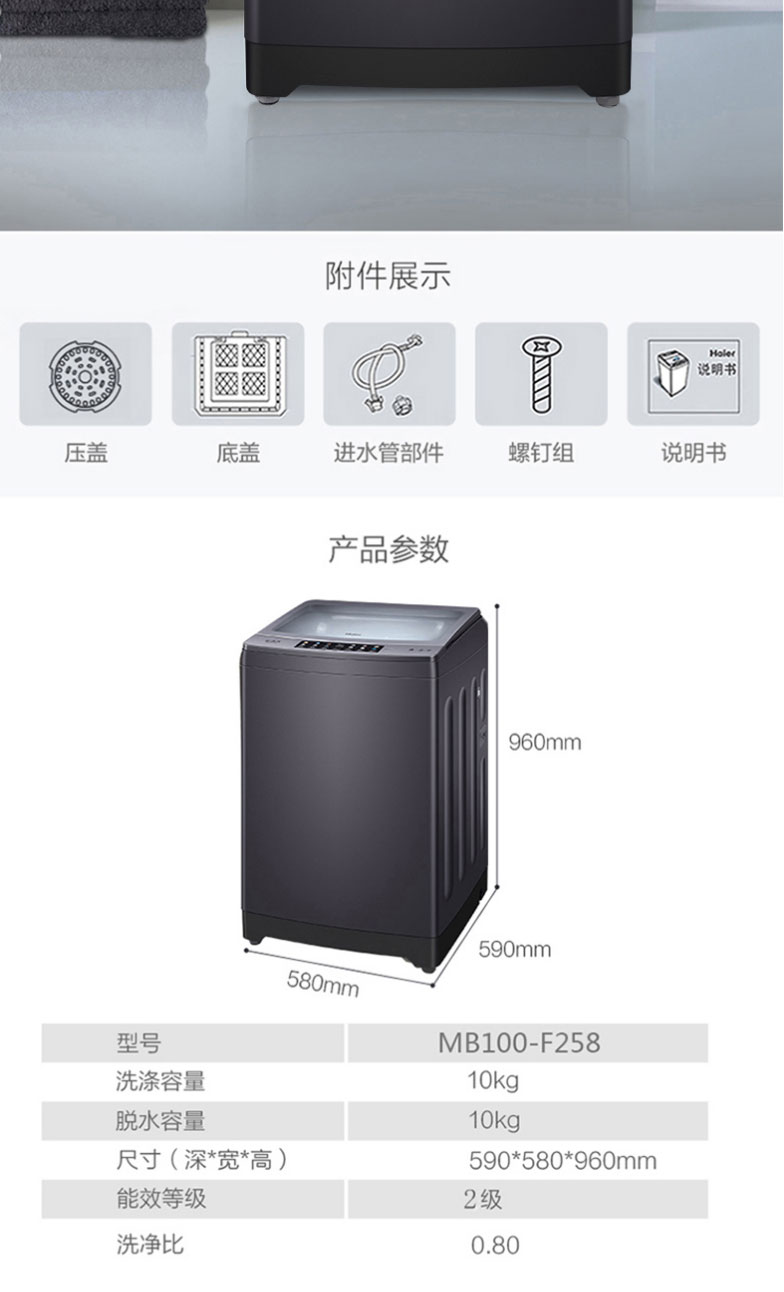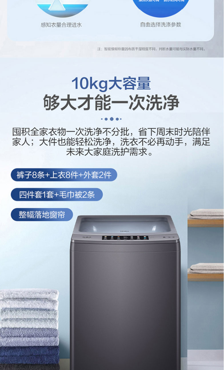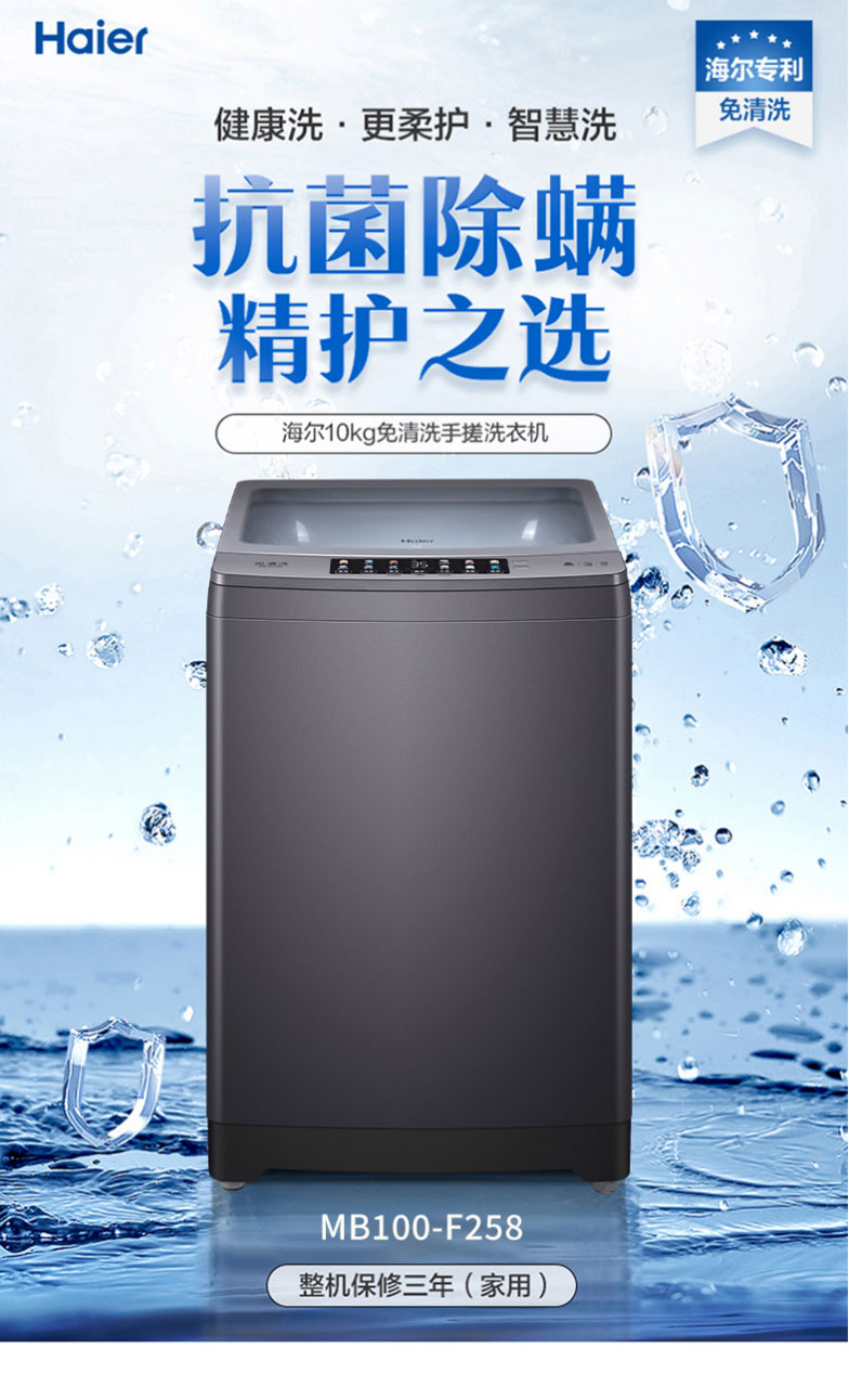 海尔波轮洗衣机全自动10公斤家用大容量健康免清洗科技幂动力防缠绕除螨洗智能预约洗脱一体机MB100-F258