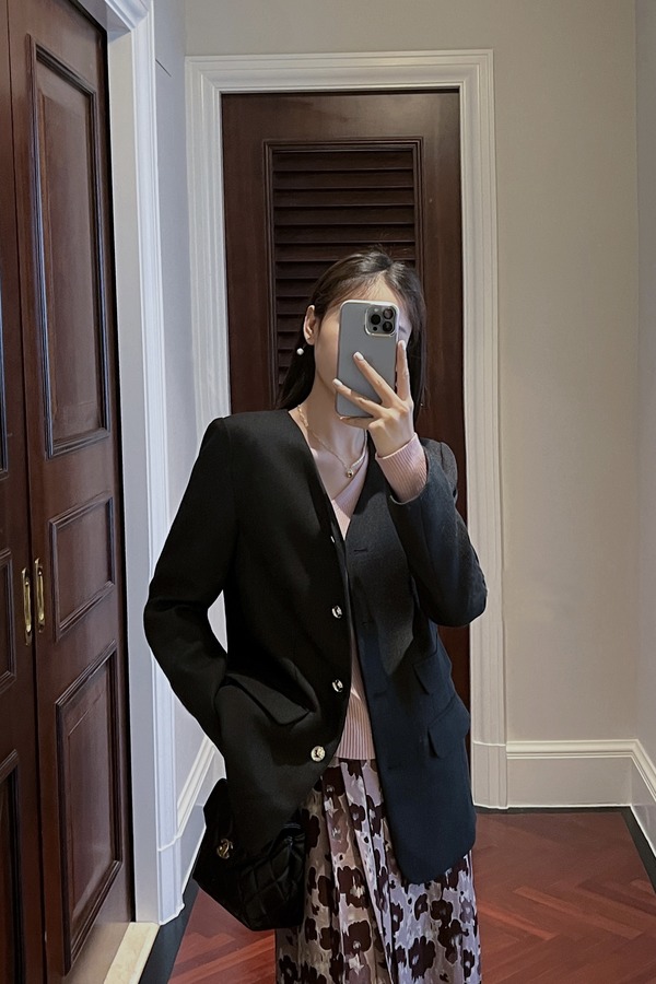 ESTELLICA 黑色无领高端气质西装外套 17240