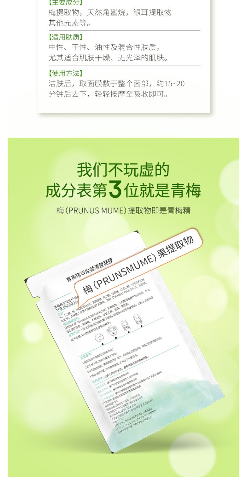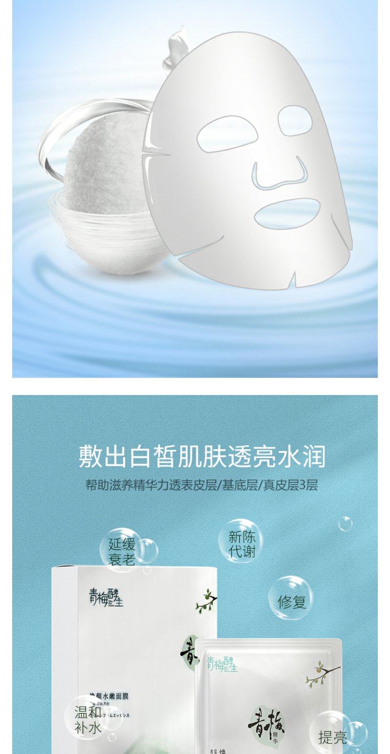 青梅酵主青梅精华焕颜清莹面膜舒缓抗敏透亮修护抗皱贴片式面膜