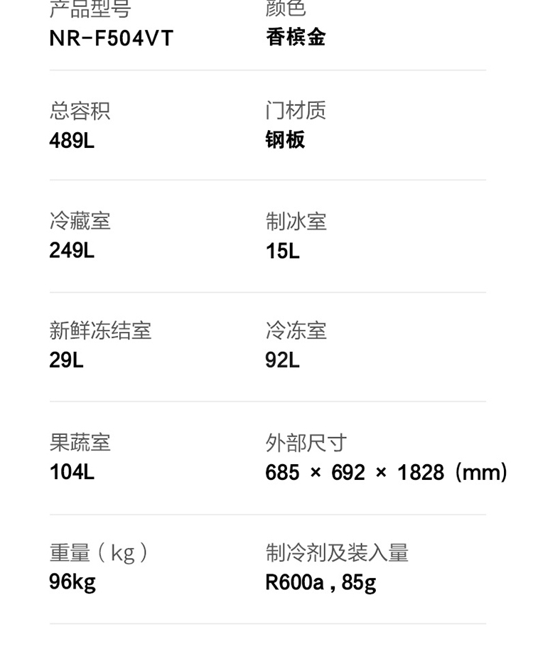 松下(Panasonic)489升六门冰箱 NR-F504VT-N5 日本原装进口