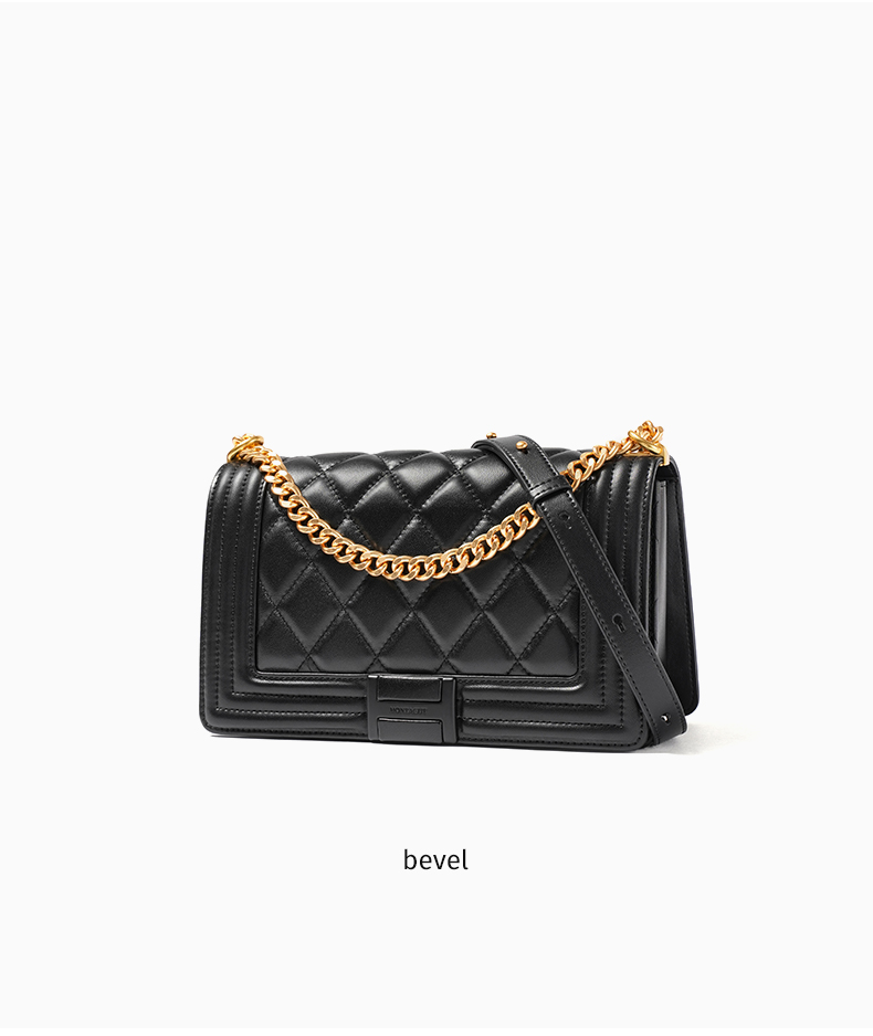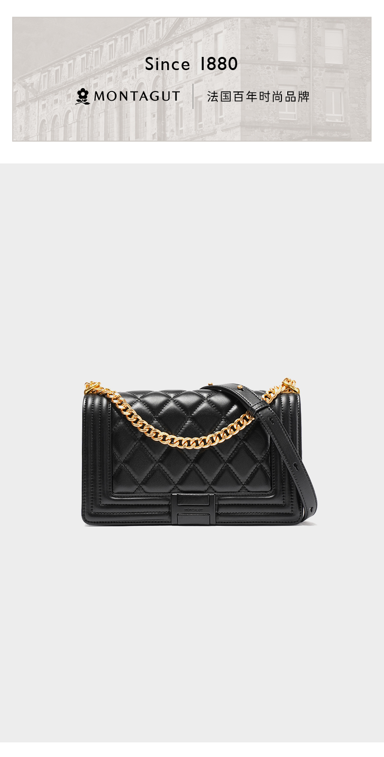梦特娇女士时尚休闲菱格包可爱风单肩包真皮斜挎包矜贵羊皮旅行包