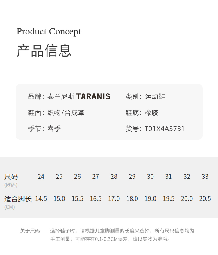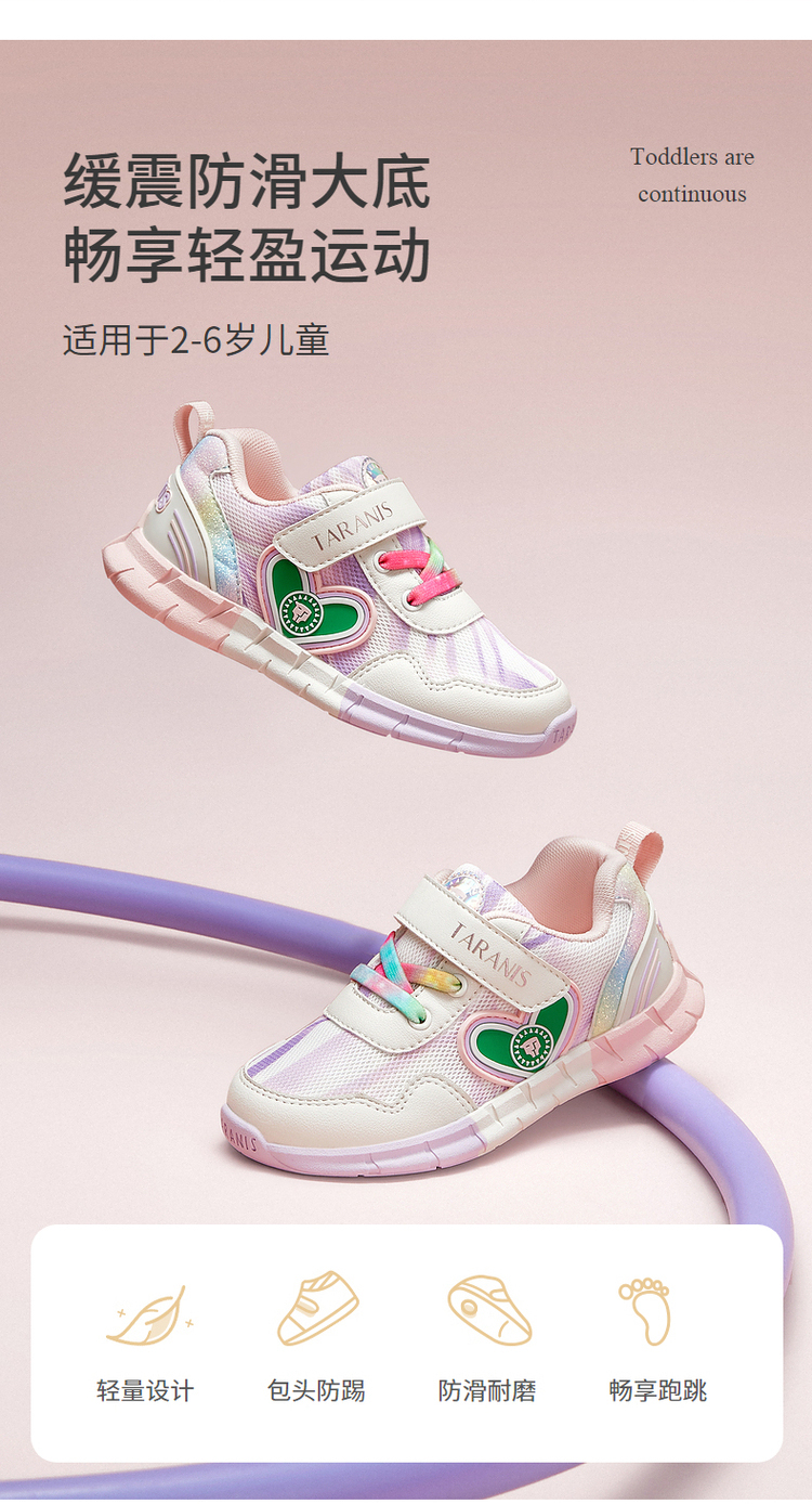 泰兰尼斯春款小童段超轻缓震防滑女童运动鞋T01X4A3731