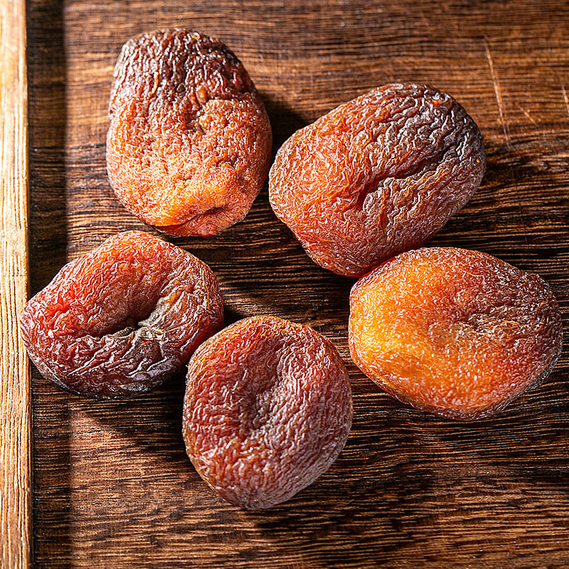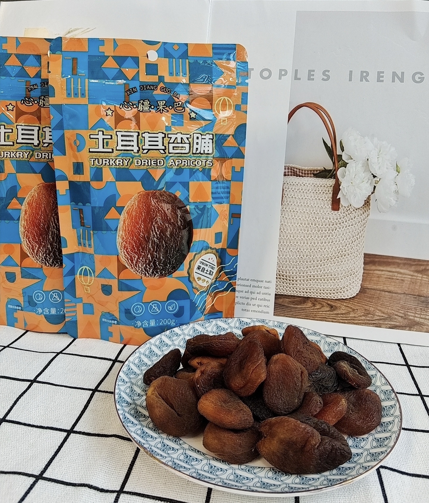 杏果在晾晒过程中颜色逐渐变黑,展露不均匀的黑皮光泽,这都是果糖聚集的表现,十分天然安全,大家可以放心食用