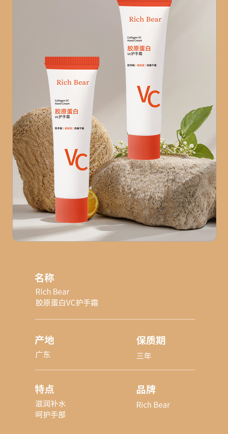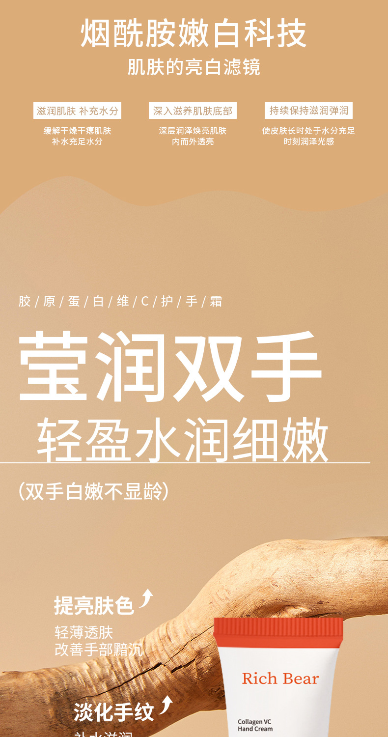 「一支承包整个冬天」RichBear胶原蛋白VC水感嫩肤护手霜 补水保湿防干手部护手霜