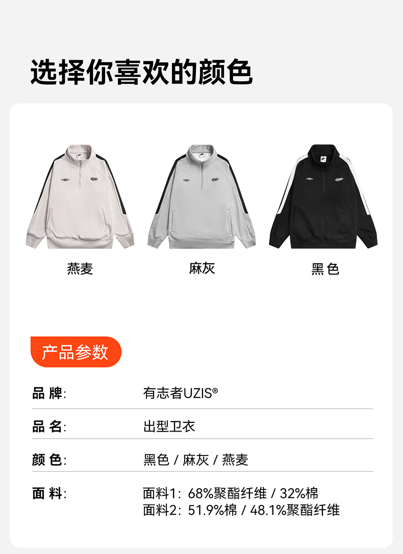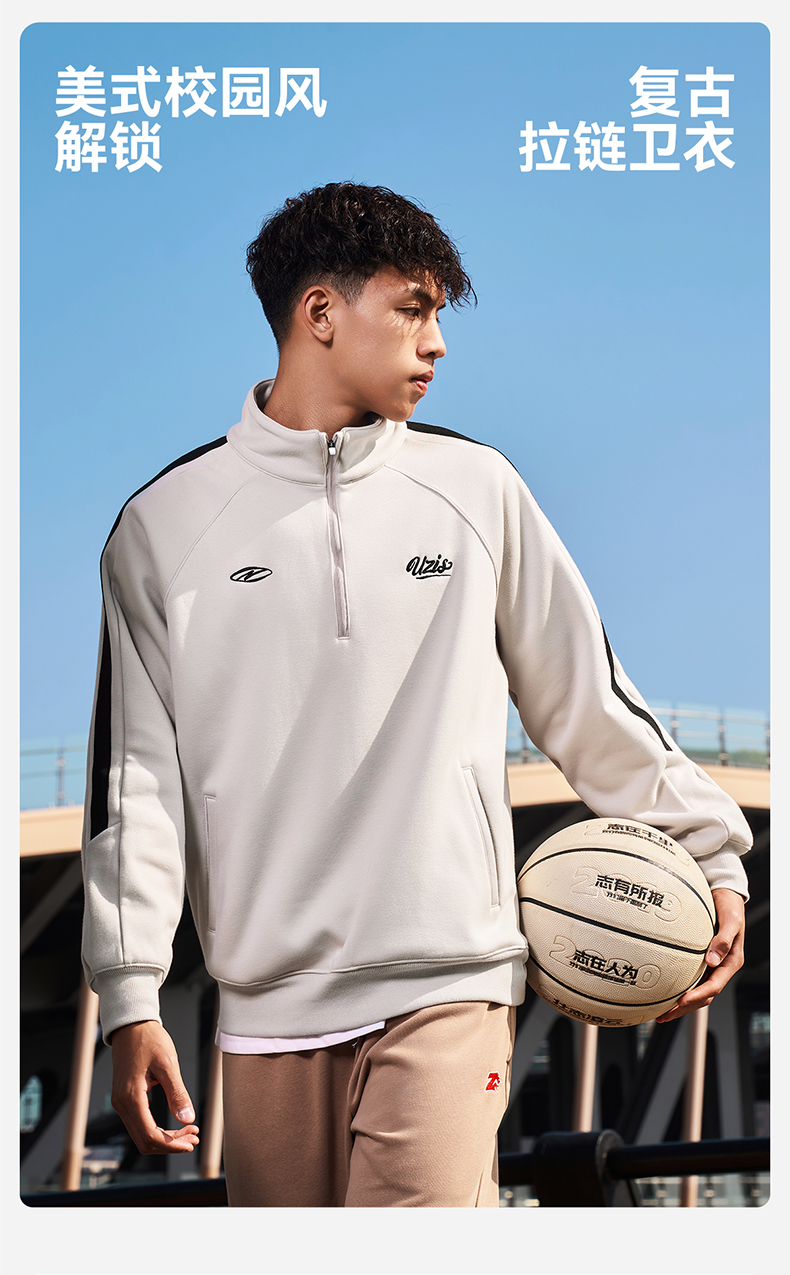 有志者UZIS重磅加绒立领卫衣男秋冬保暖篮球运动美式潮流上衣出型