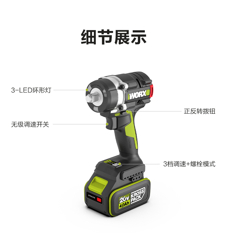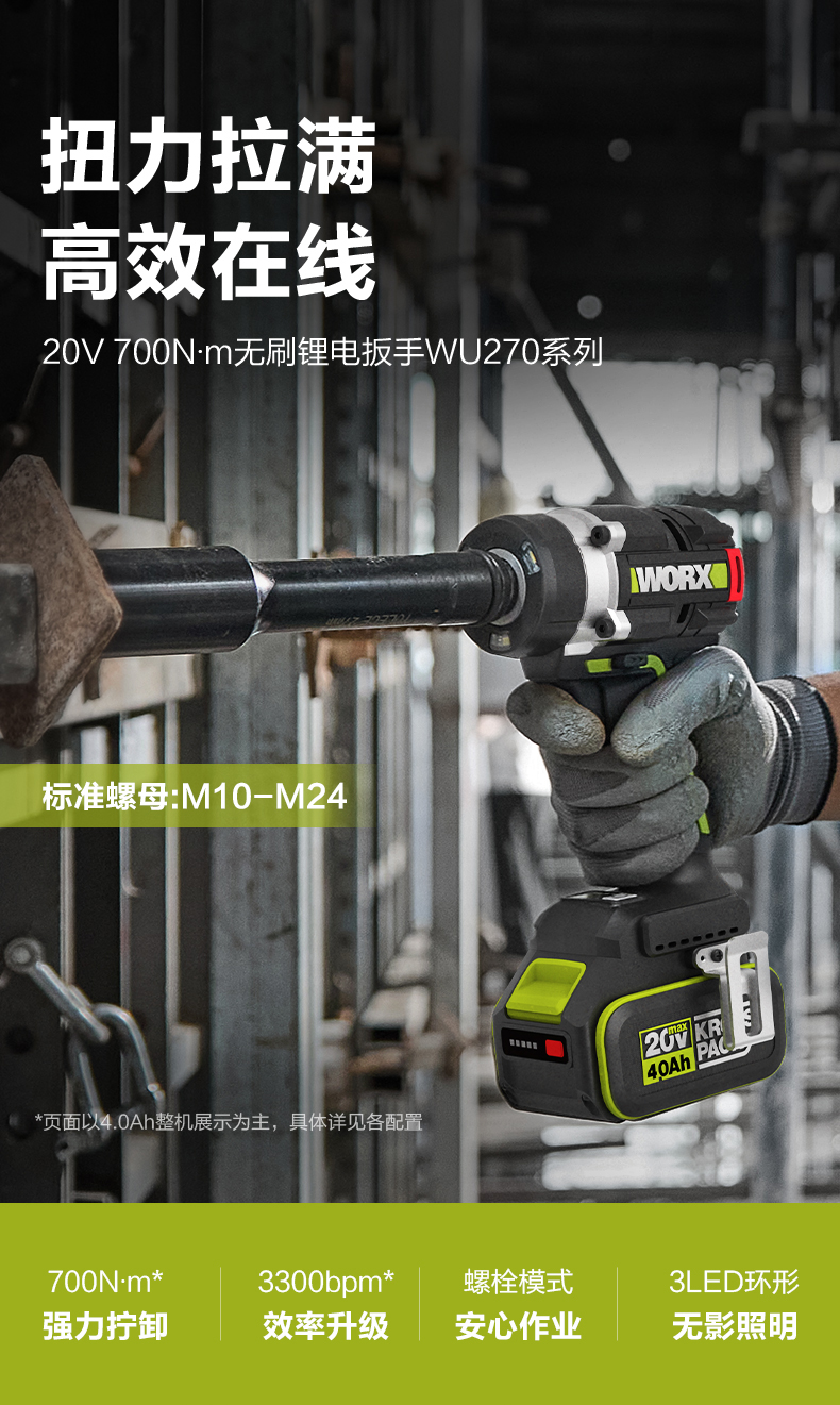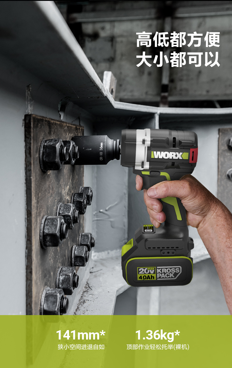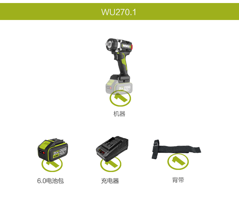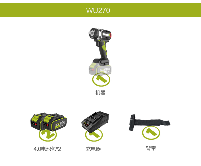 威克士700牛大扭力电动扳手WU270铝模锂电无刷电板手冲击风炮