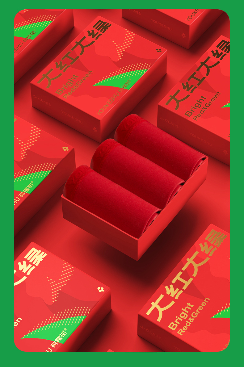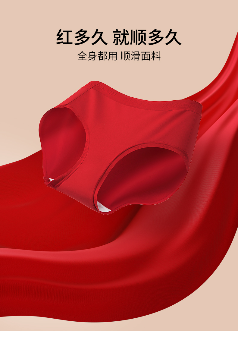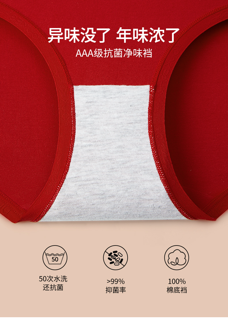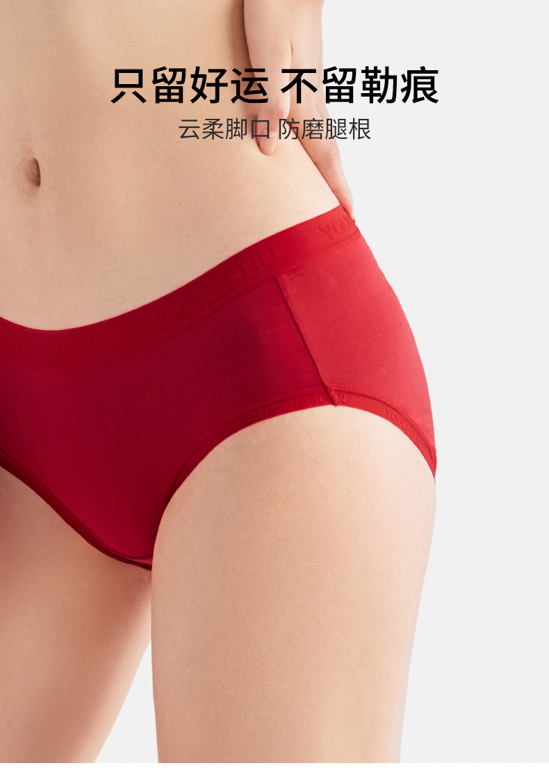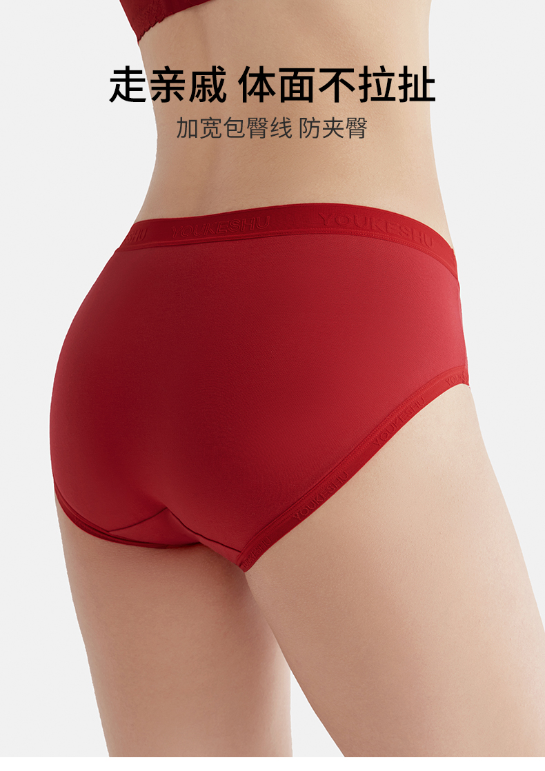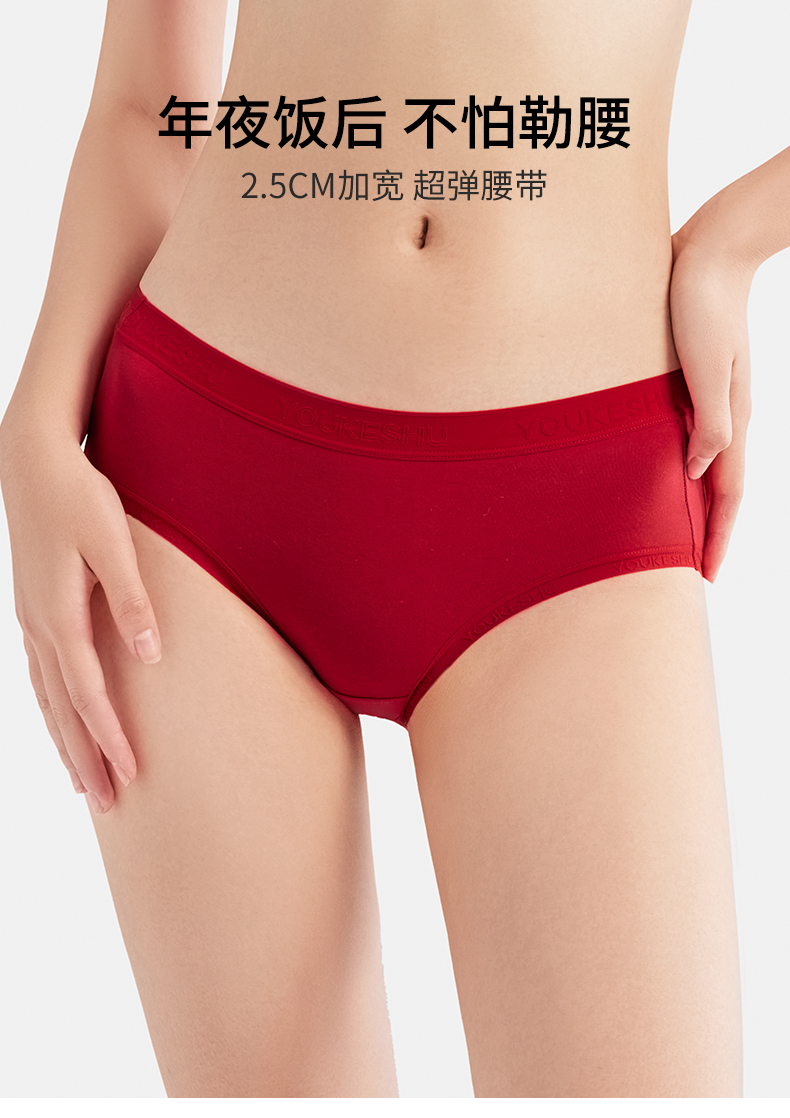 【新年限定】有棵树纯棉中腰红色女士内裤3条装G-U3145