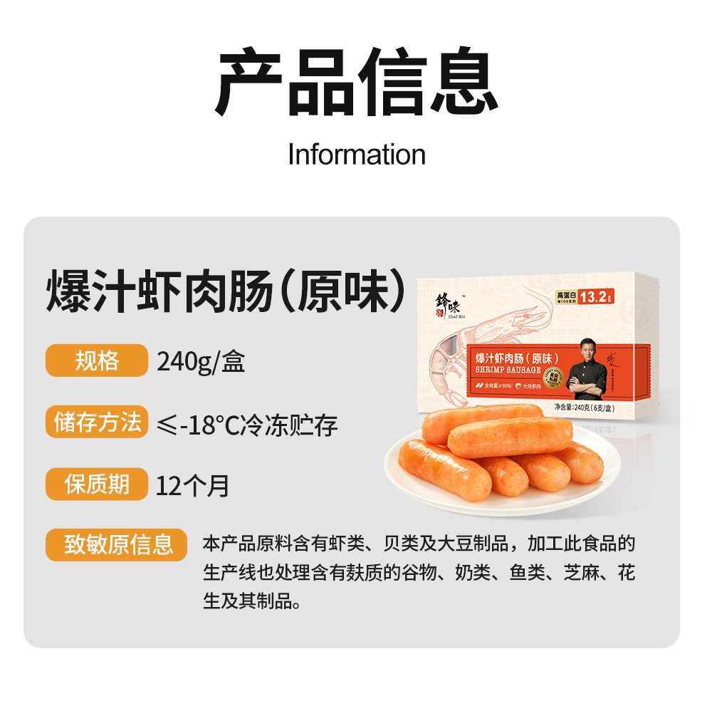 锋味派 原味爆汁虾肉多多肠240g*2
