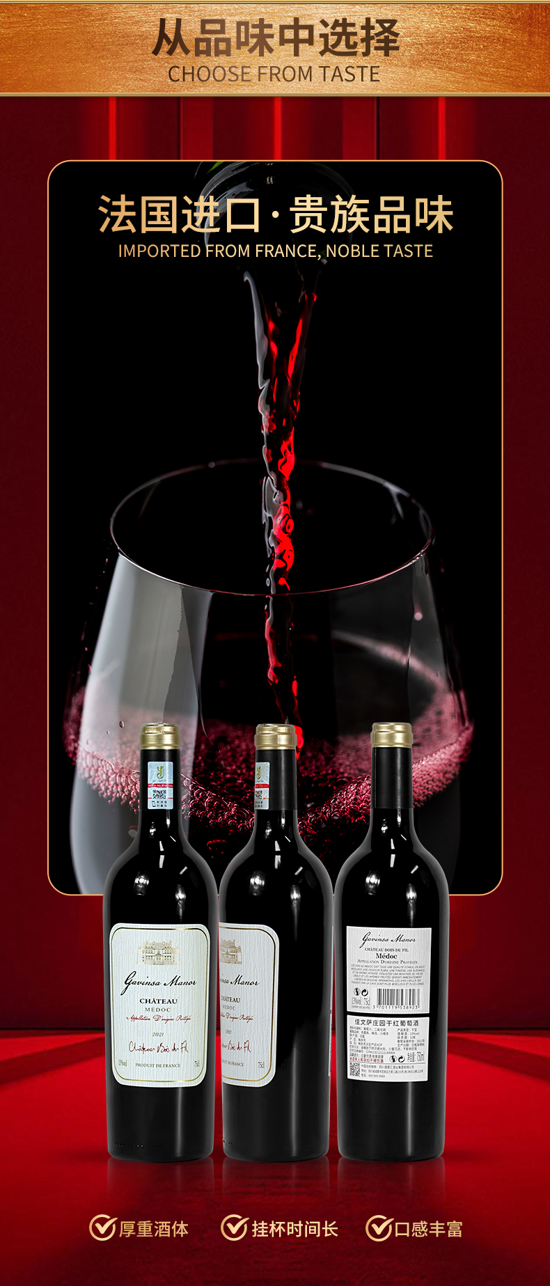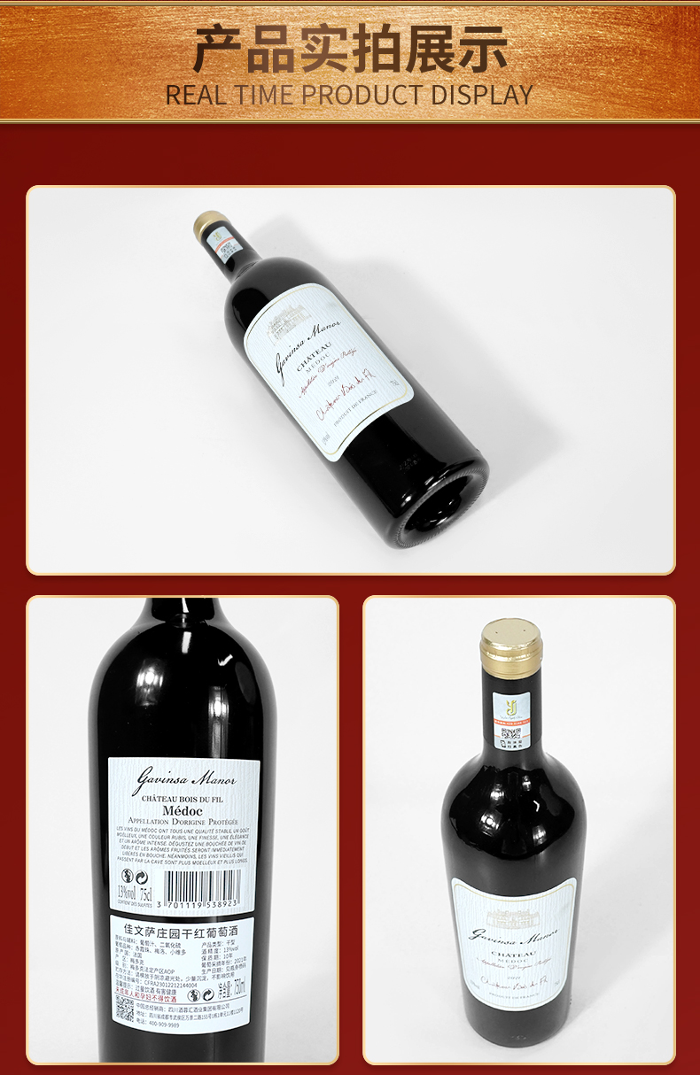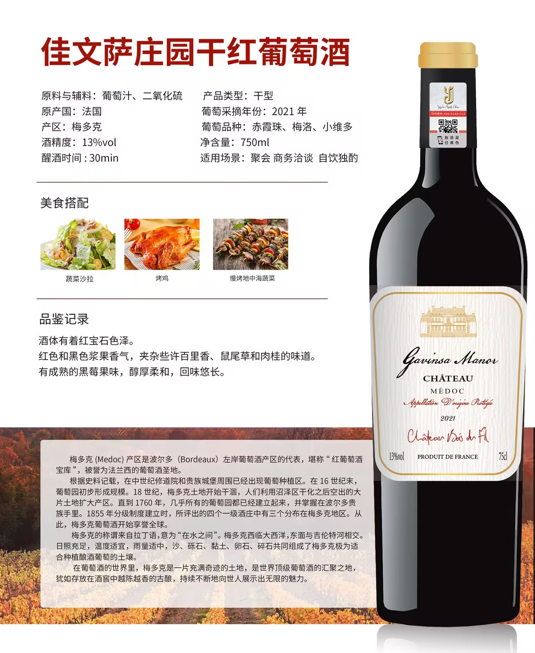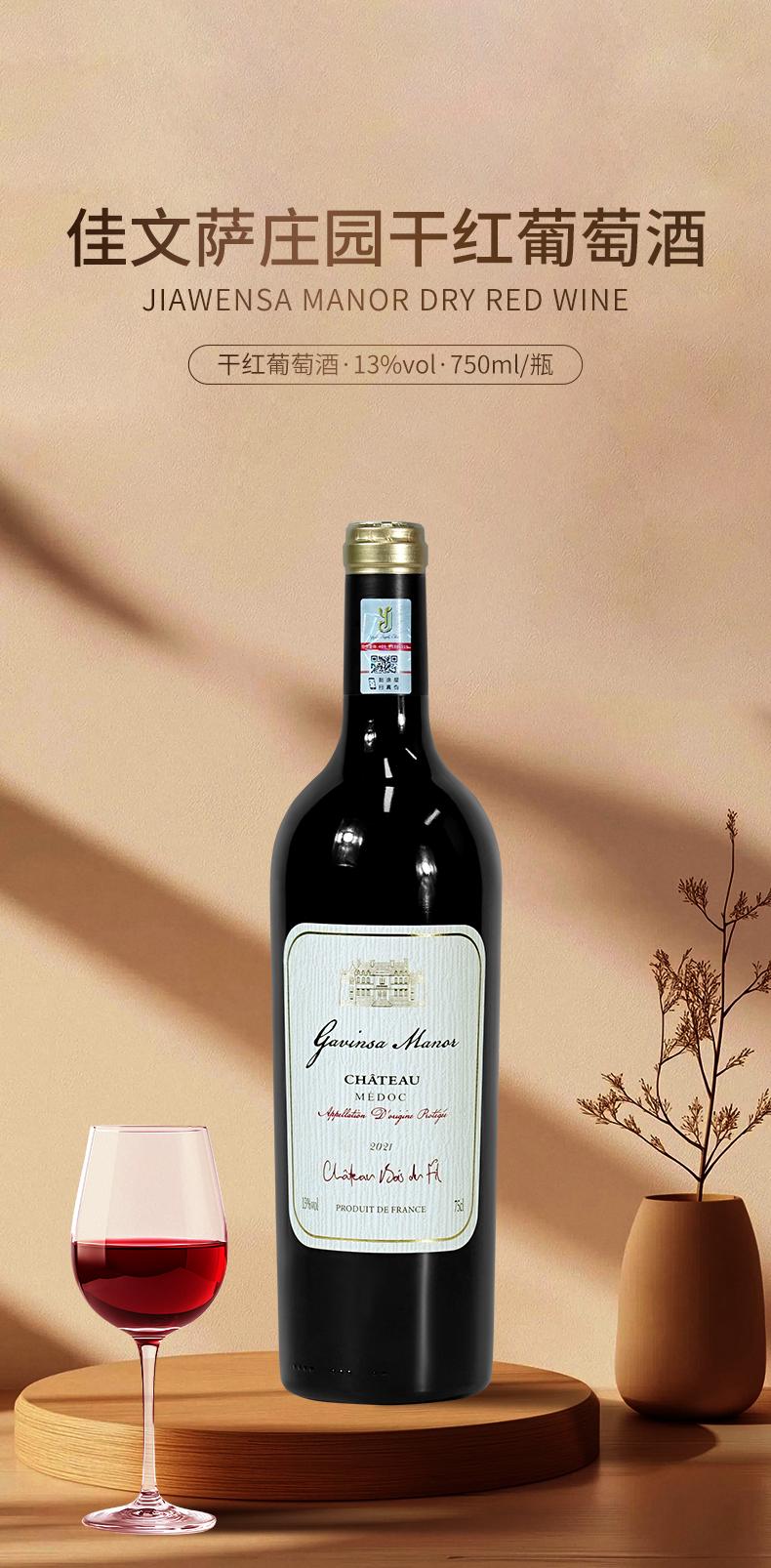 法国 佳文萨庄园干红葡萄酒 13度进口红酒750ml*1支(裸瓶)