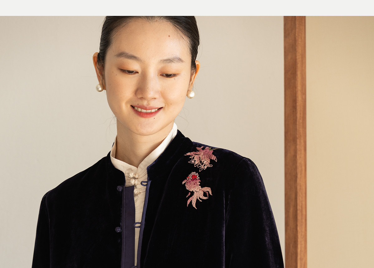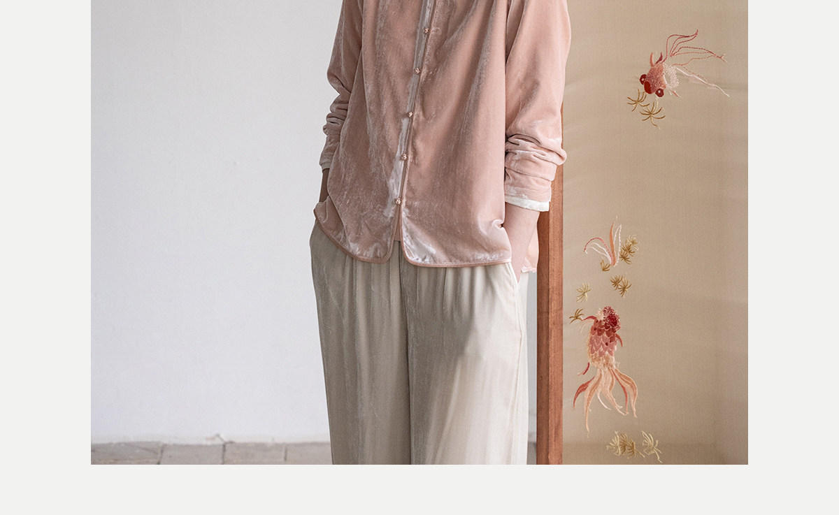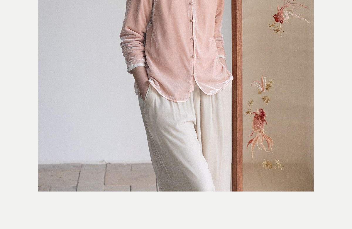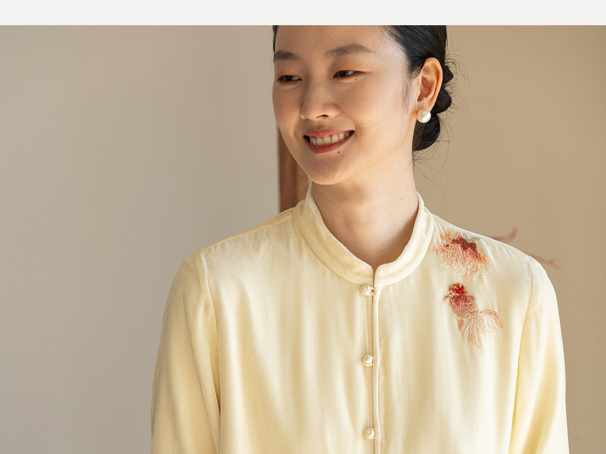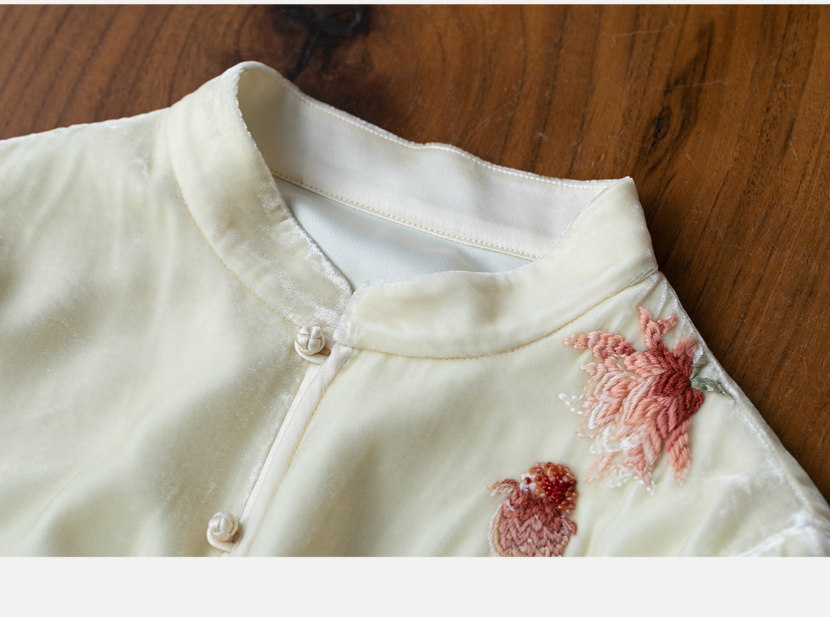 牧衣游原创 丝绒手工刺绣衬衫新款禅意复古中式茶服文艺衬衣 景明