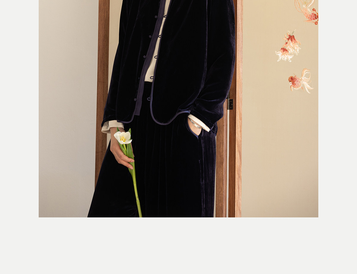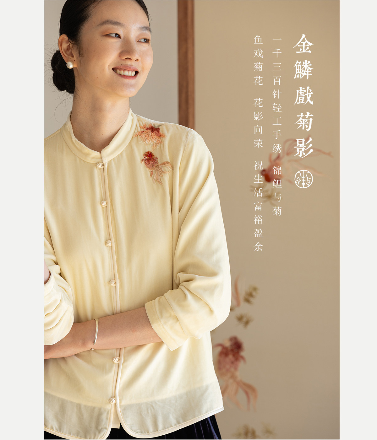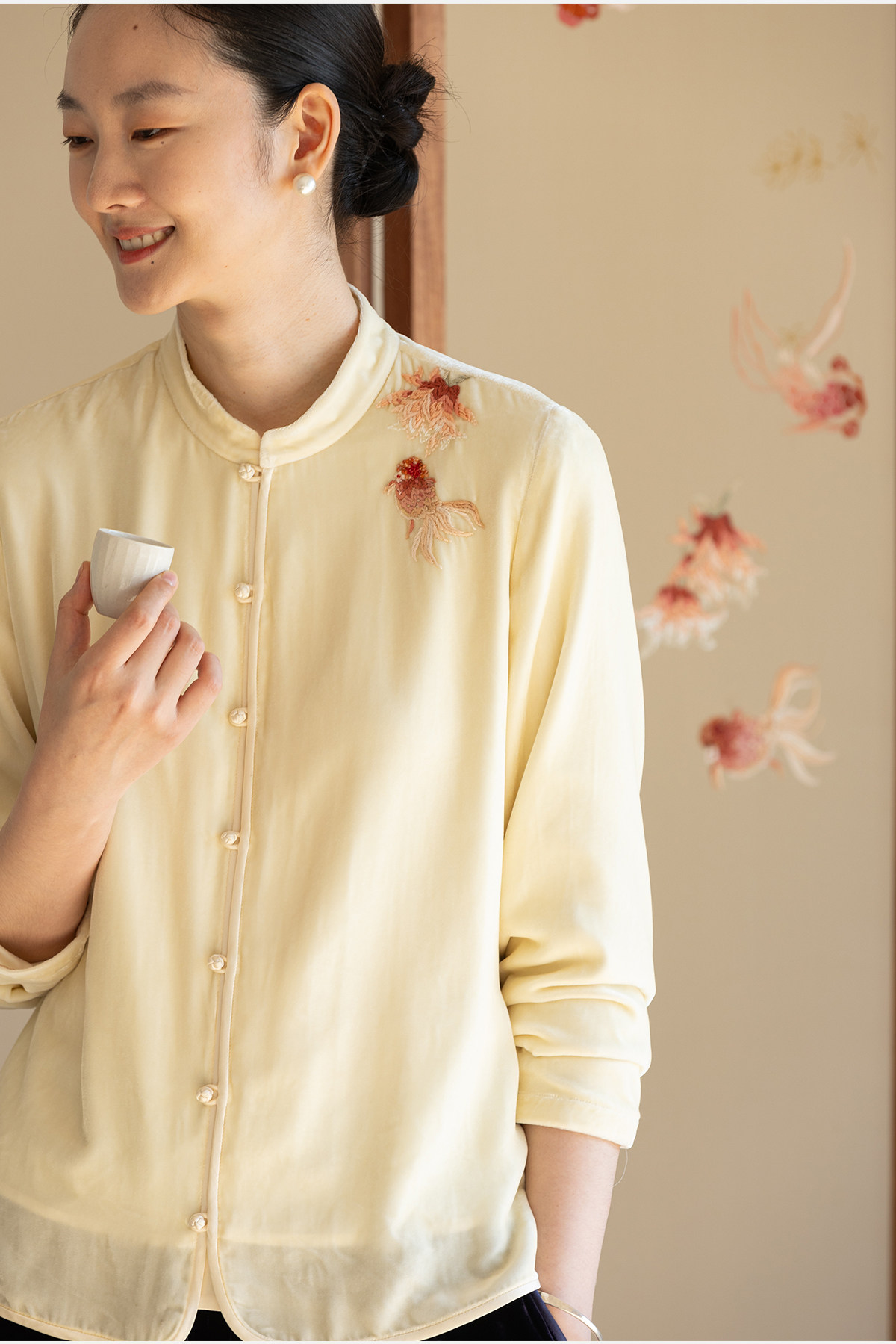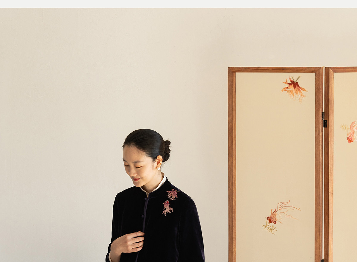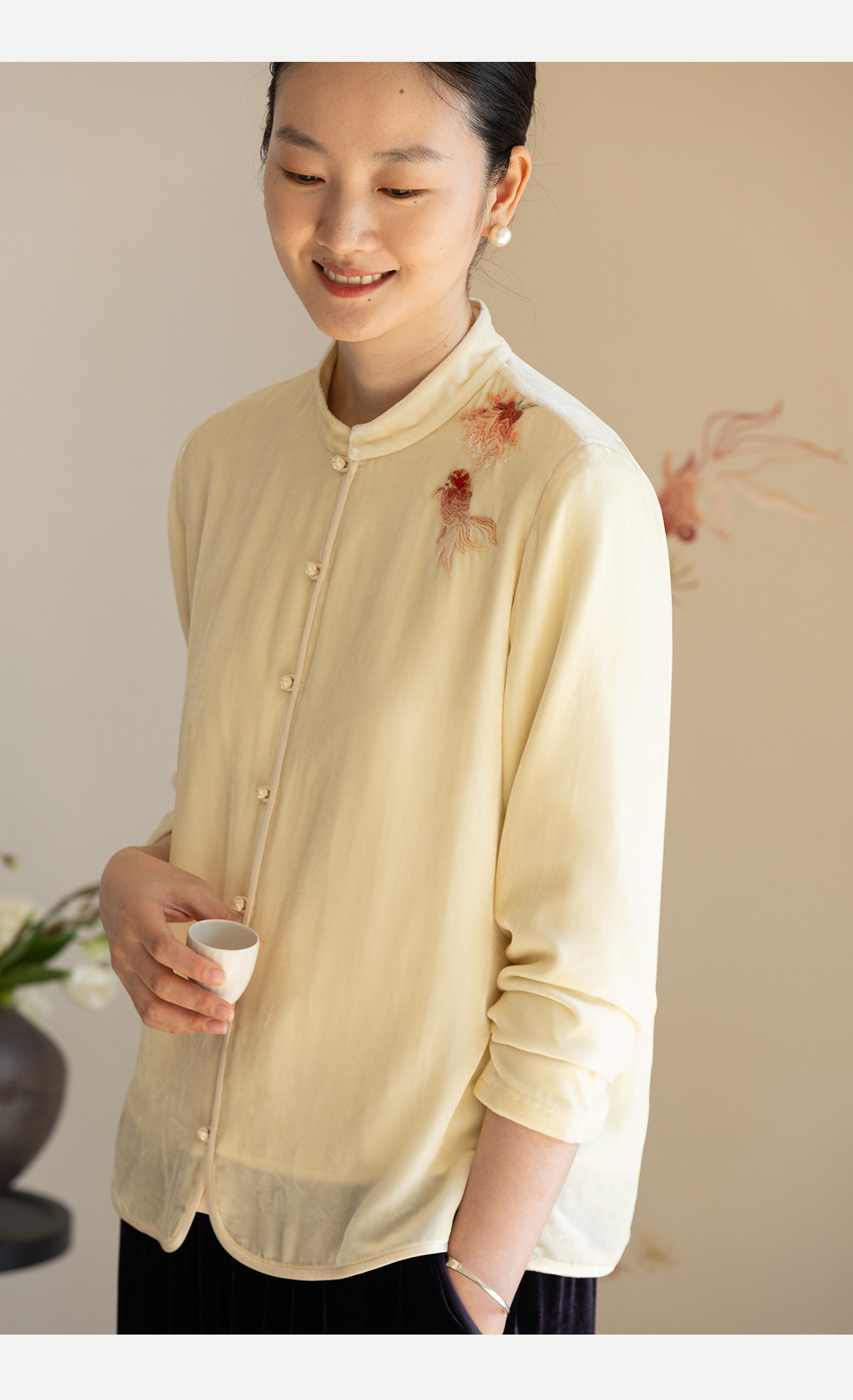 牧衣游原创 丝绒手工刺绣衬衫新款禅意复古中式茶服文艺衬衣 景明