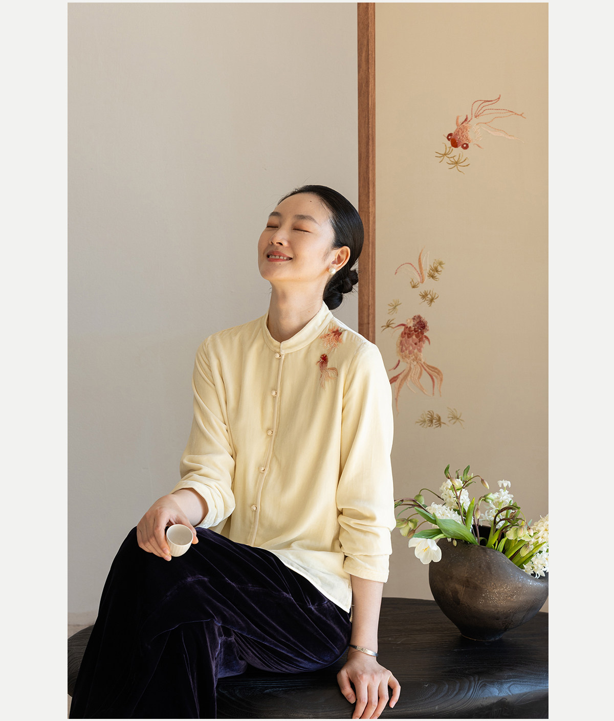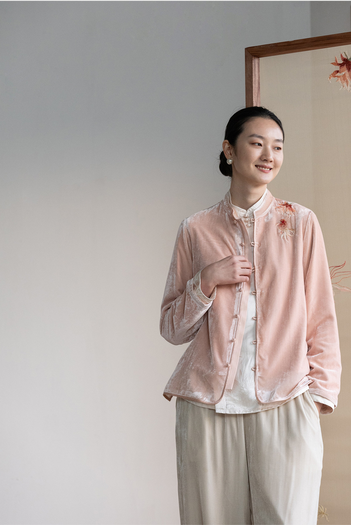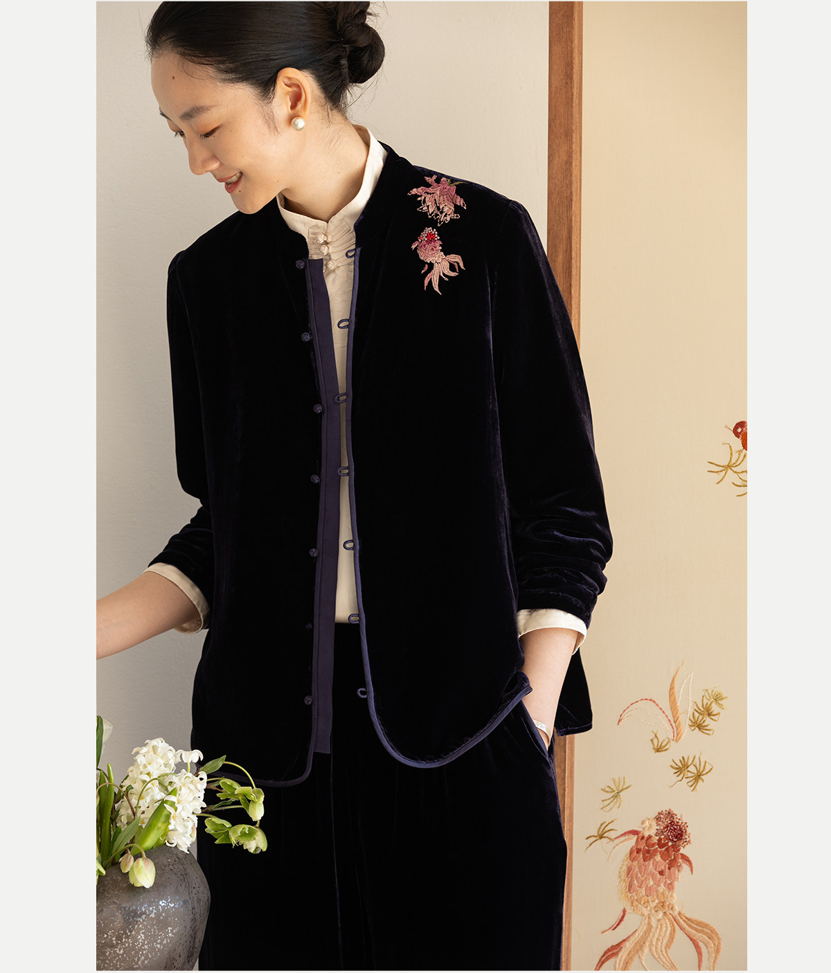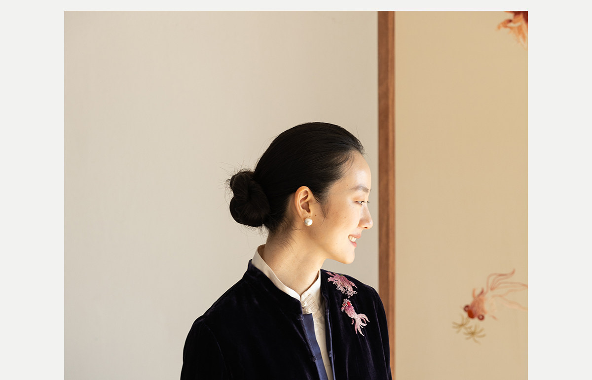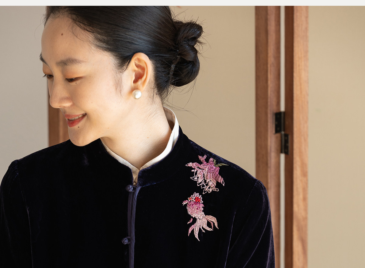 牧衣游原创 丝绒手工刺绣衬衫新款禅意复古中式茶服文艺衬衣 景明
