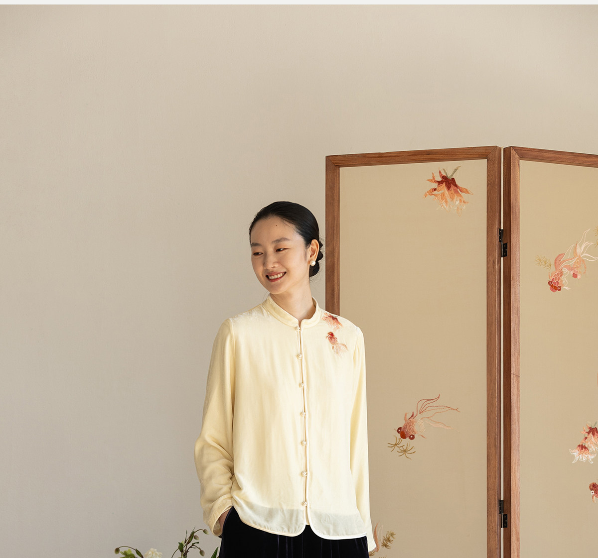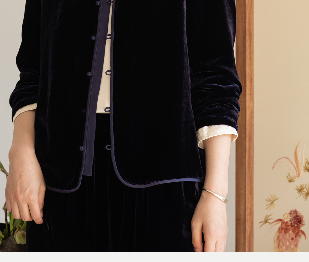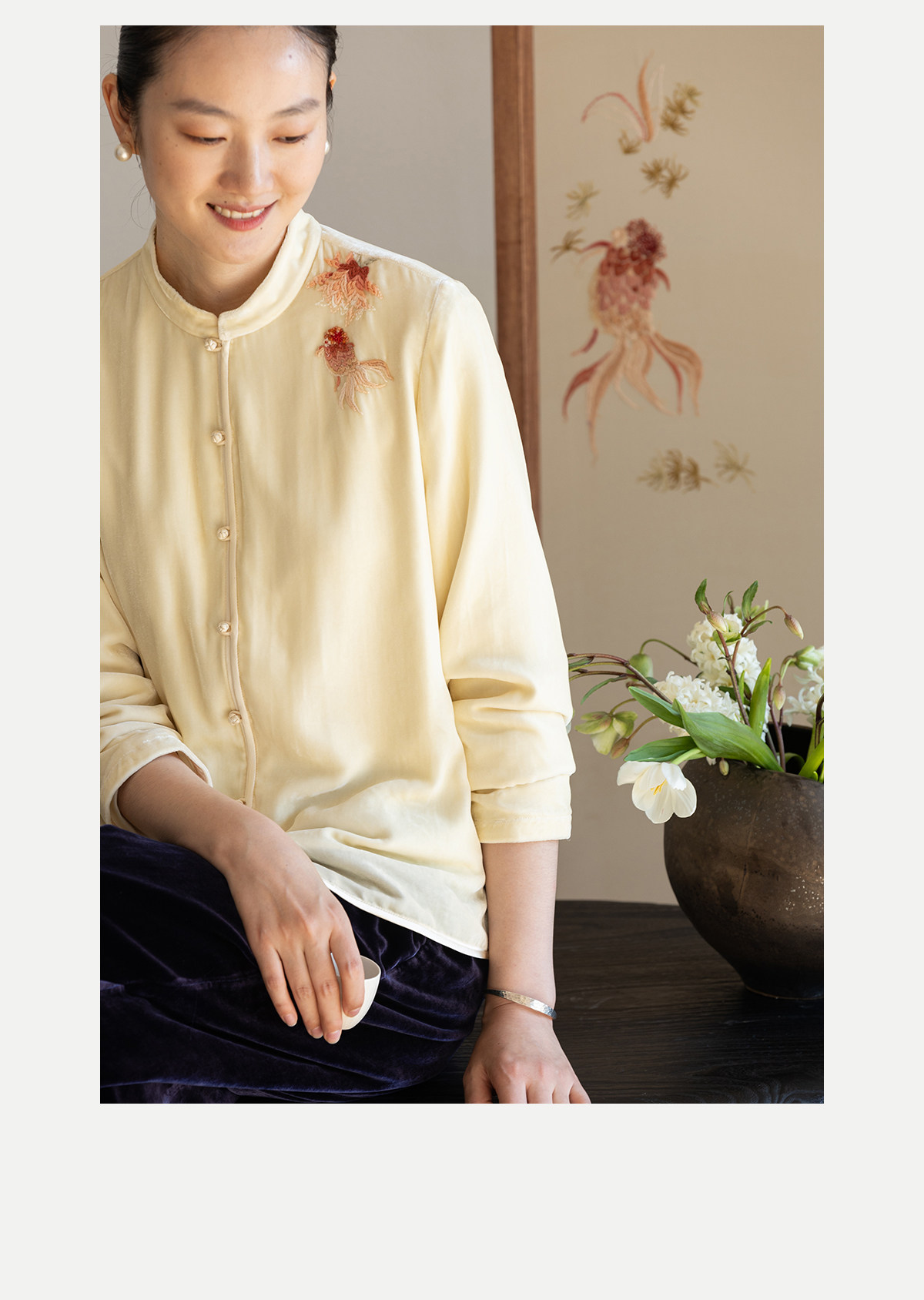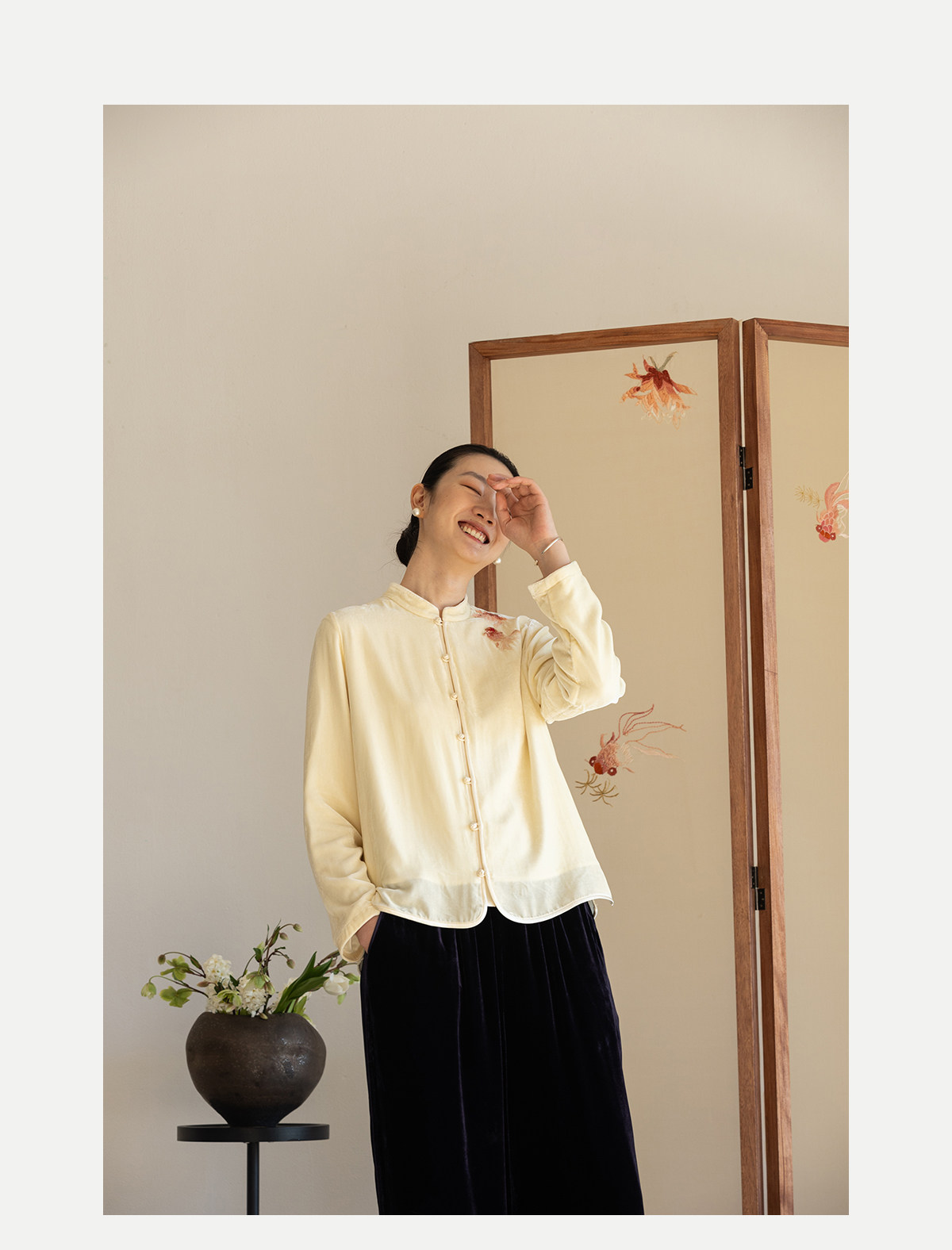 牧衣游原创 丝绒手工刺绣衬衫新款禅意复古中式茶服文艺衬衣 景明