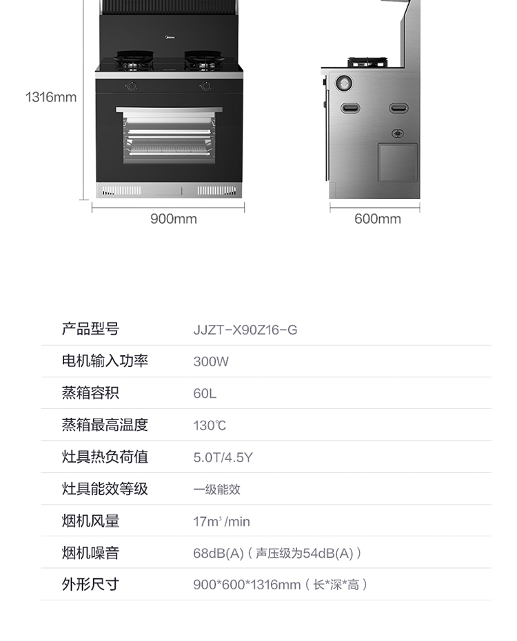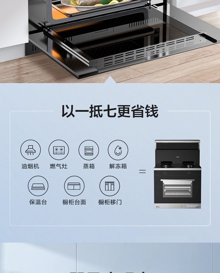 美的蒸箱集成灶 钢化玻璃JJZT-90Z16-G