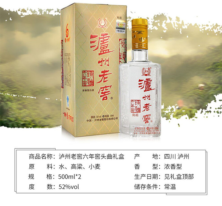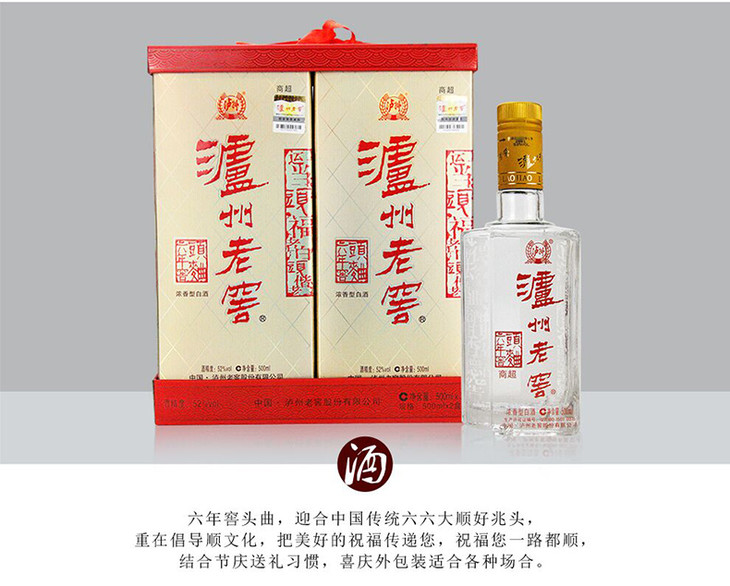 52度 泸州老窖六年窖头曲酒 商超版 500ml*2 泸州老窖官方旗舰店