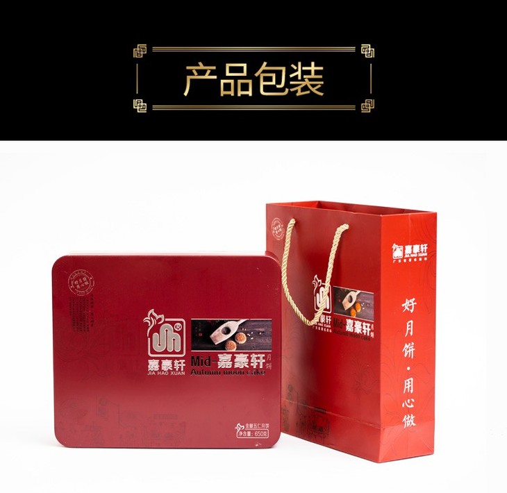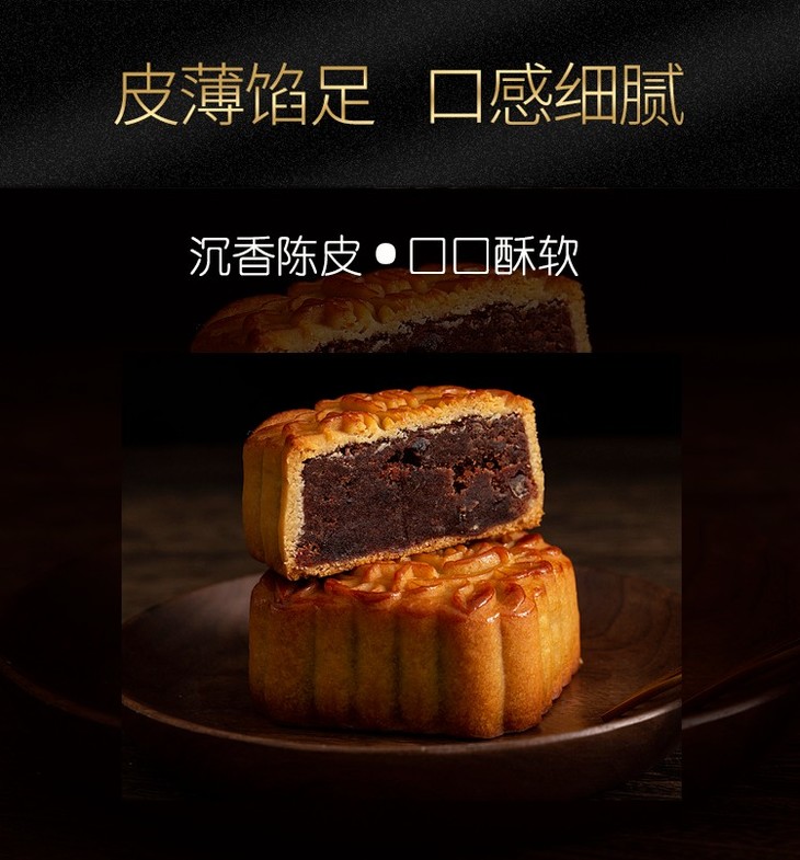 嘉豪轩广东新会陈皮豆沙手工红豆沙月饼精品4只礼盒装 陈皮豆沙馅