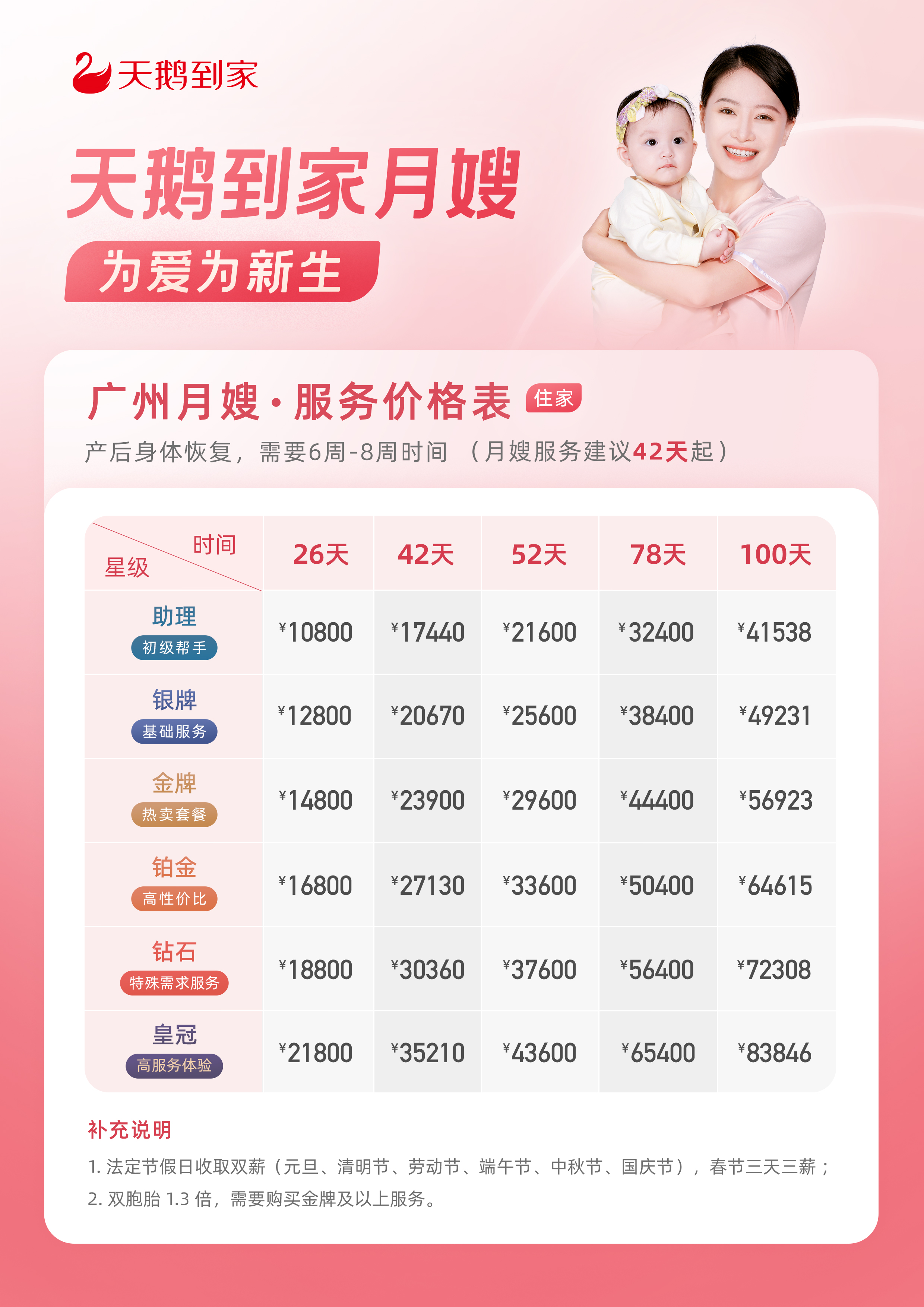 天鹅到家——月嫂报价