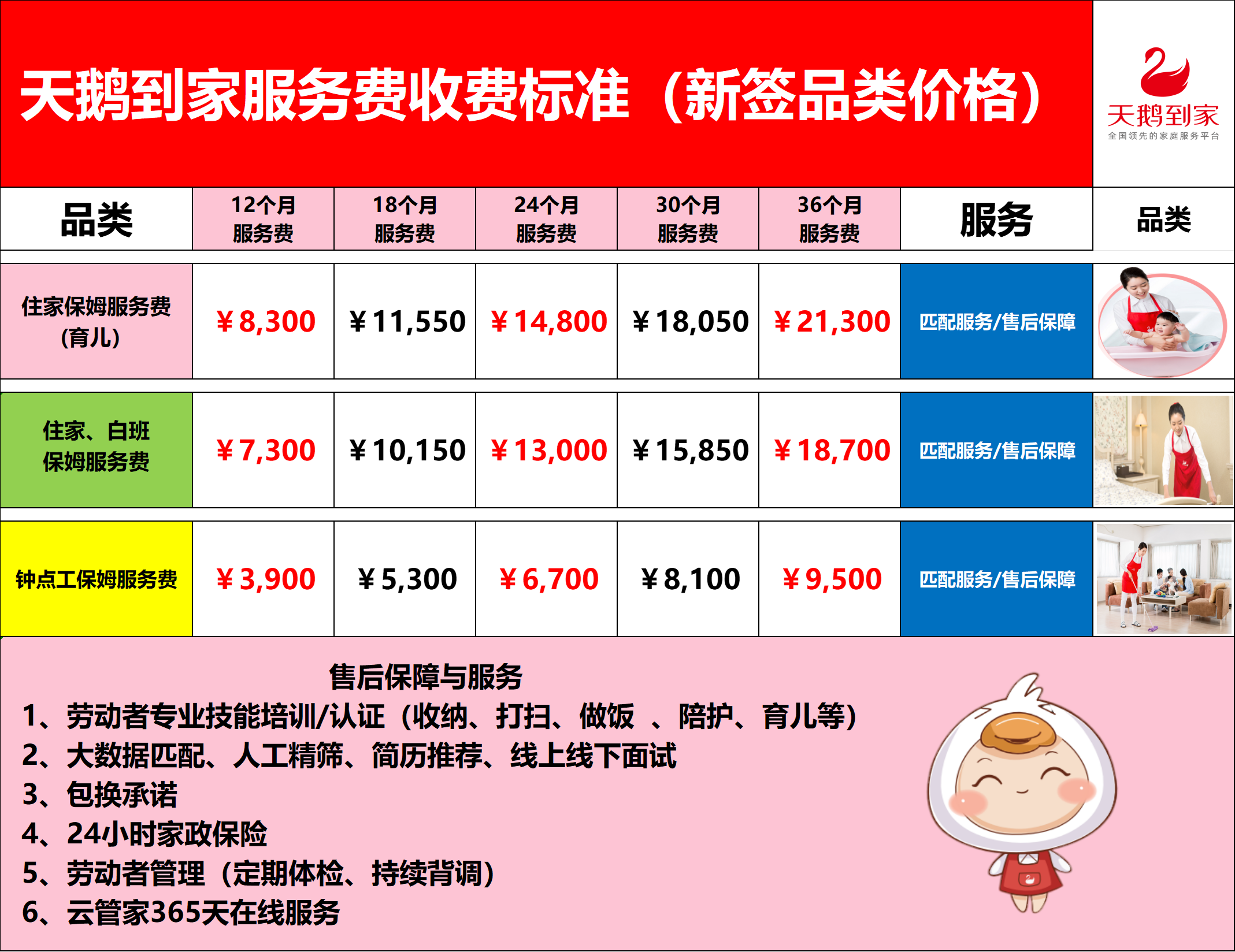 天鹅到家——育儿保姆服务费报价
