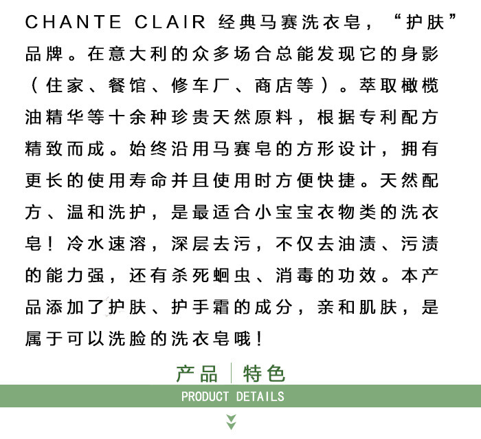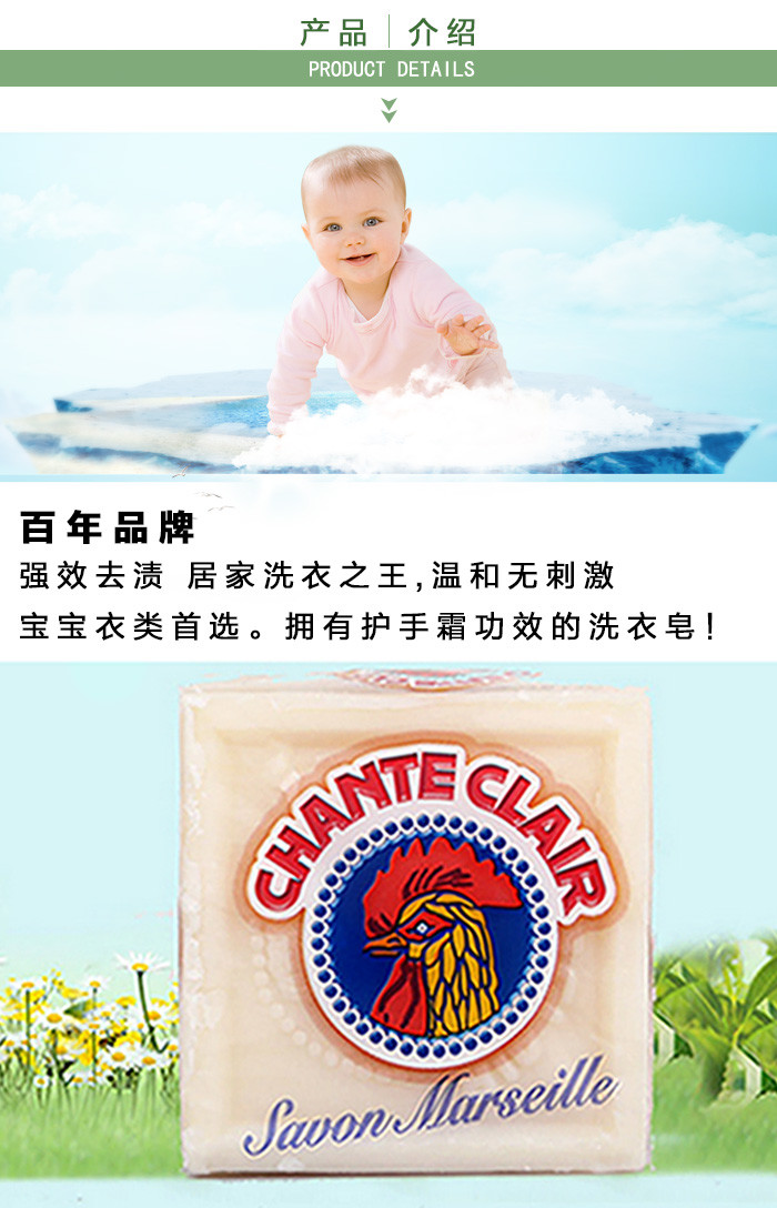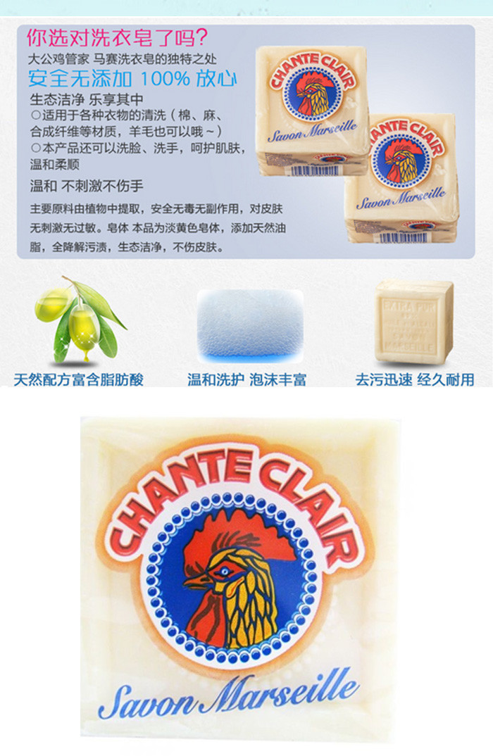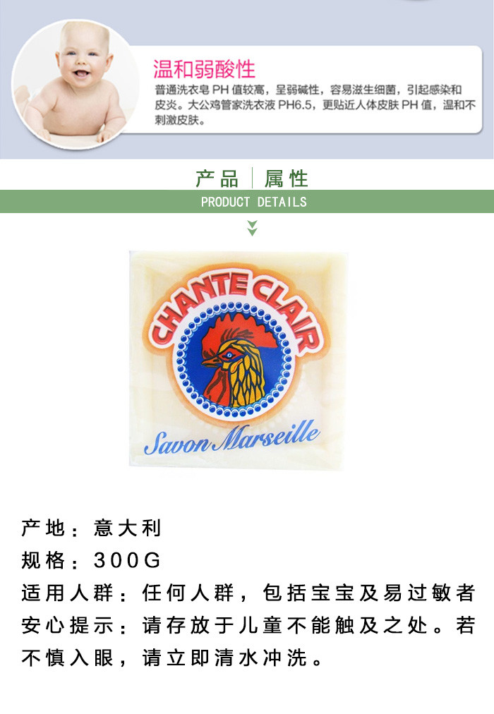 【抄底囤货】意大利进口CHANTE CLAIR公鸡头马赛洗衣皂300g*8