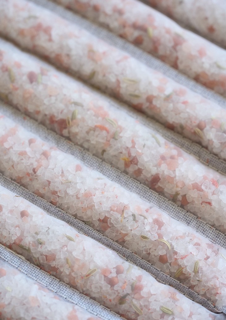 把粗盐和中药内料分成一个一个的小格