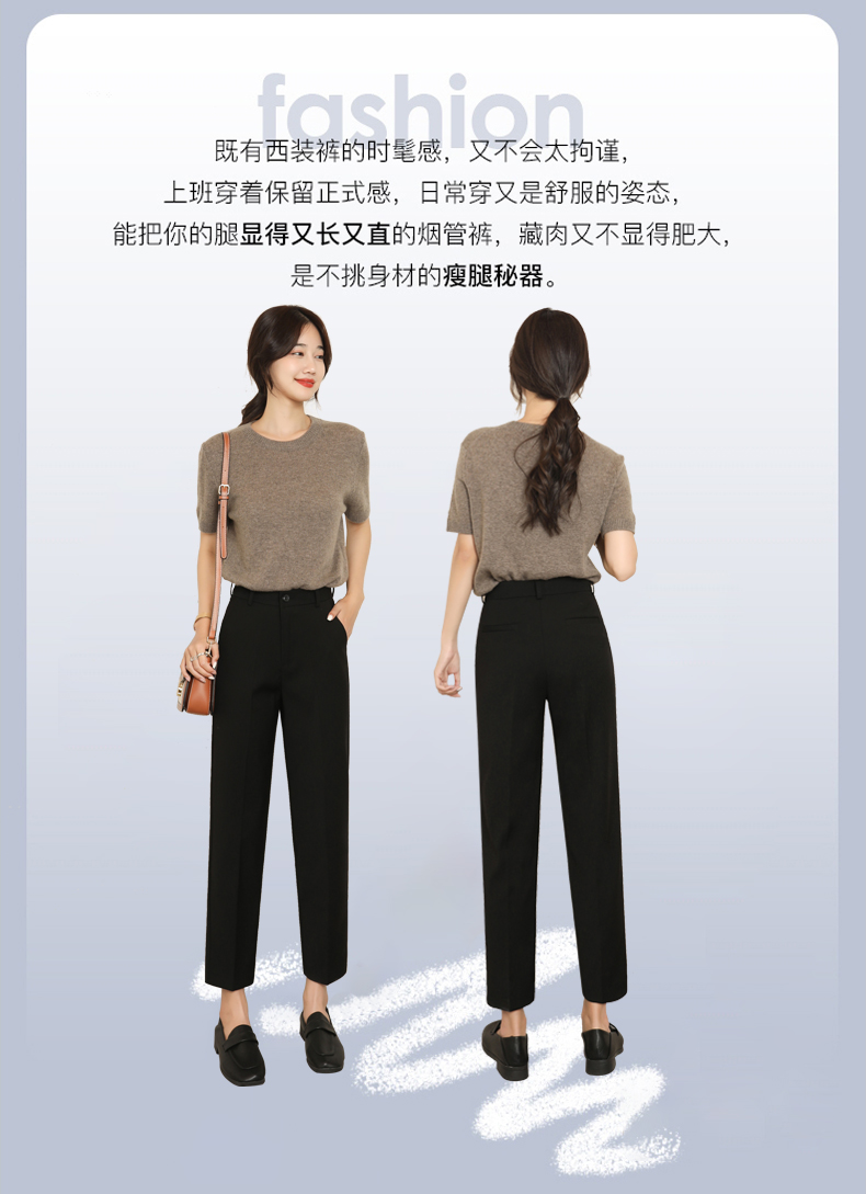【垂感西装烟管裤】 既有西装裤的时髦感,又不会太拘谨 藏肉不挑身材~~