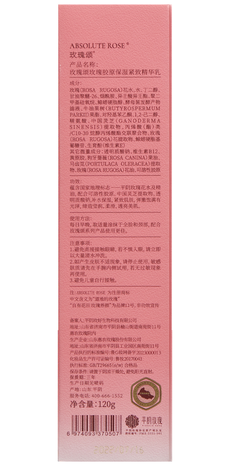 【官方直售】玫瑰颂玫瑰胶原保湿紧致精华乳保湿紧致120g