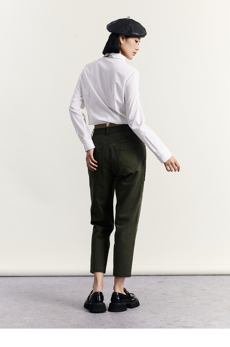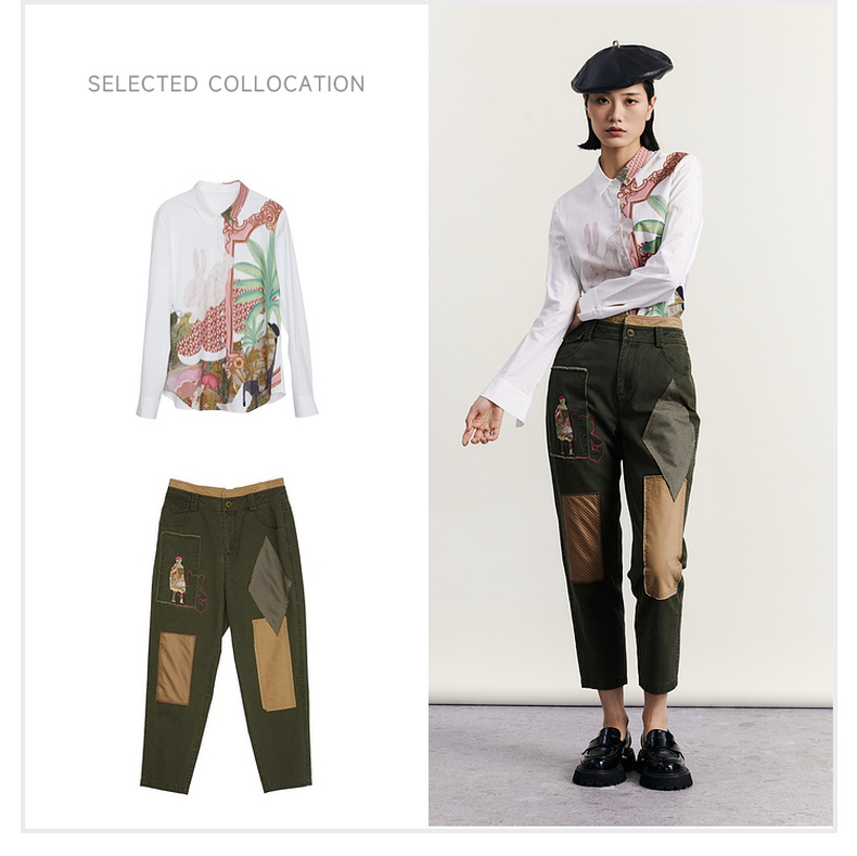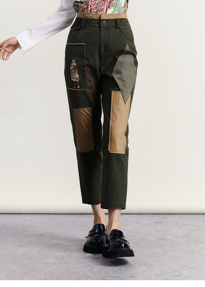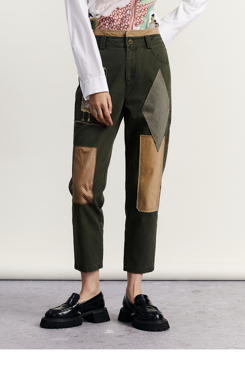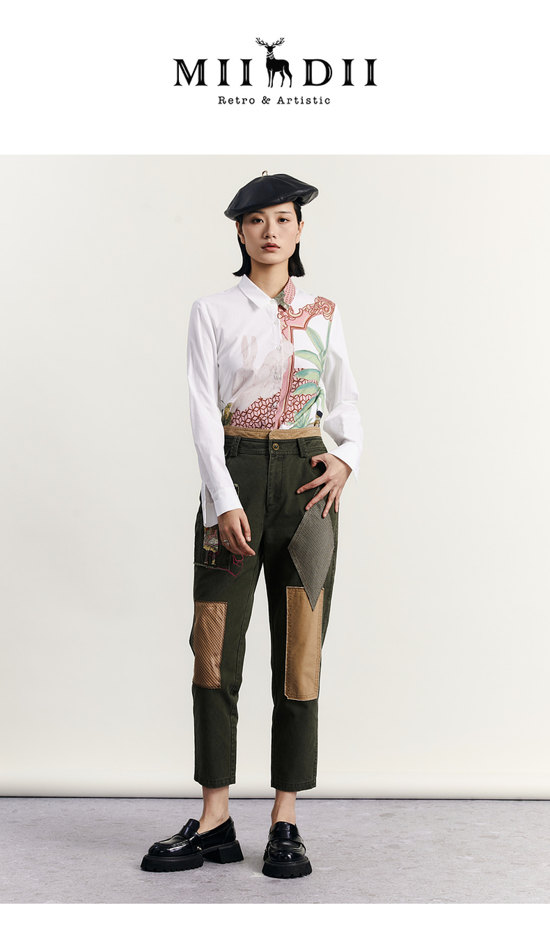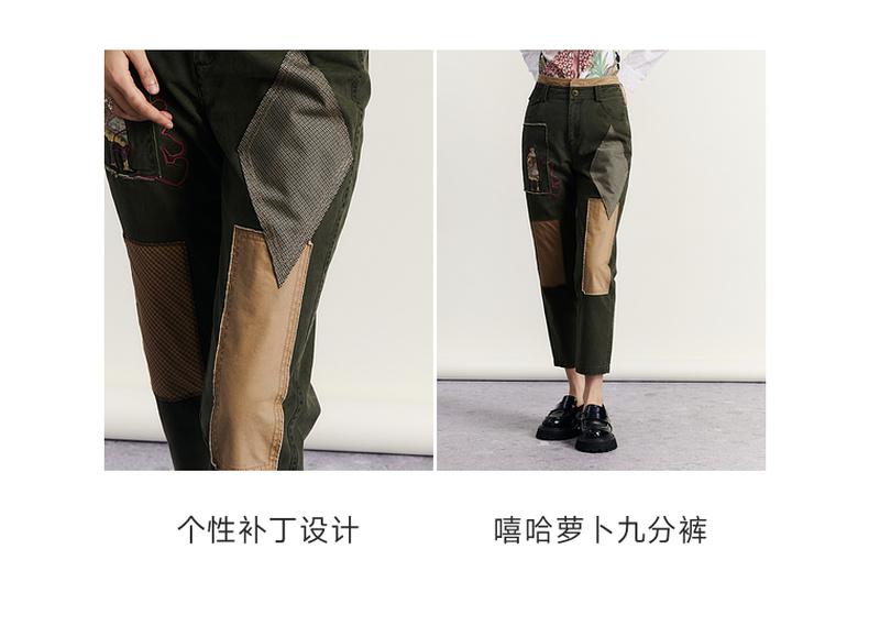 谜底绣花萝卜裤女2023秋新款复古特色百搭休闲裤九分裤233MK1009