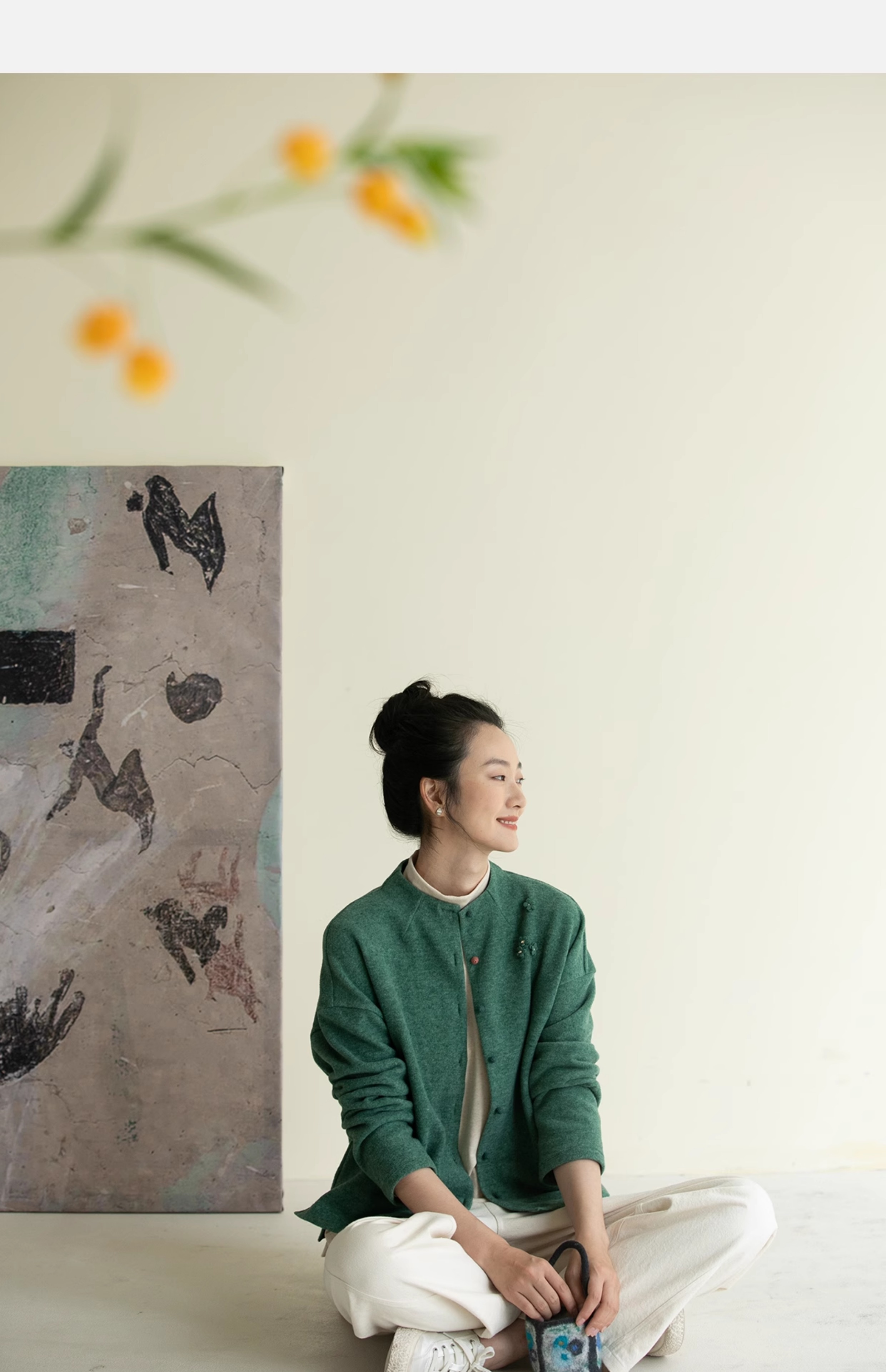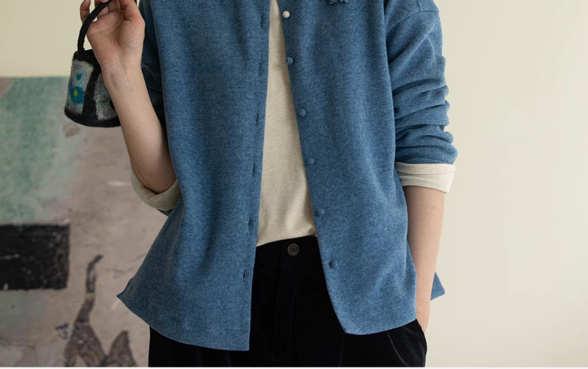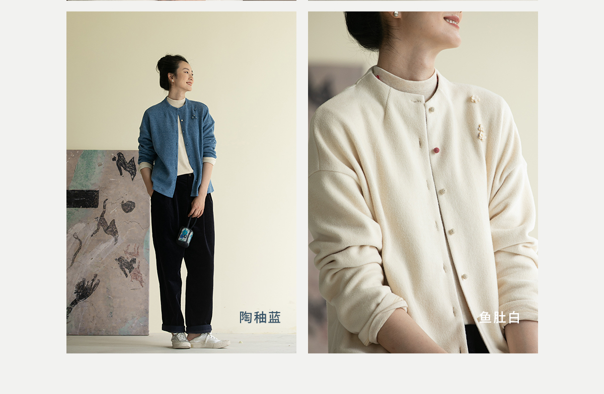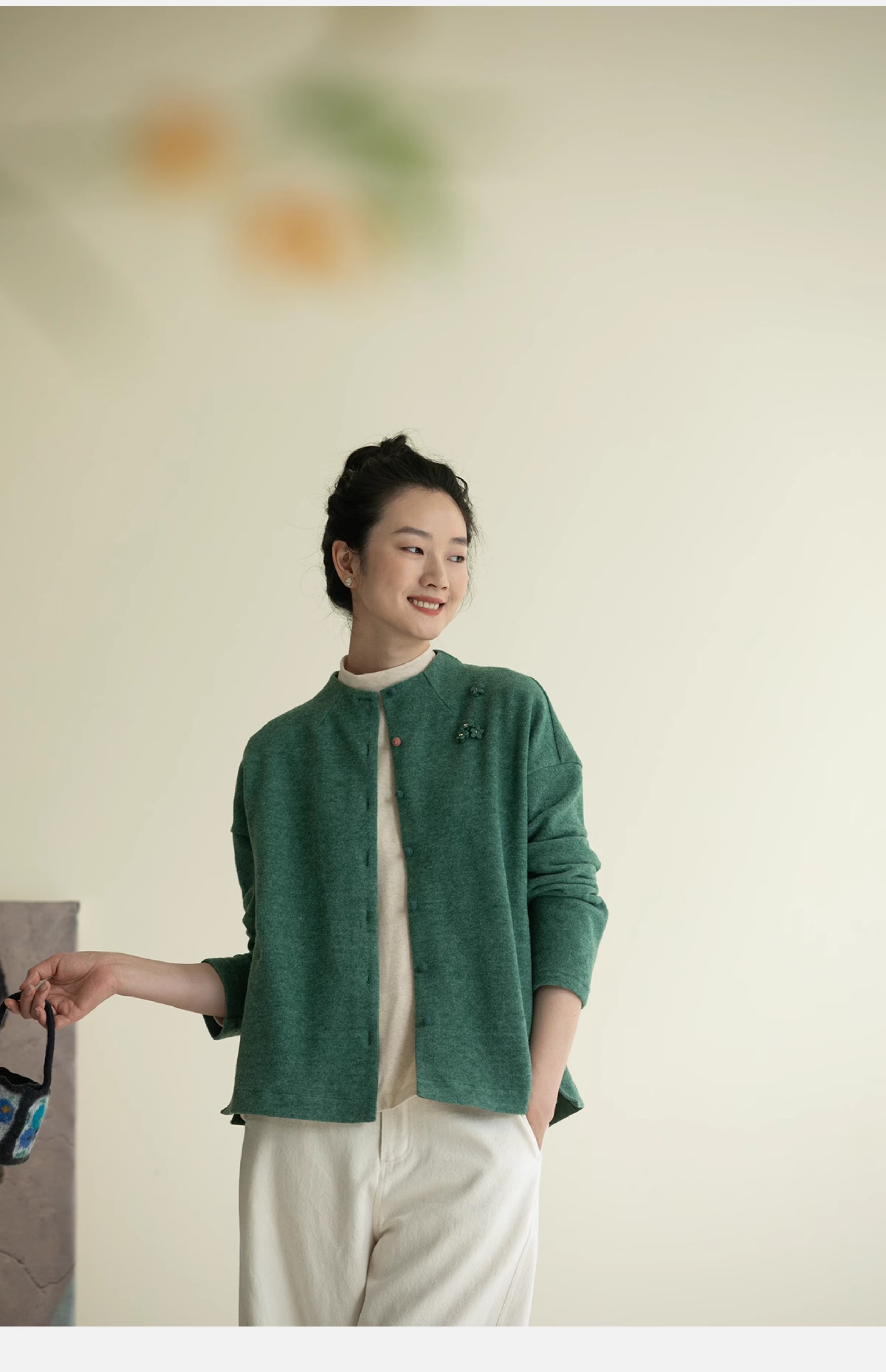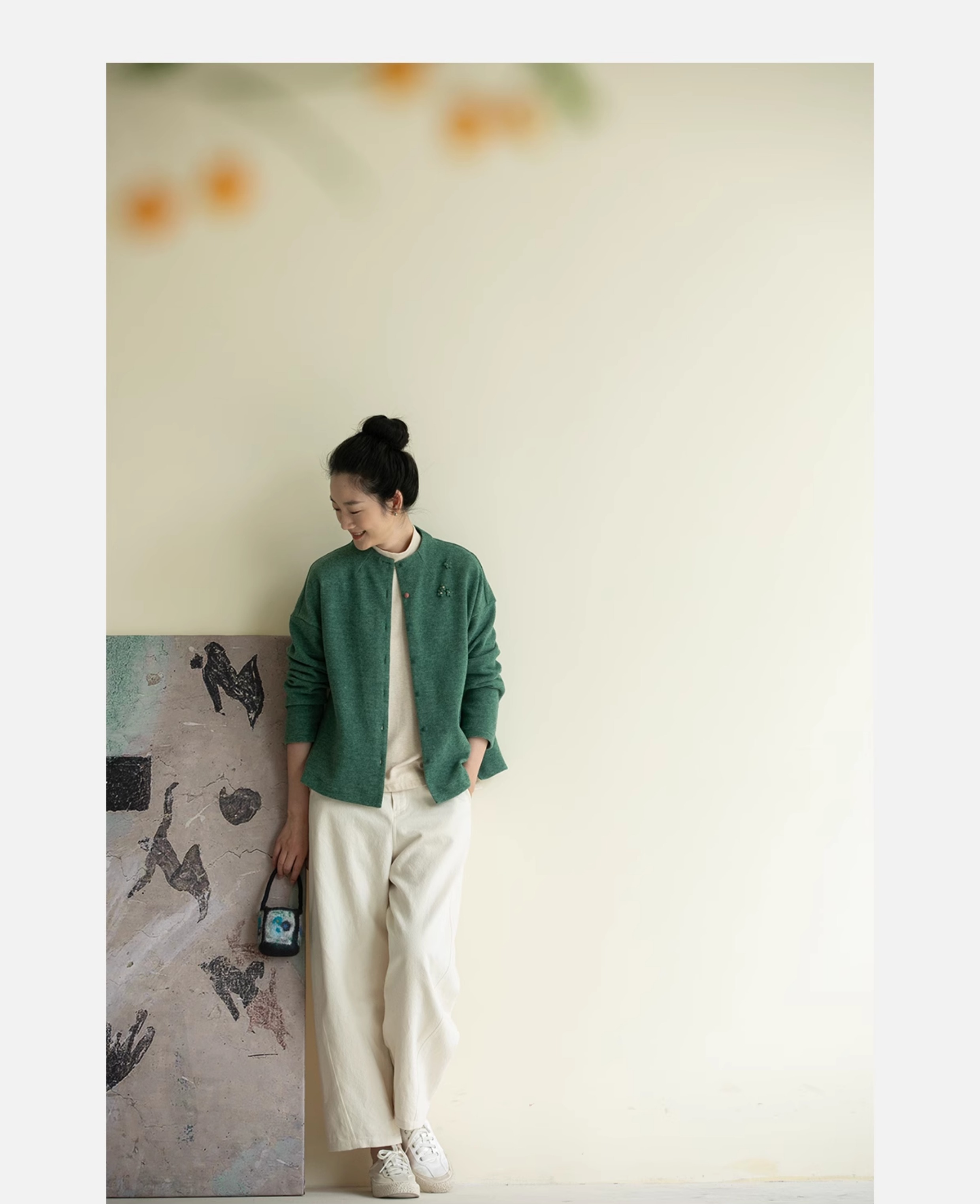 牧衣游原创 净色棉混纺外套女秋季新款立领文艺百搭宽松开衫 游镜
