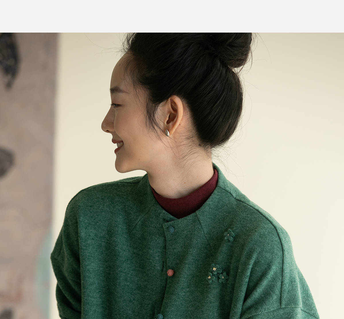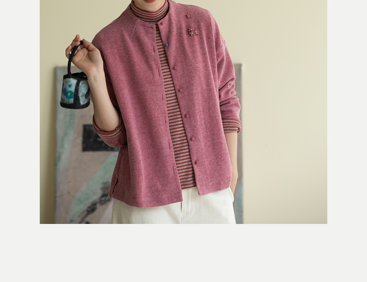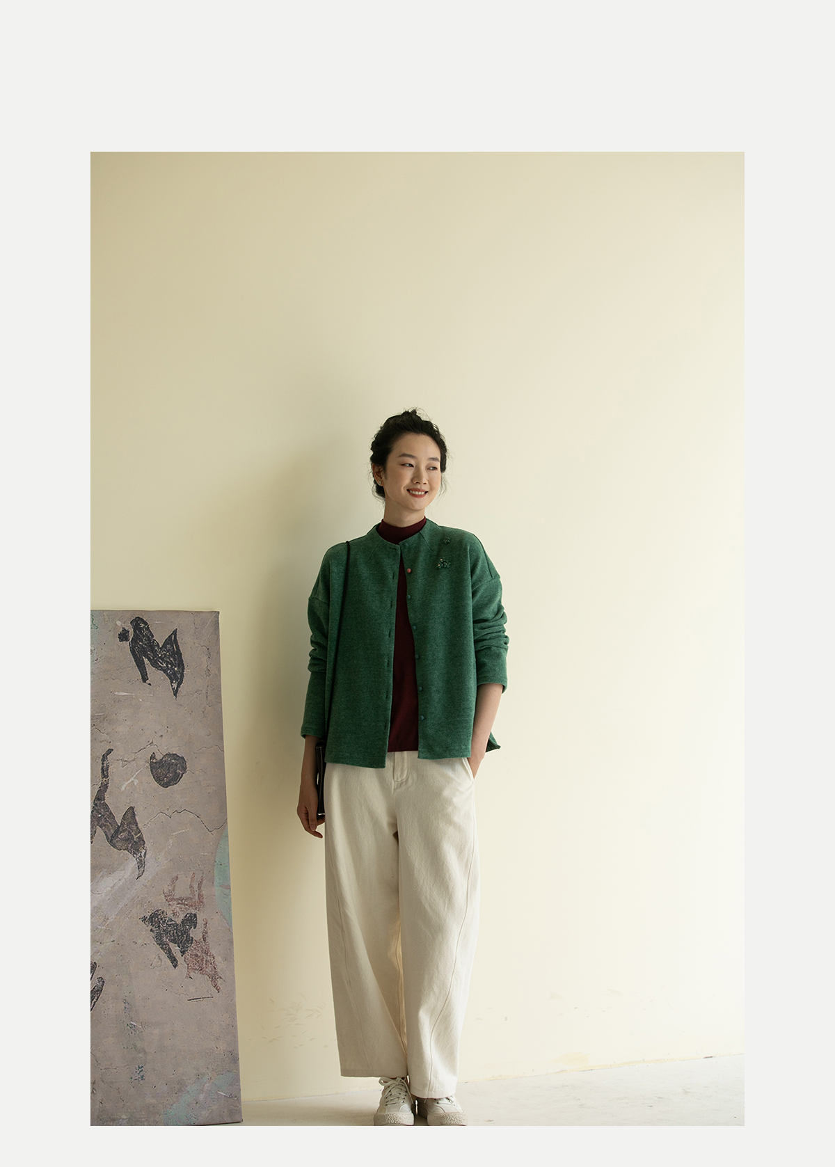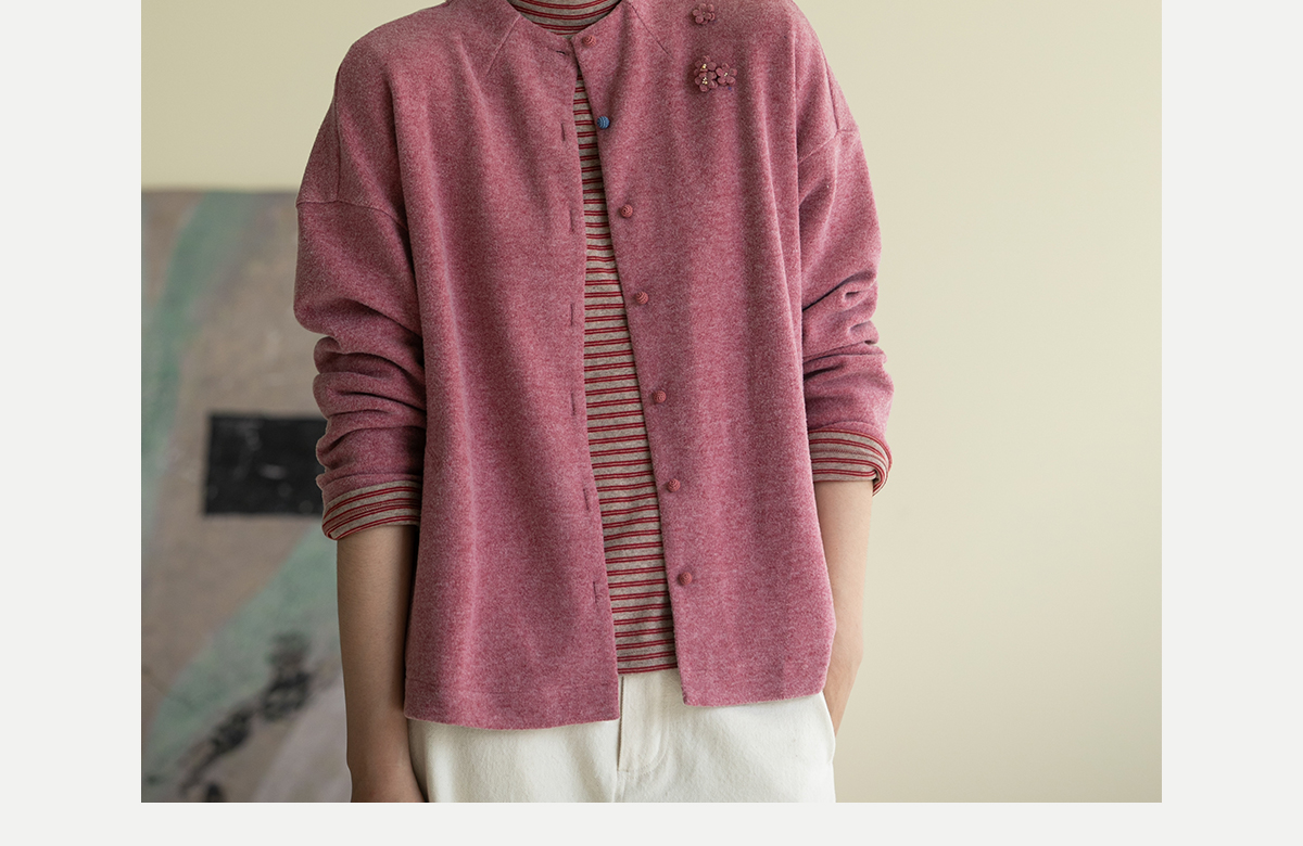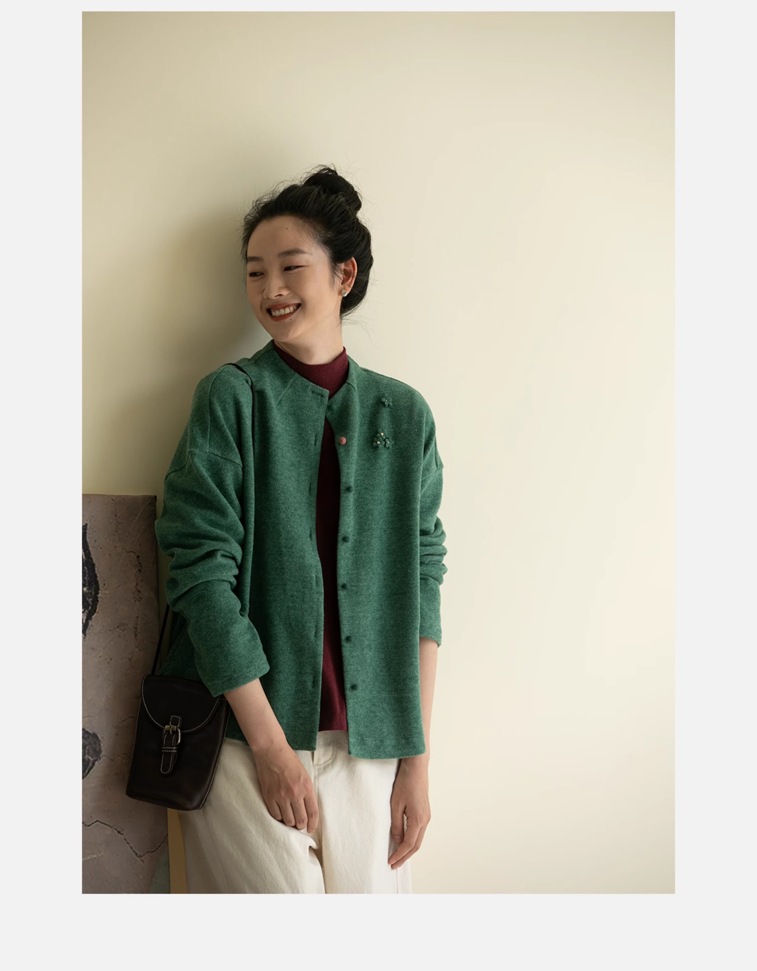牧衣游原创 净色棉混纺外套女秋季新款立领文艺百搭宽松开衫 游镜