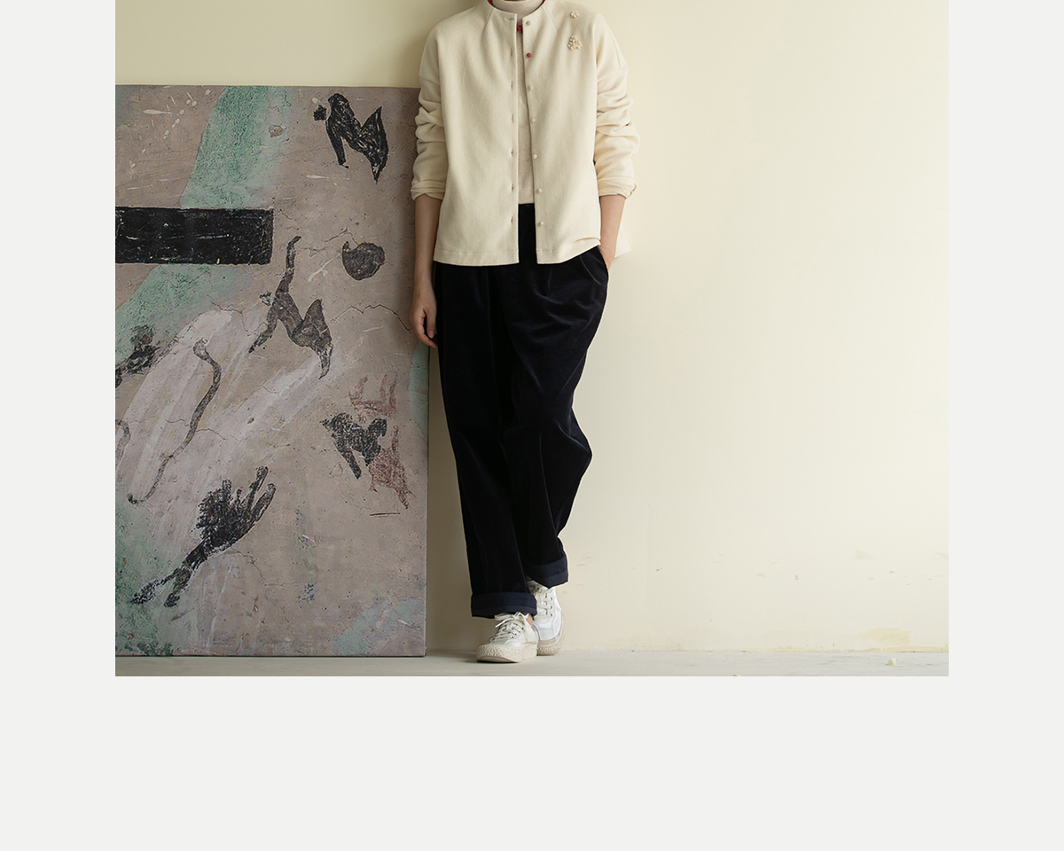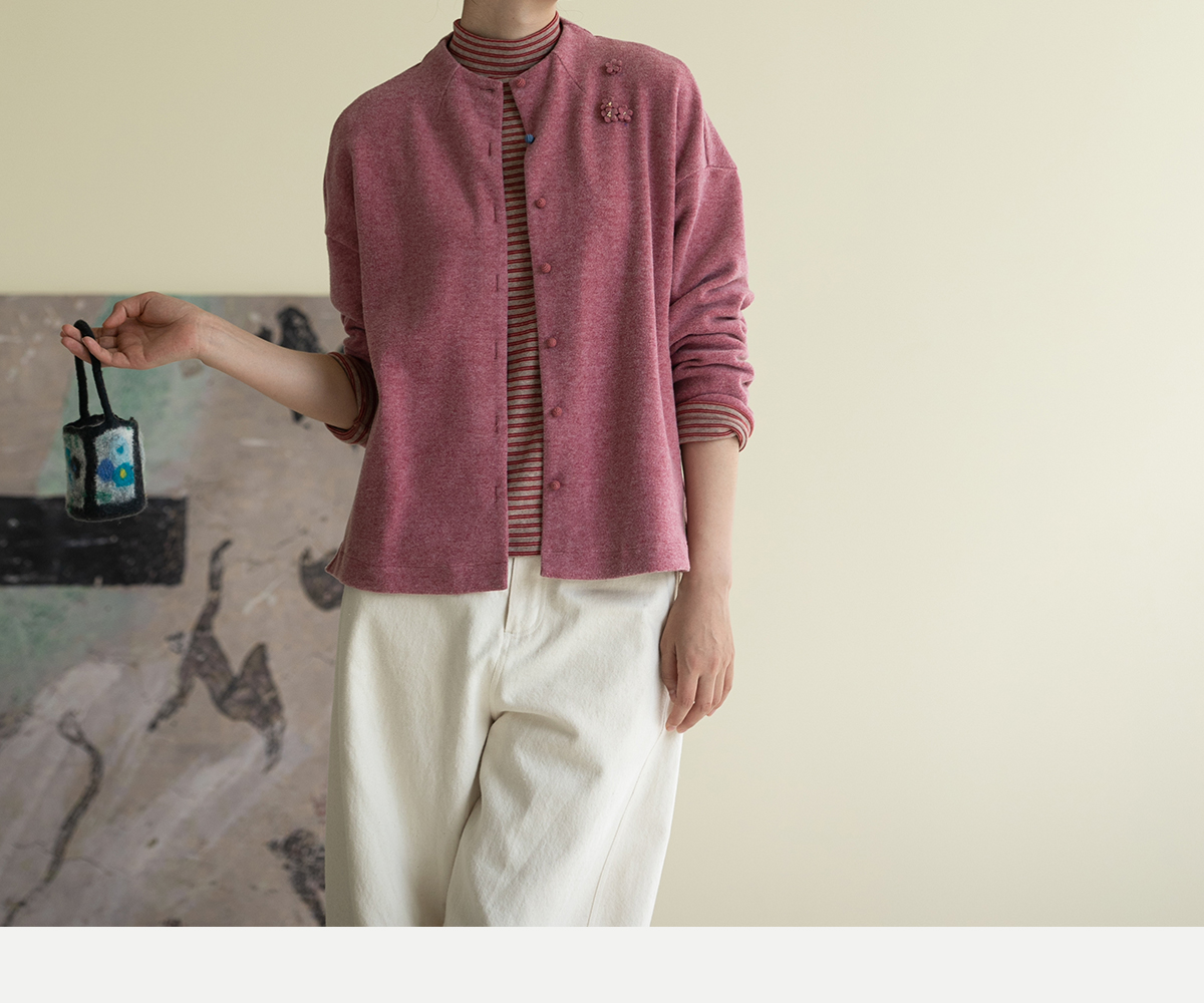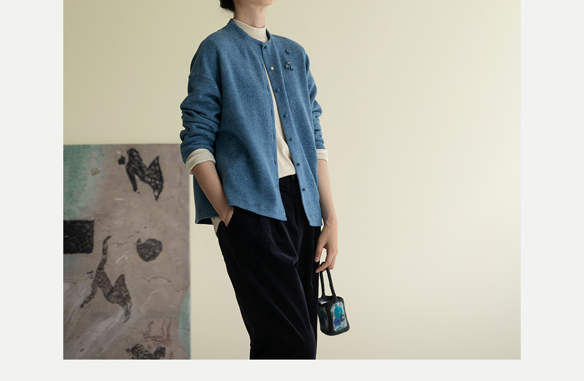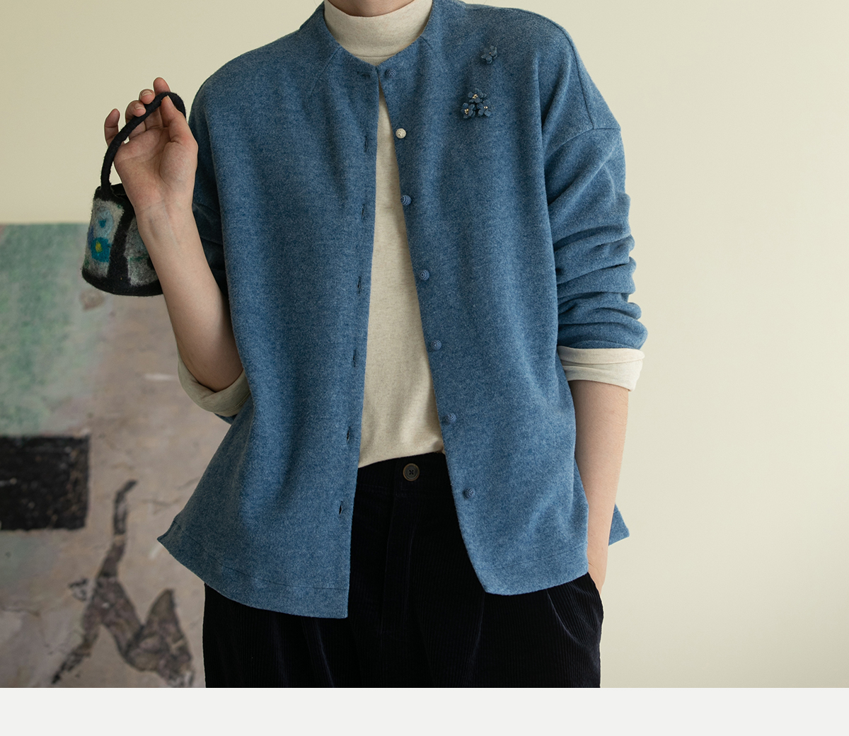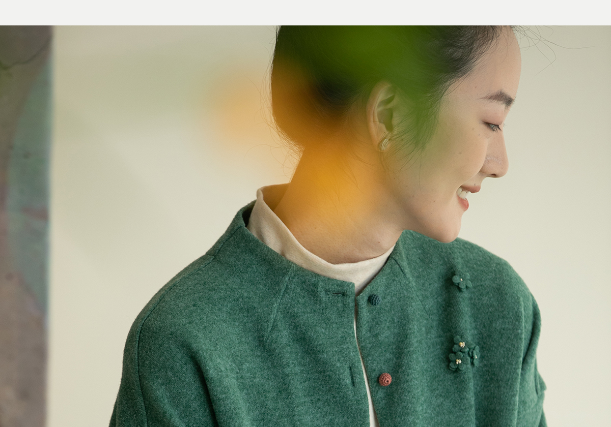 牧衣游原创 净色棉混纺外套女秋季新款立领文艺百搭宽松开衫 游镜
