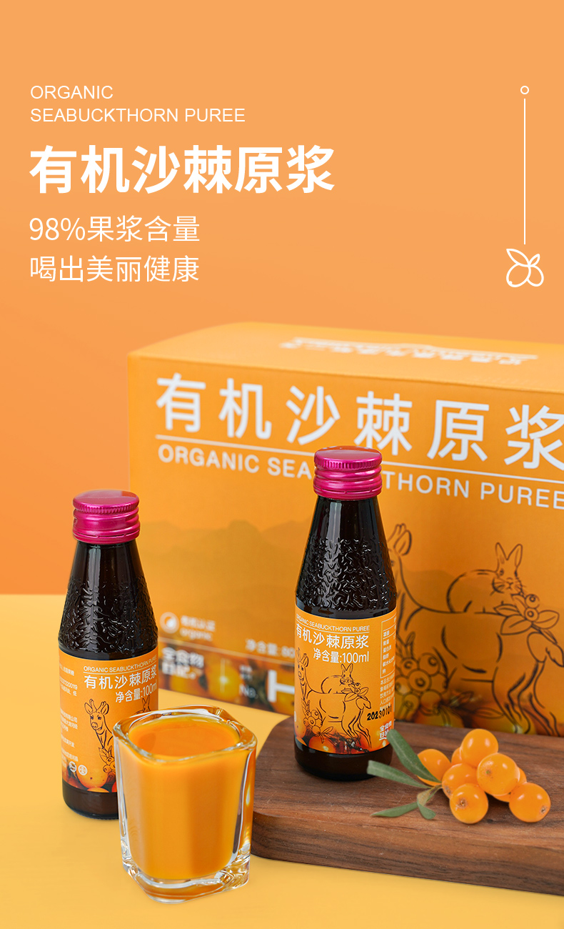 【8月福利】全食物日记 H31 有机沙棘原浆800mL(100mL×8瓶)25年11月25日到期
