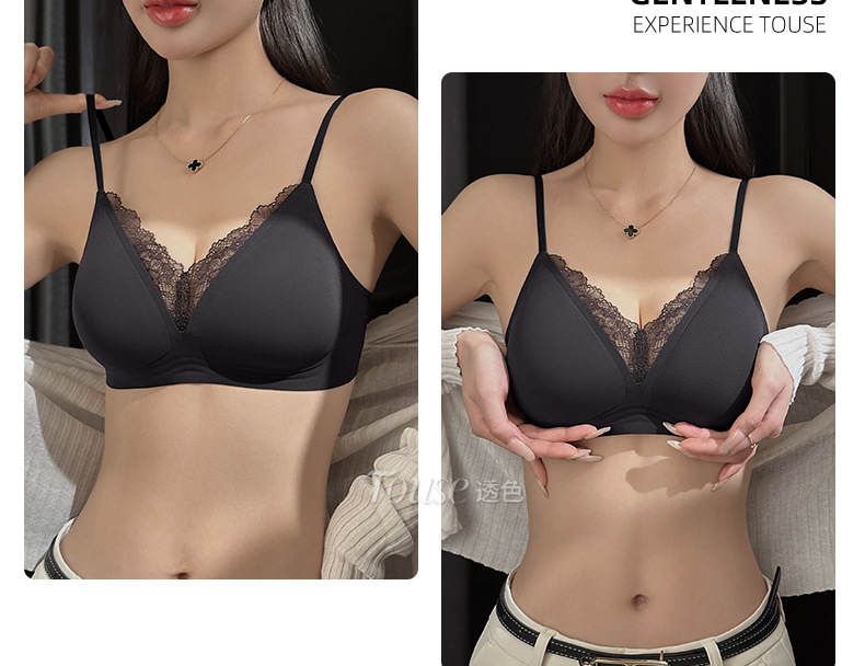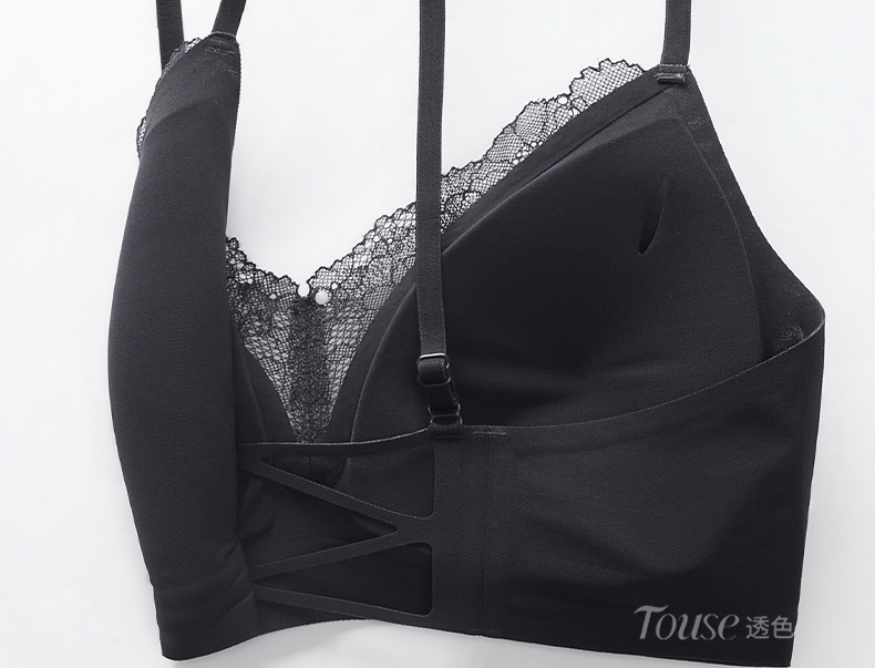 美背内衣女士小胸聚拢薄款防下垂收副乳细肩带背心式性感蕾丝文胸