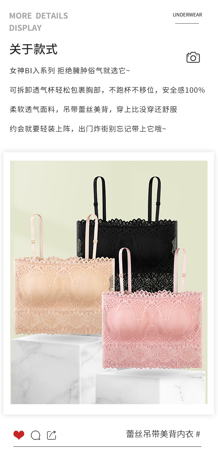 【买一送一!性感蕾丝美背bra】法式吊带美背蕾丝抹胸,穿上比没穿还舒服,可咸可甜,舒适性感可拆卸带胸垫,防走光高弹内搭,透气无痕打底裹胸内衣女