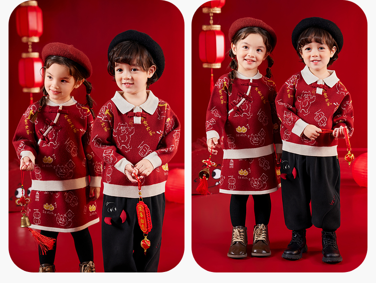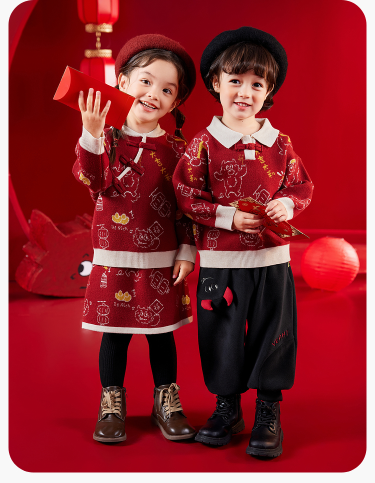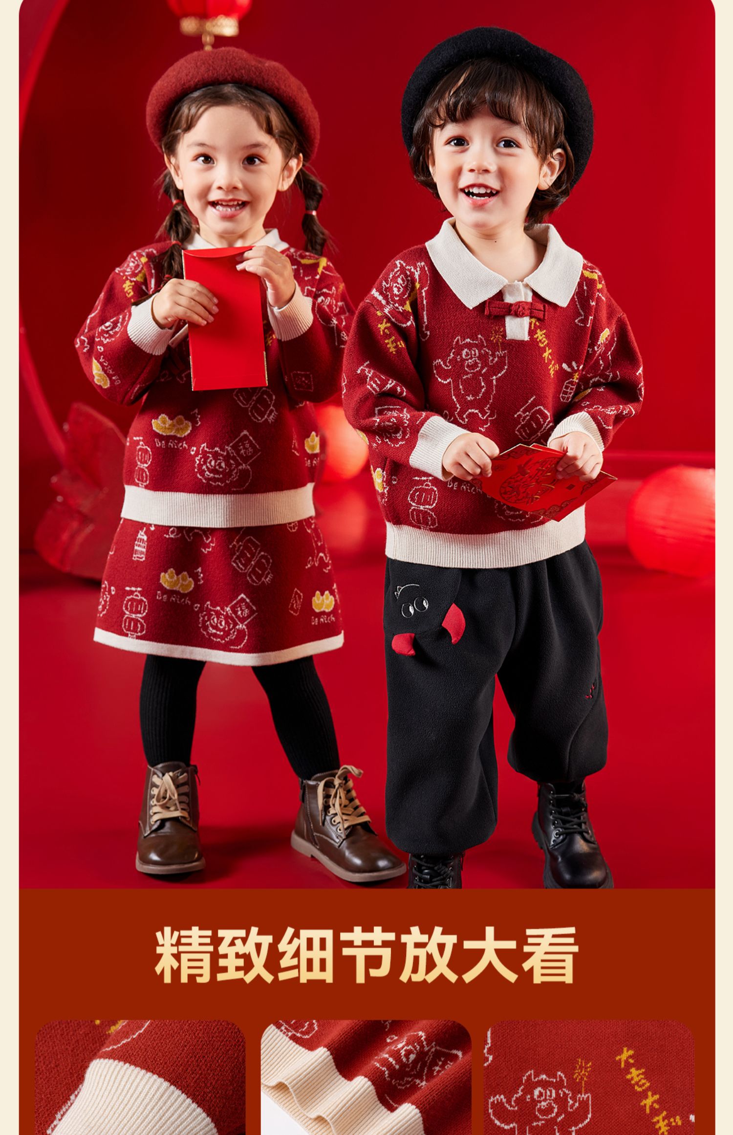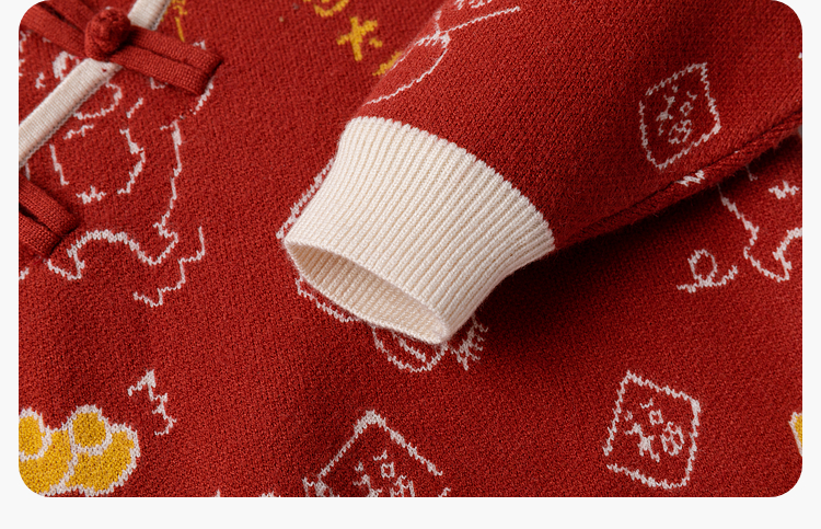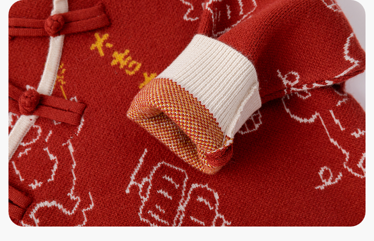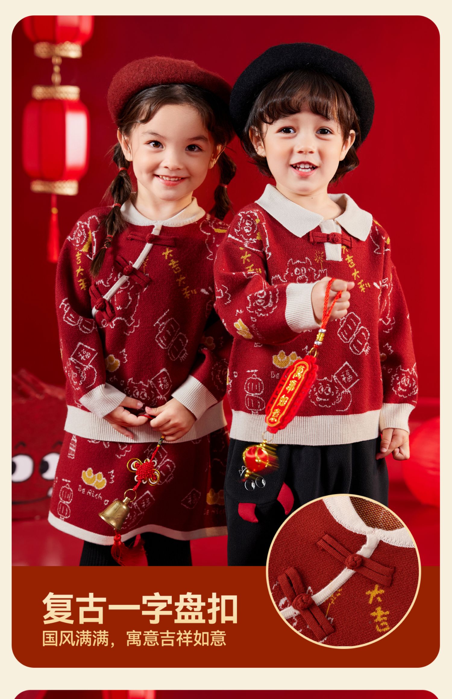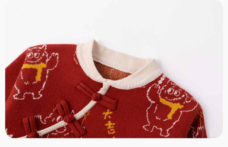 【曼龙严选】嘟嘟家女童唐装针织衫儿童新年拜年服宝宝过年喜庆衣服女宝冬装潮