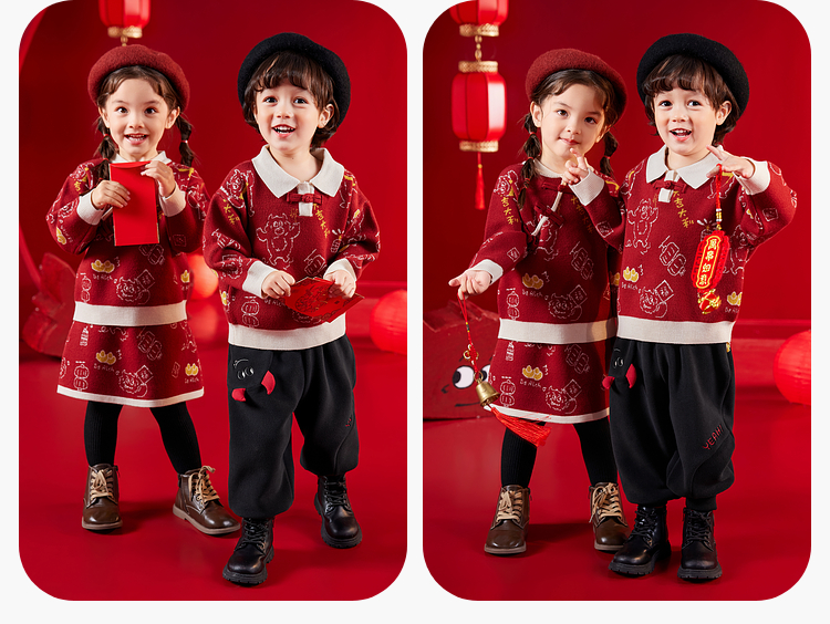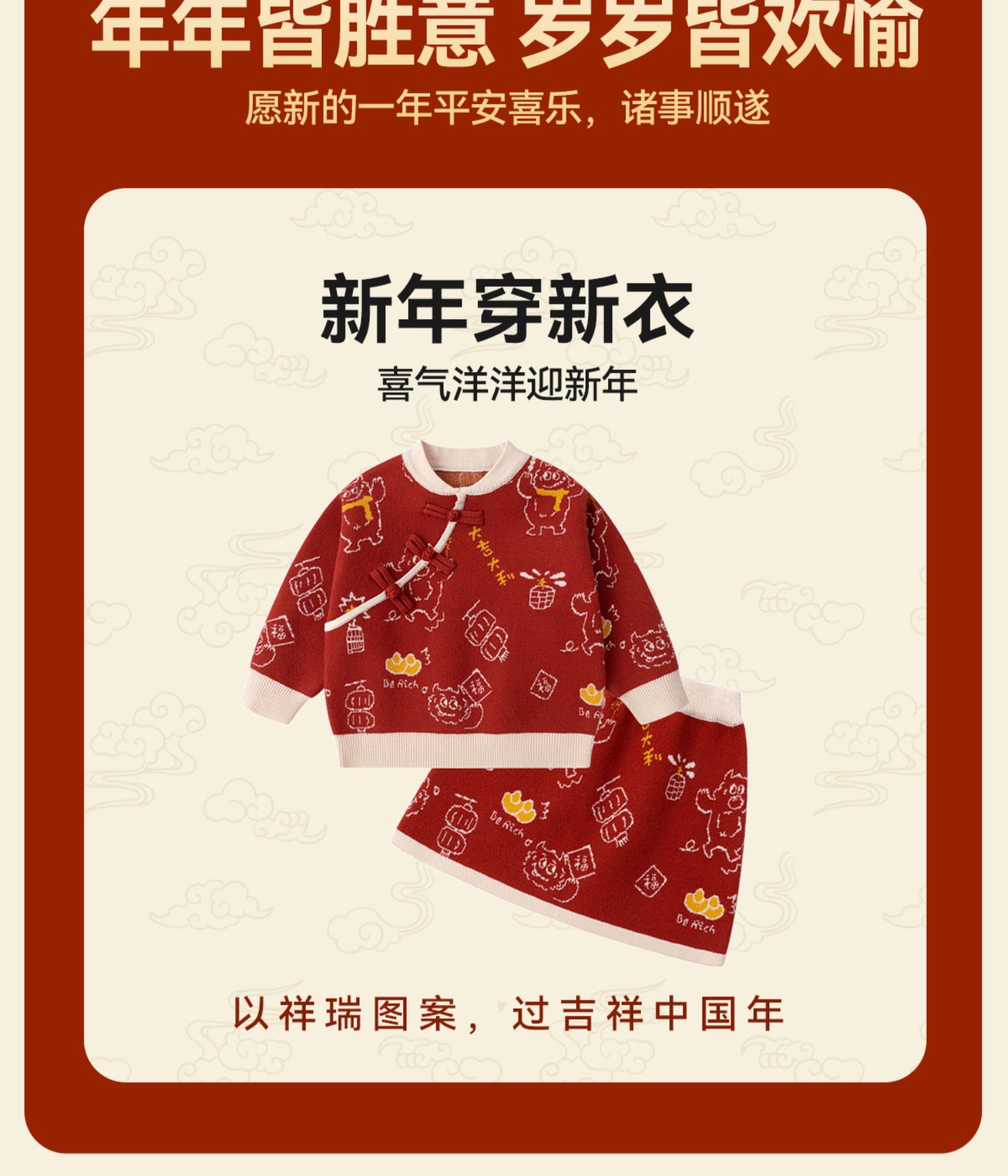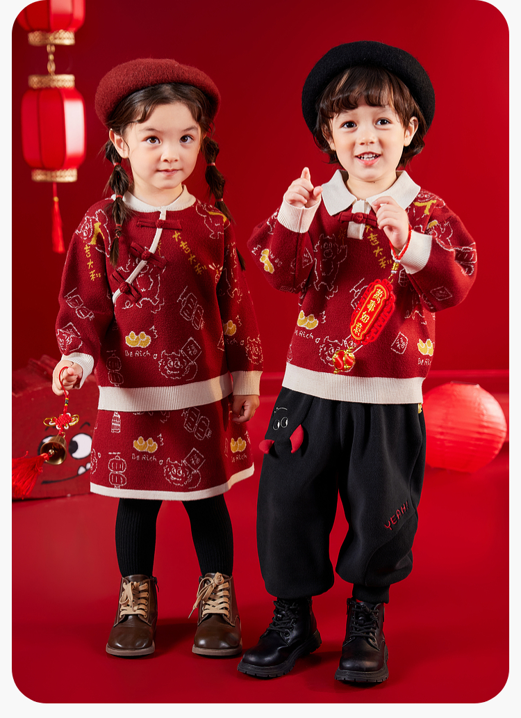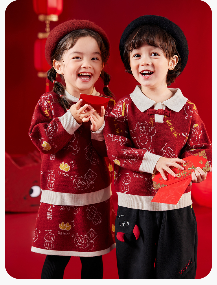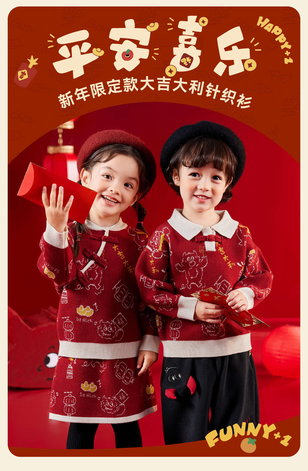 【曼龙严选】嘟嘟家女童唐装针织衫儿童新年拜年服宝宝过年喜庆衣服女宝冬装潮