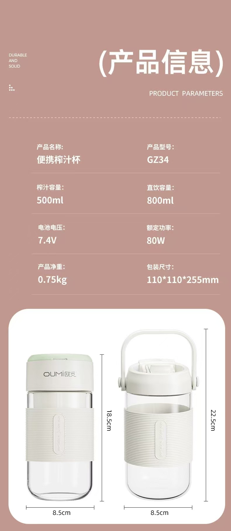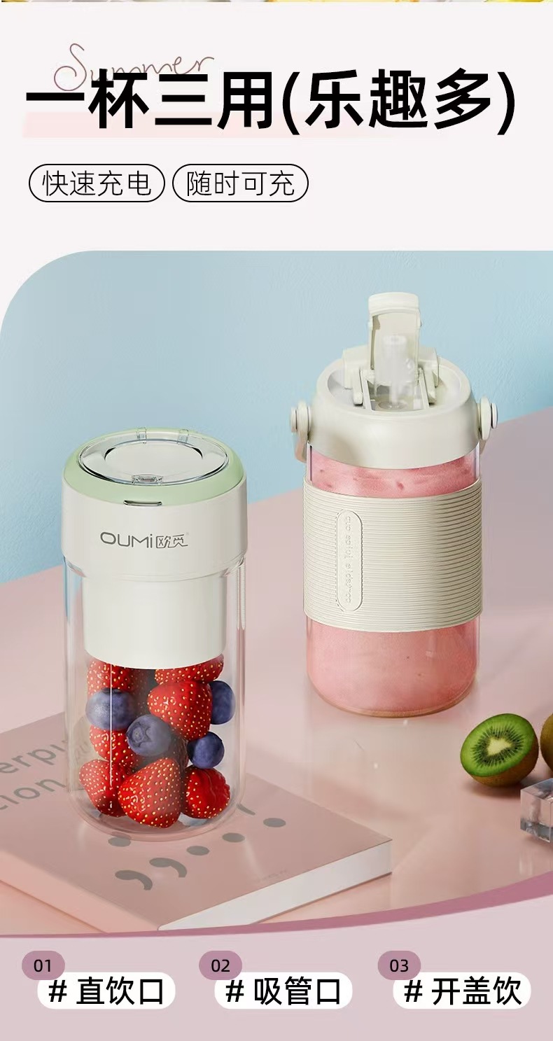 【OUMI欧觅英国 15杯果汁随身榨🍹】oUMi迷你榨汁机🔥高硼硅玻璃+三种饮用方式,2小时快充陪你全天活力💪,运动果汁机 多功能家用料理机!