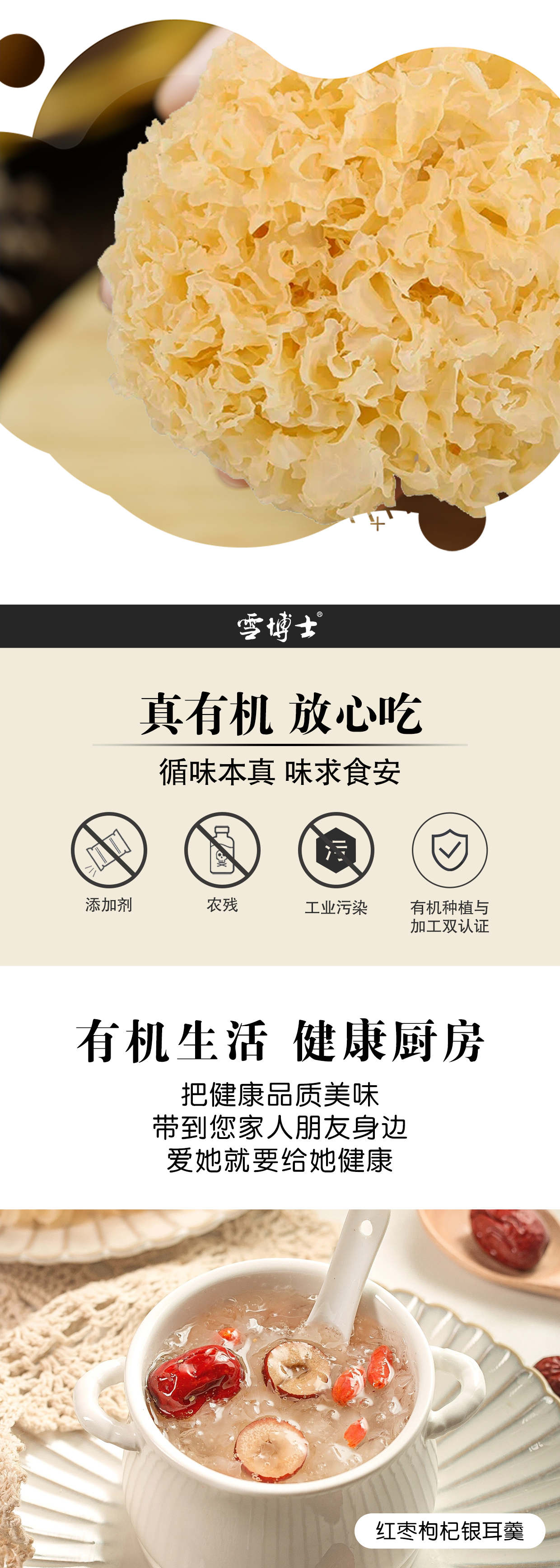 有机银耳 胶质丰富无熏硫细腻软糯红枣煲汤【京东快递送货上门】