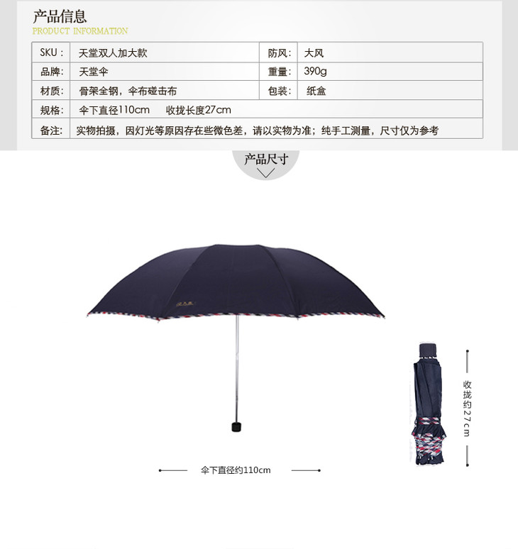 天堂伞超大商务伞3311E(可遮2人) 颜色随机