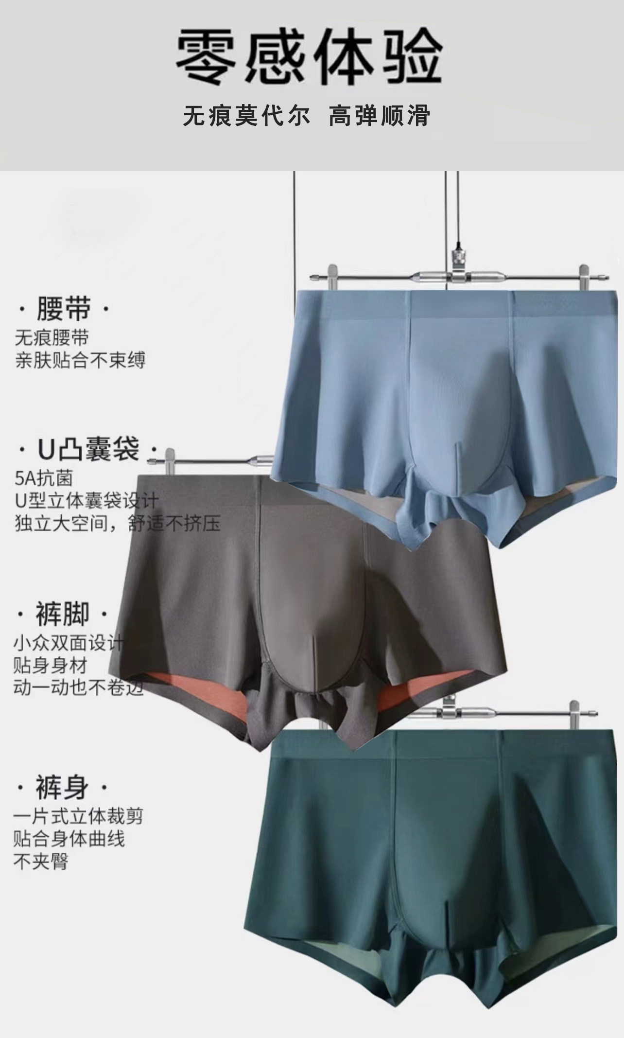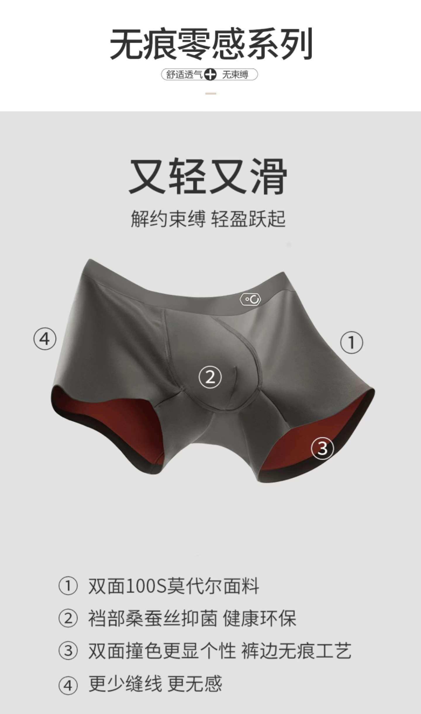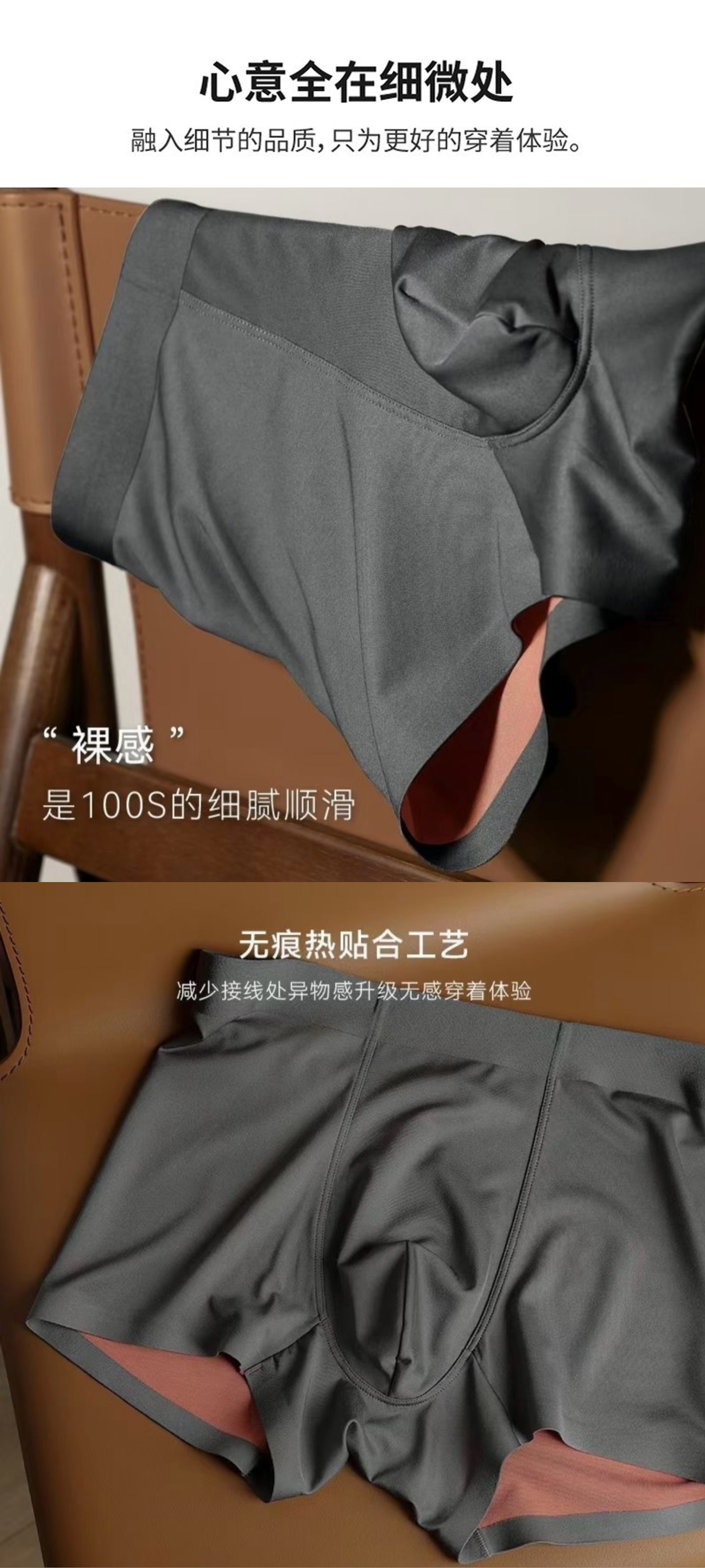 新款男士蚕丝莫代尔平角内裤 无痕 抗菌 高端 给你贴心的呵护(三条礼盒装)