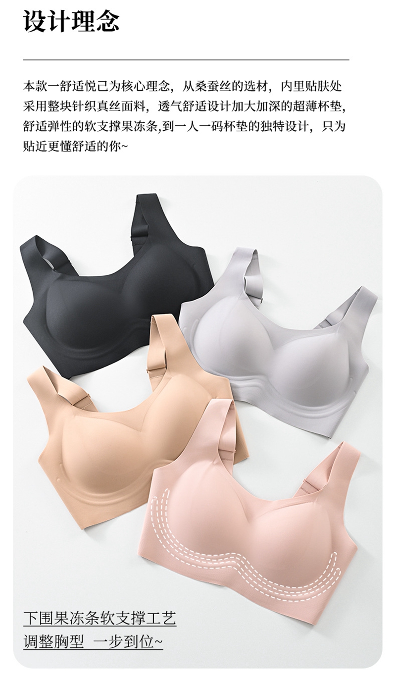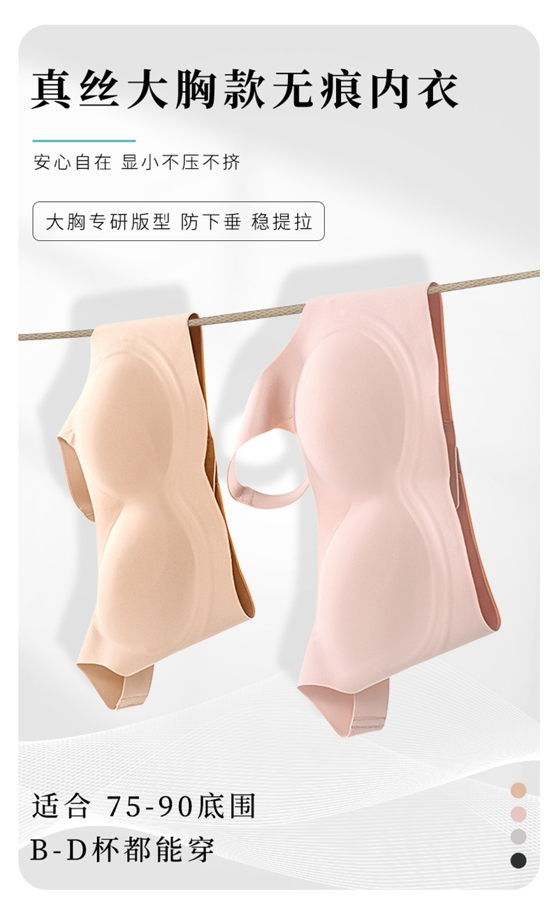 一片式软支撑收副乳真丝大胸薄款无痕内衣文胸