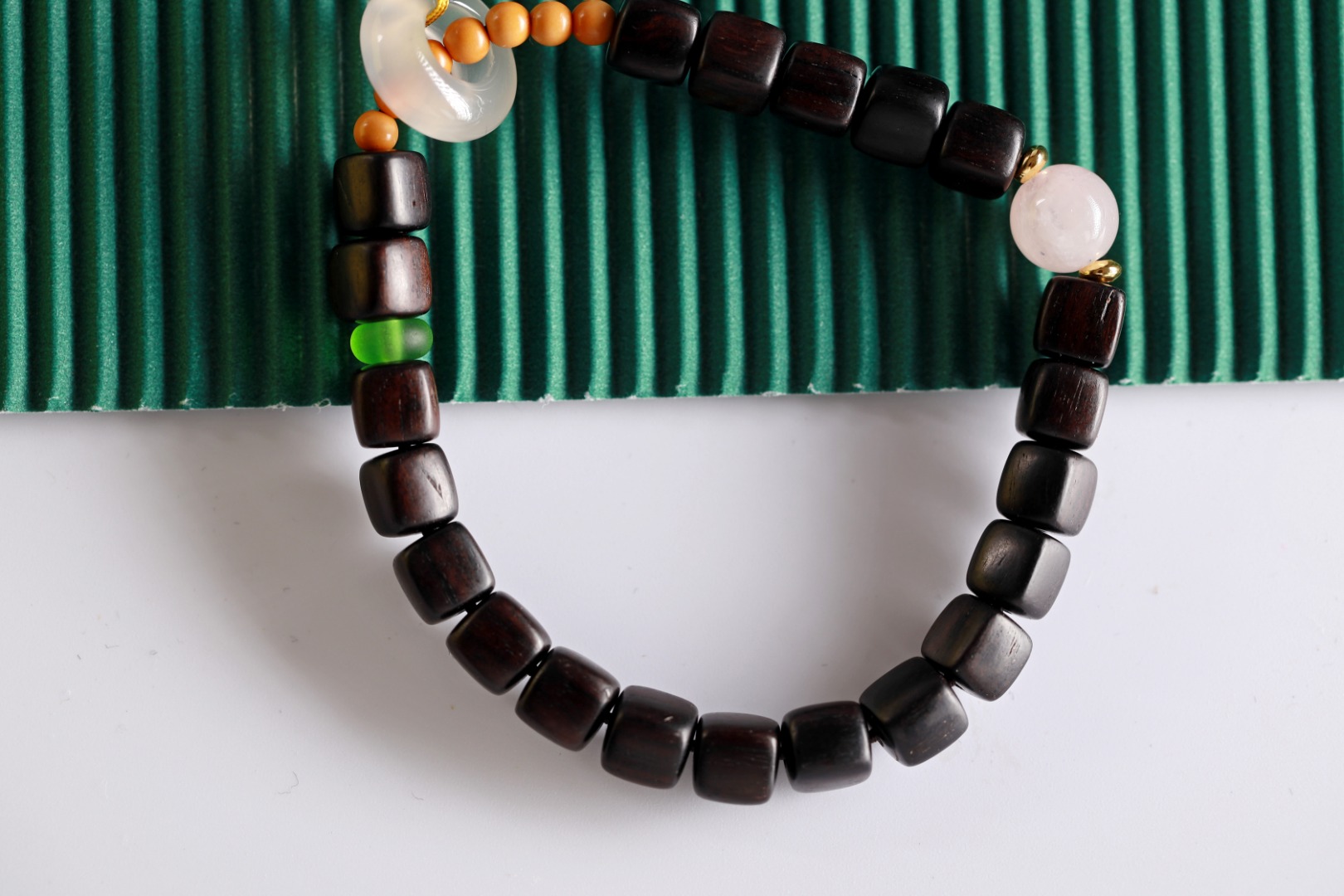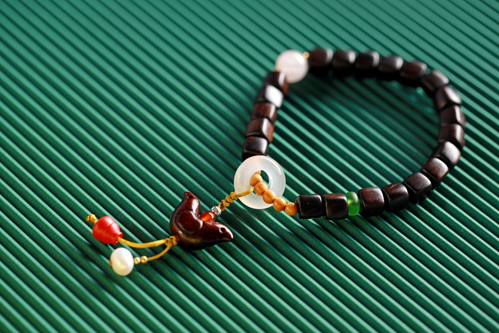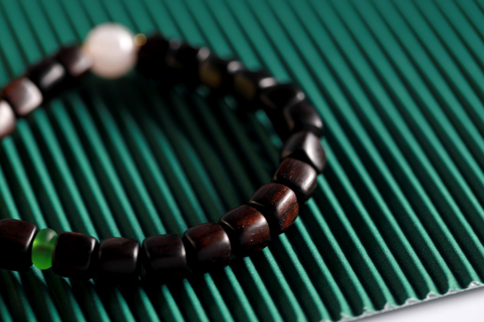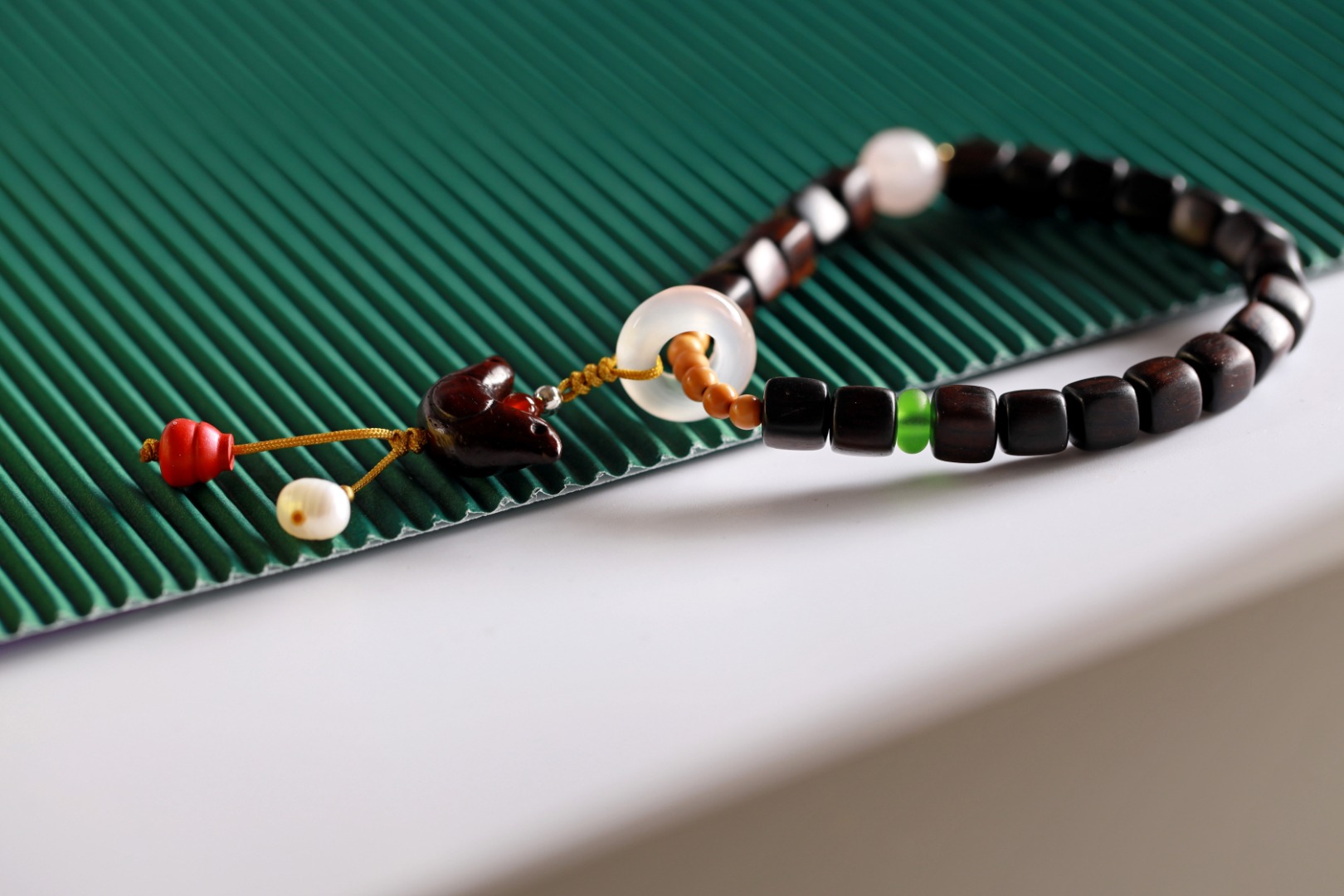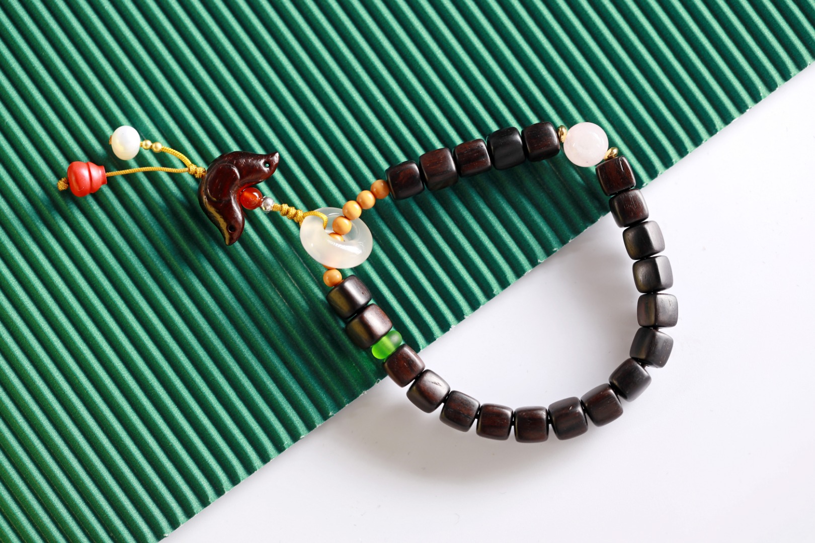 紫光檀素来与佛教有缘。檀木的木质坚硬,百毒不侵,气味芬芳且持久,故被人认为是能够辟邪的吉祥物。四方来财珠也寓意八方来财 ,转四方运,这路遥马急的人间,愿你所求皆所愿