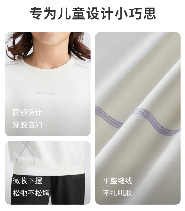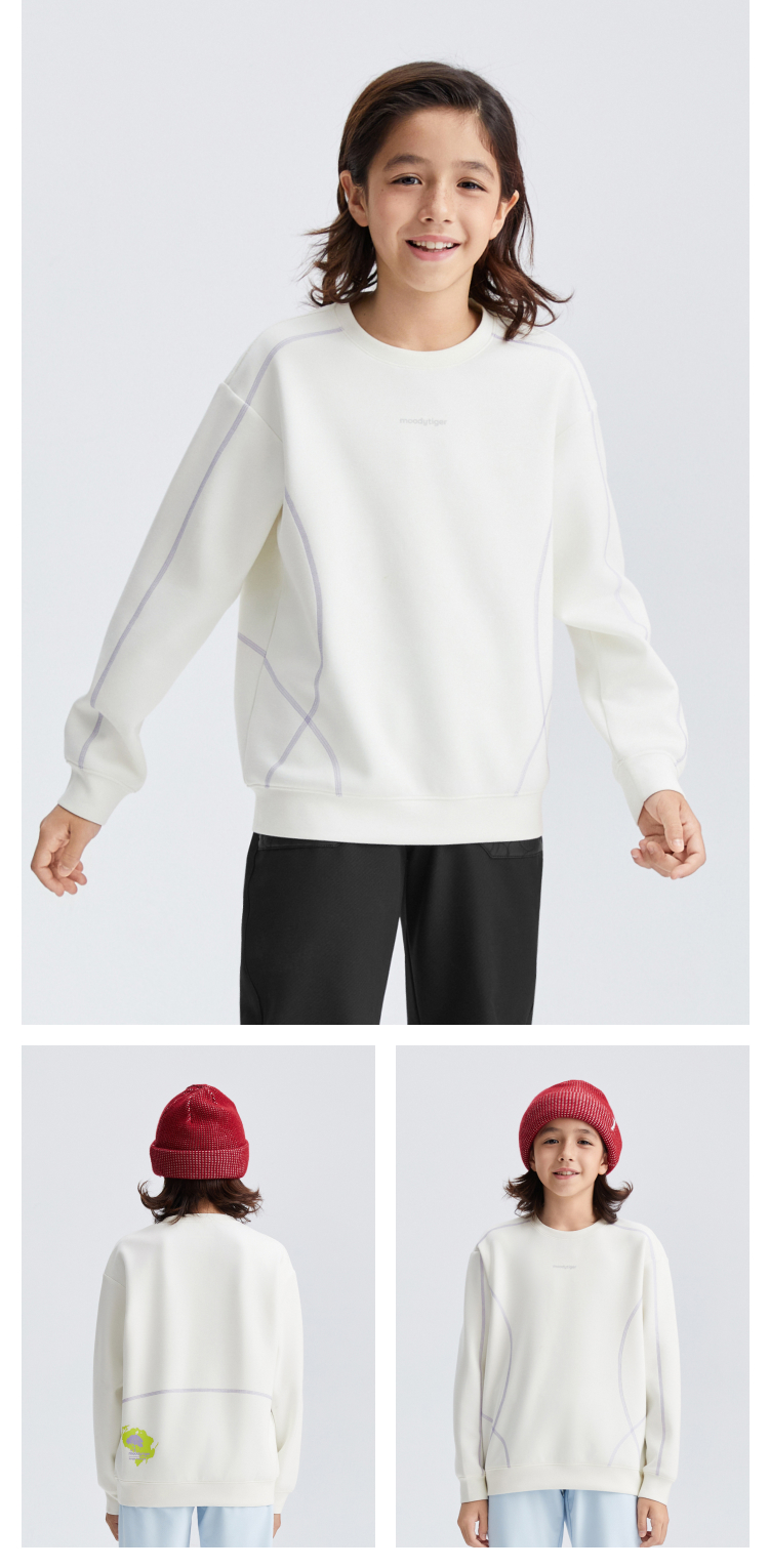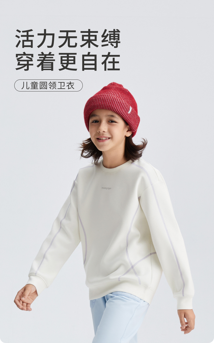 moodytiger儿童卫衣25春新款男女童运动休闲圆领长袖上衣51510307【天赋】