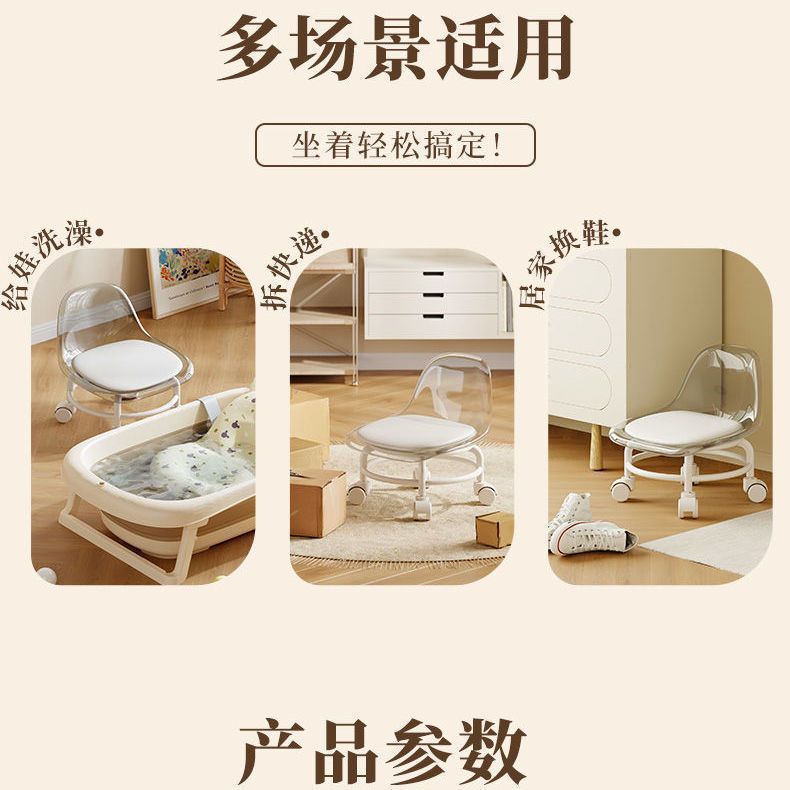 网红小凳子万向轮滑高级感矮凳带娃神器亚克力透明儿童宝宝学步凳