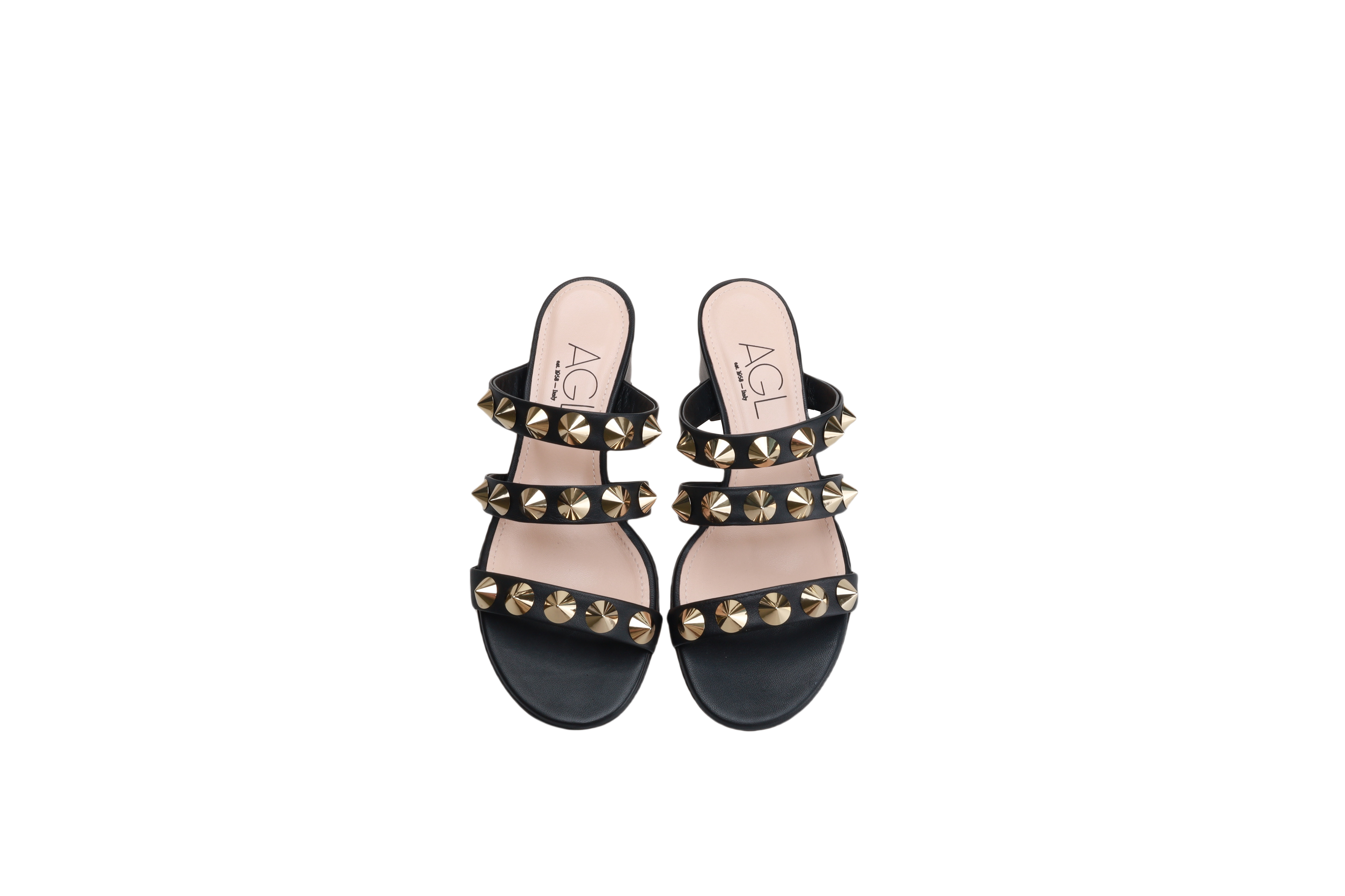 豪麟名鞋AGL女鞋凉拖羊皮革D680007黑色
