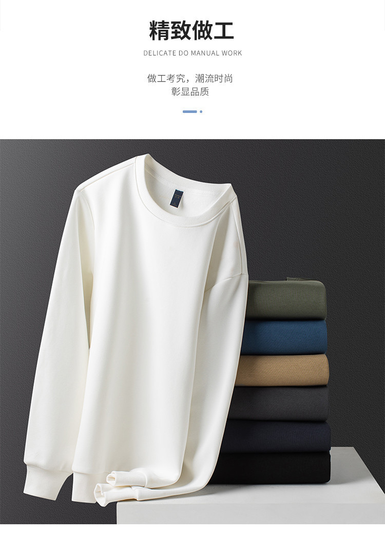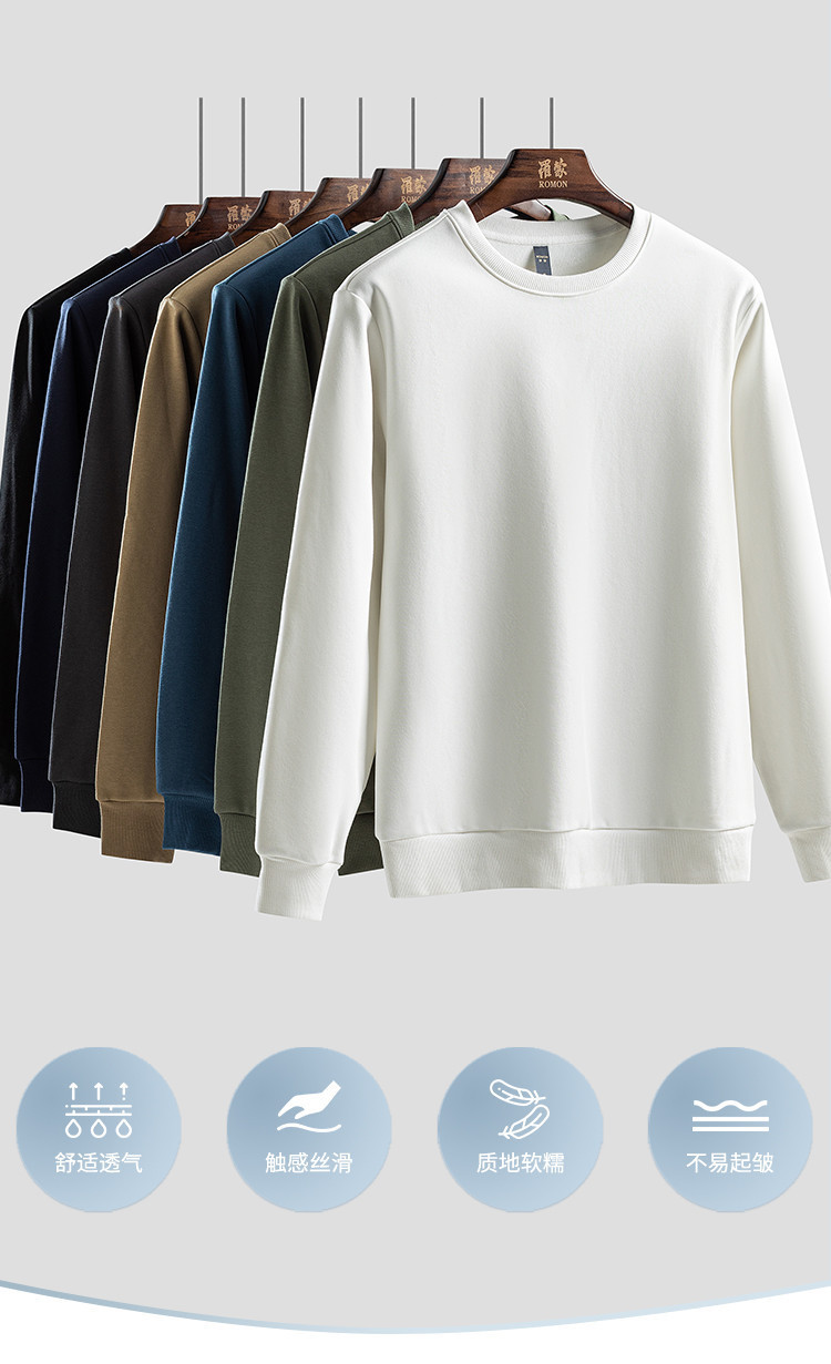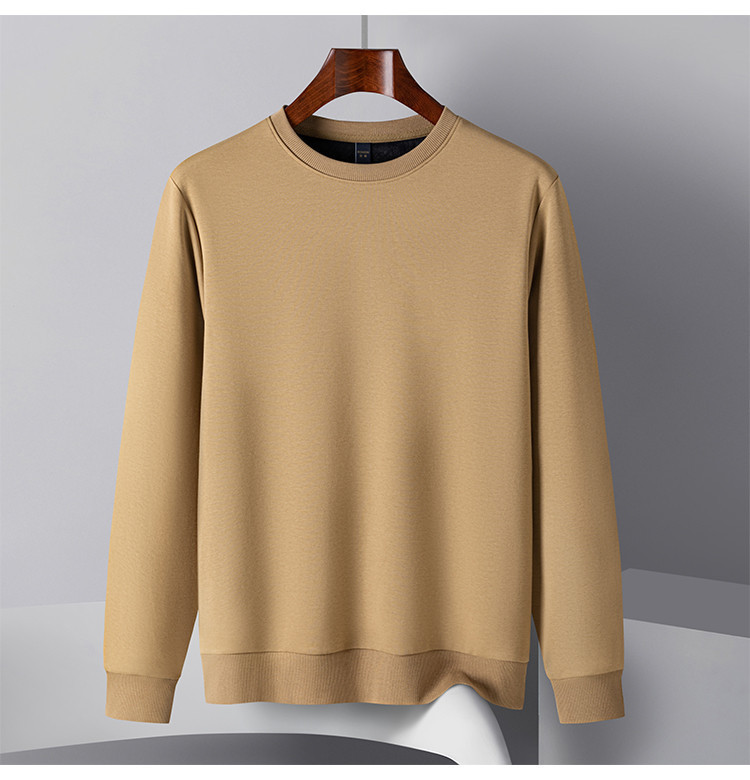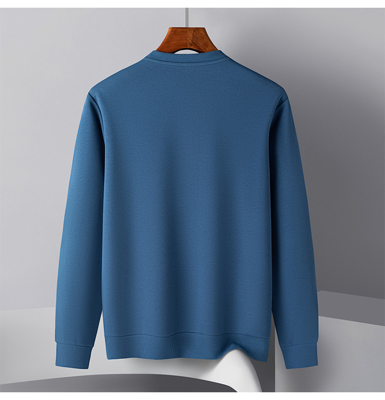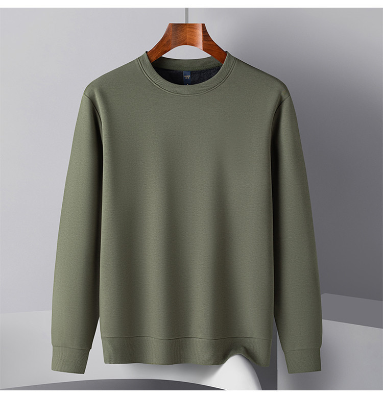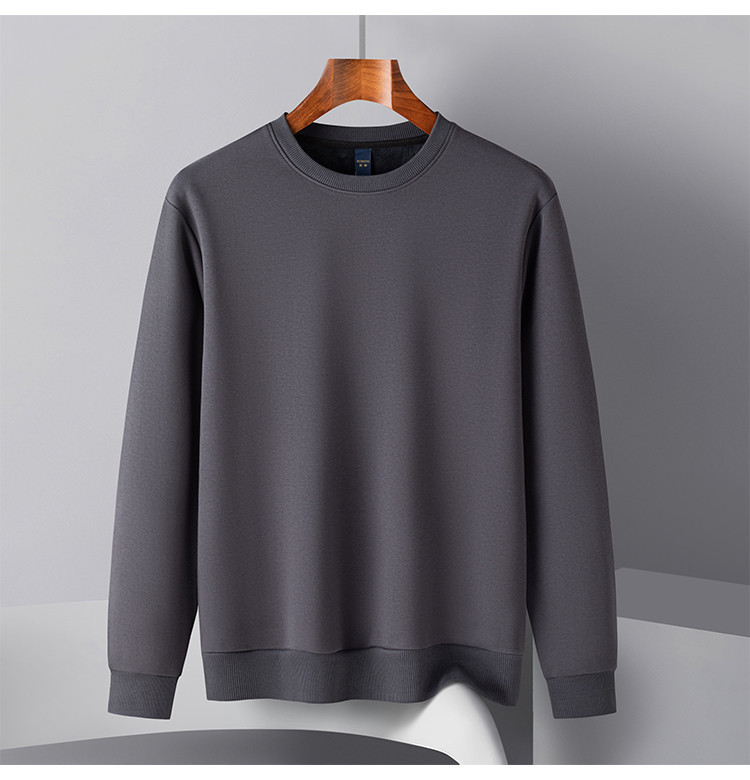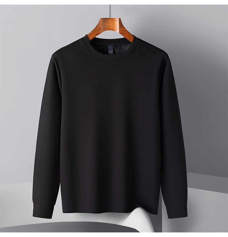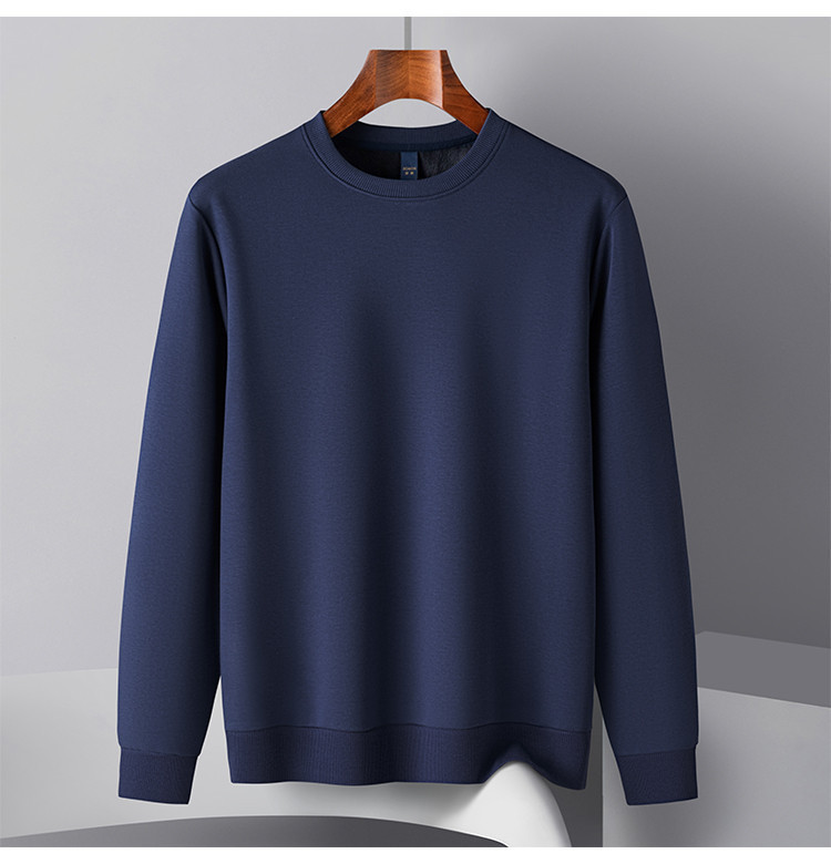 【加绒保暖 含桑蚕丝】罗蒙秋冬简约时尚男士卫衣休闲舒适百搭卫衣男圆领纯色男卫衣