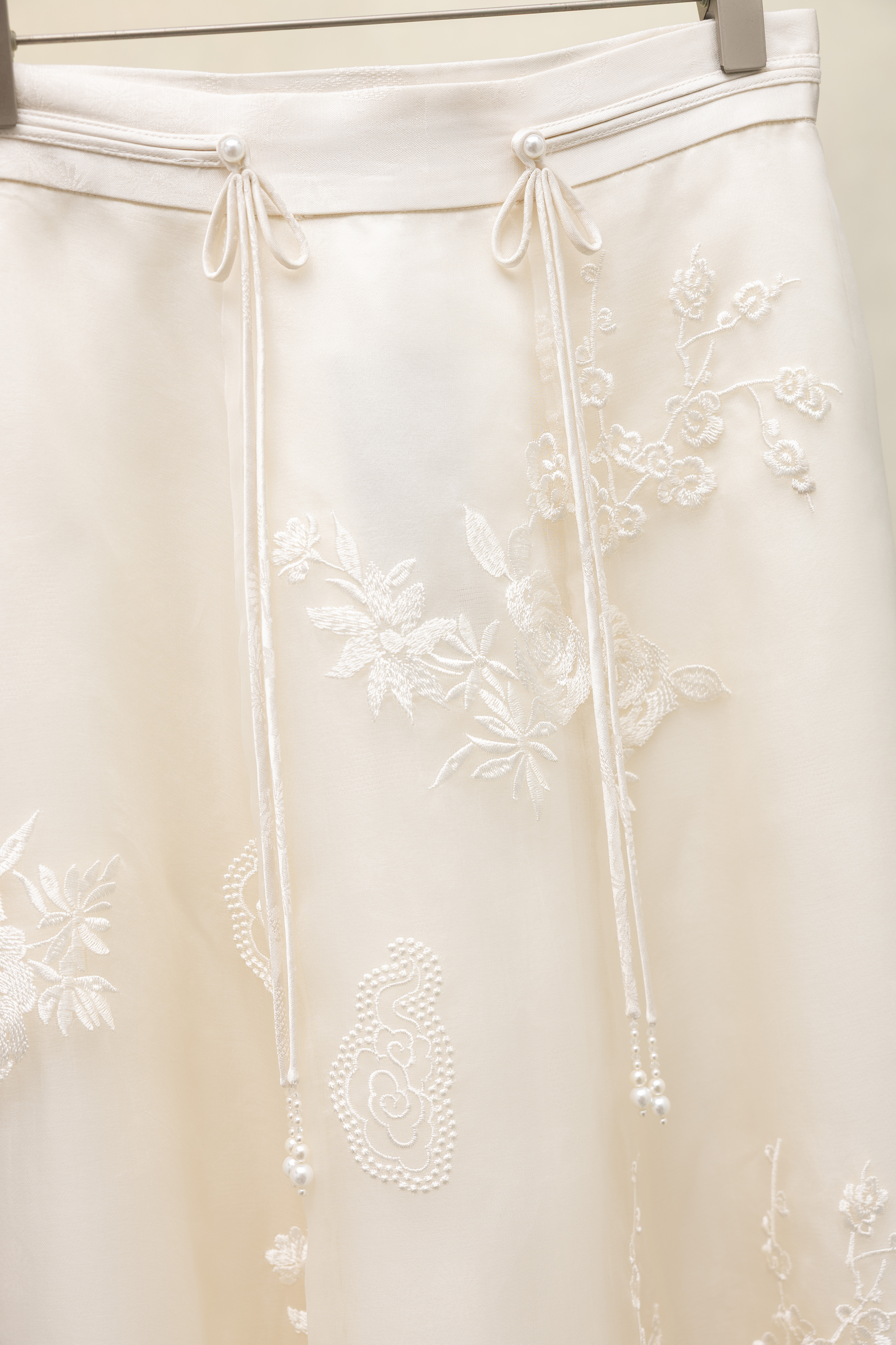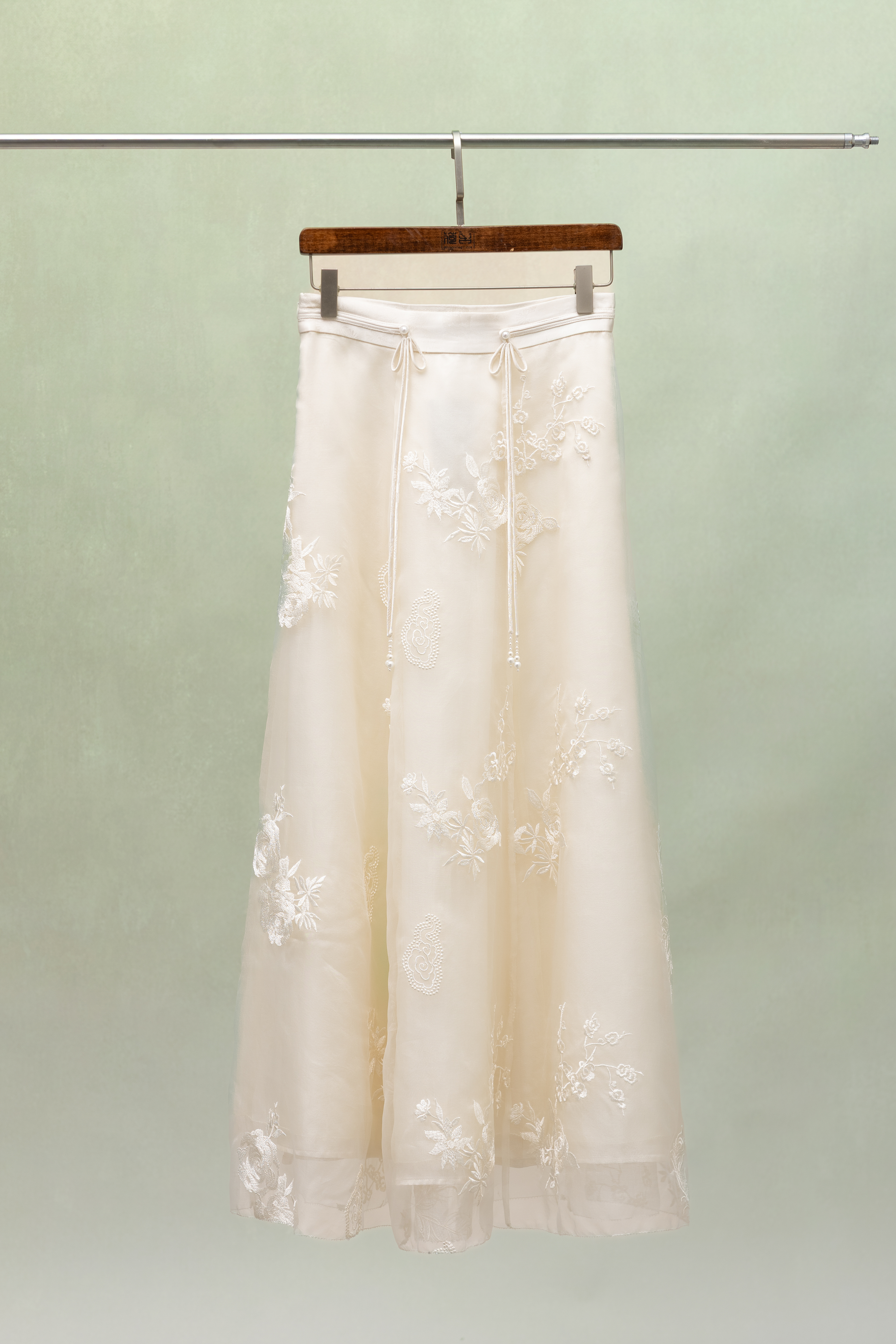 荷言GL 听雪 新中式真丝欧根纱绣线提花半裙