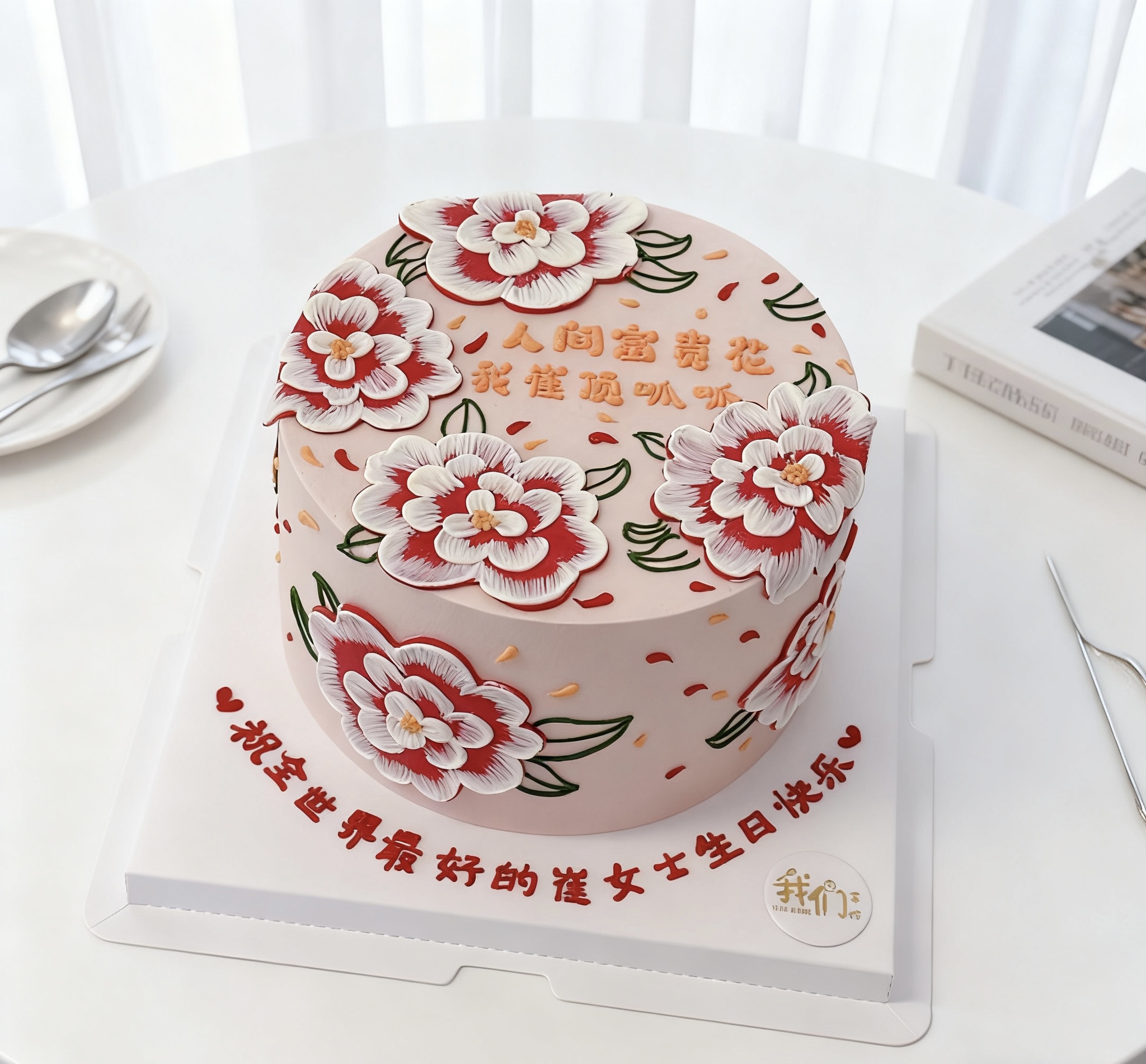 人间富贵花手绘蛋糕-低糖处理无添加
